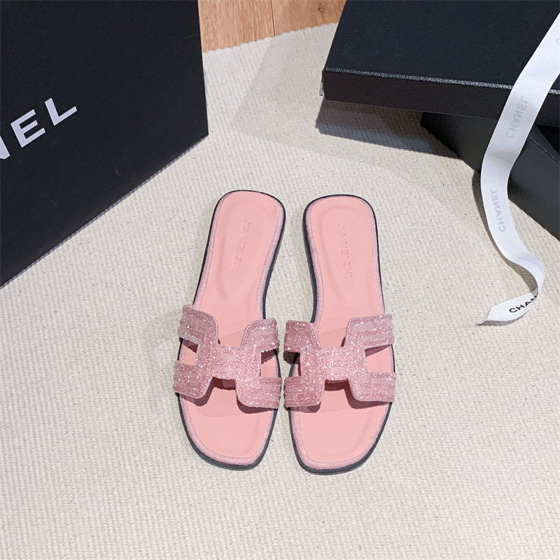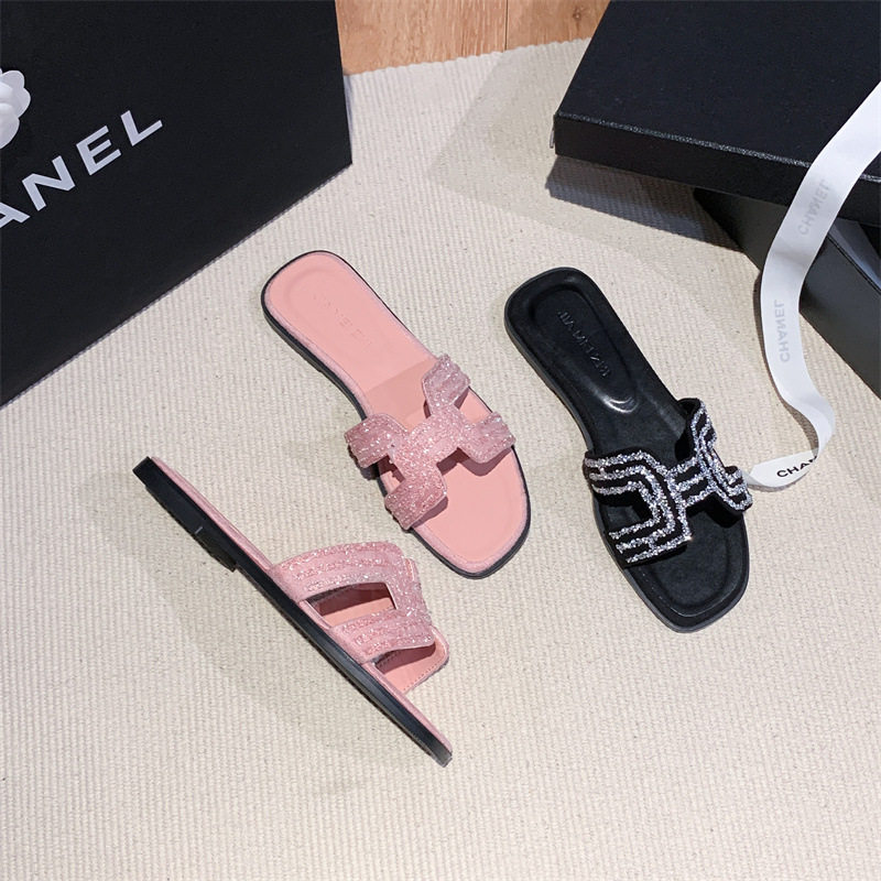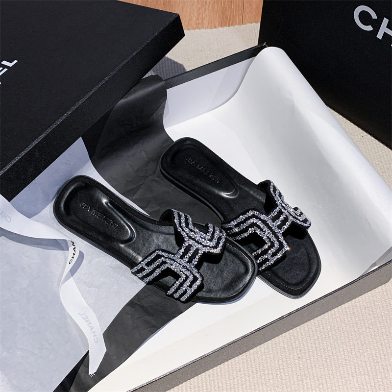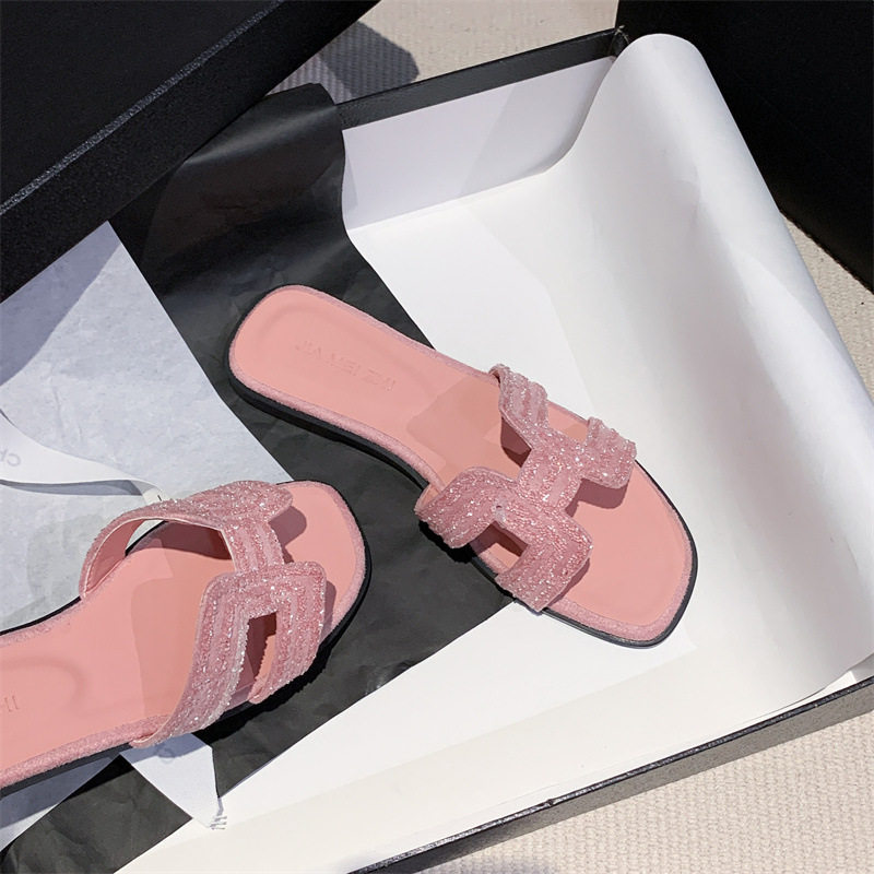 in stock and fast delivery New Rhinestone Flat Slippers Women's Summer Outfit Lazy Casual Thick Heel Cyber Celebrator Shoes
