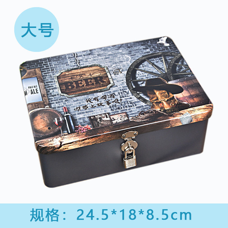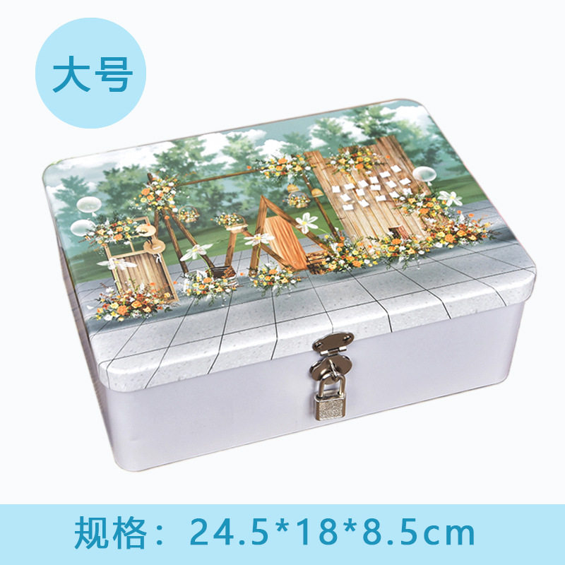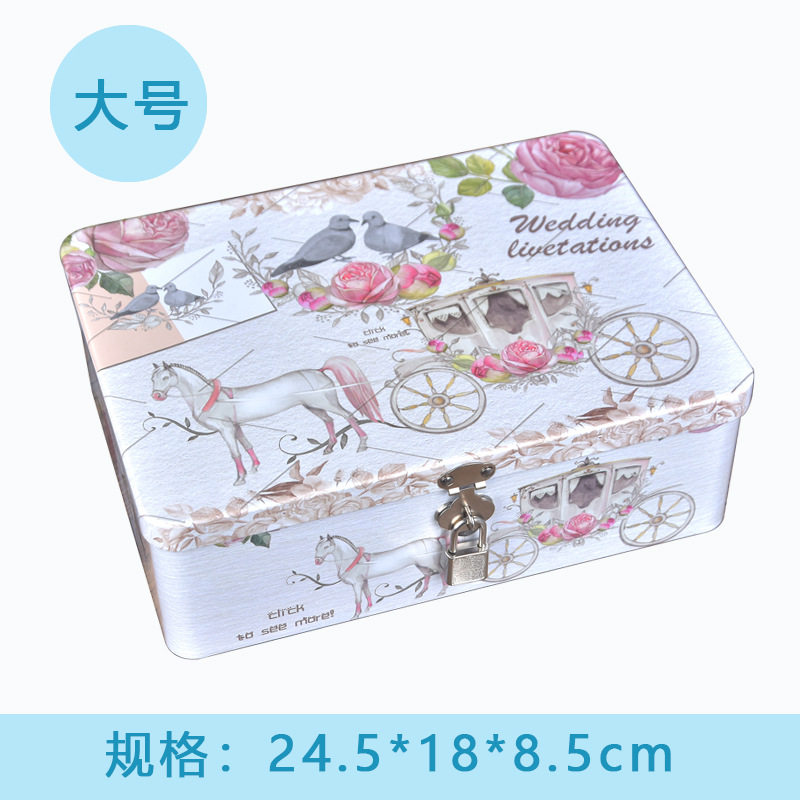 Storage Iron Box with Lock Desktop Organize Small Box Student Gift Box Cosmetics Jewelry Storage Certificate Collection Box