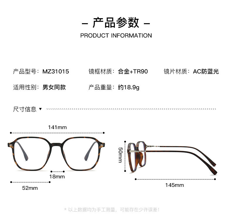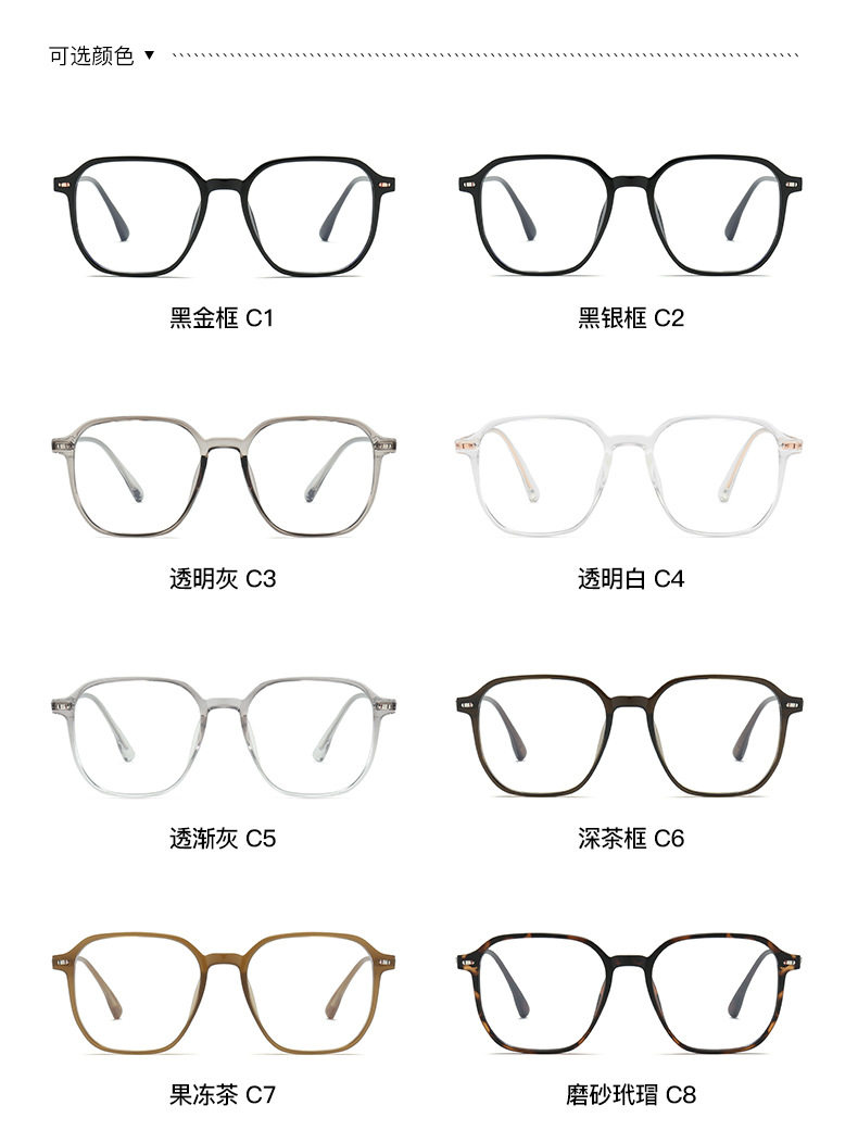 | Frame Color | Black gold box C1,Black Silver Frame C2,Transparent gray C3,Transparant C4,Penetration Gradual Grey C5,Deep Tea Box C6,Jelly Tea C7,Frosted Hawksbill C8 |