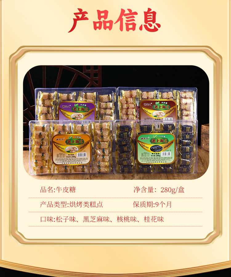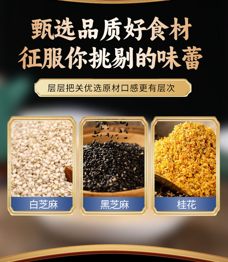 | Packaging specifications | Osmanthus flavor 280g*1 box,Black sesame flavor 280g*1 box,Walnut flavor 280g*1 box,Pine nut flavor 280g*1 box,[pair with 1 large gift bag] 1 box of each of four flavors |