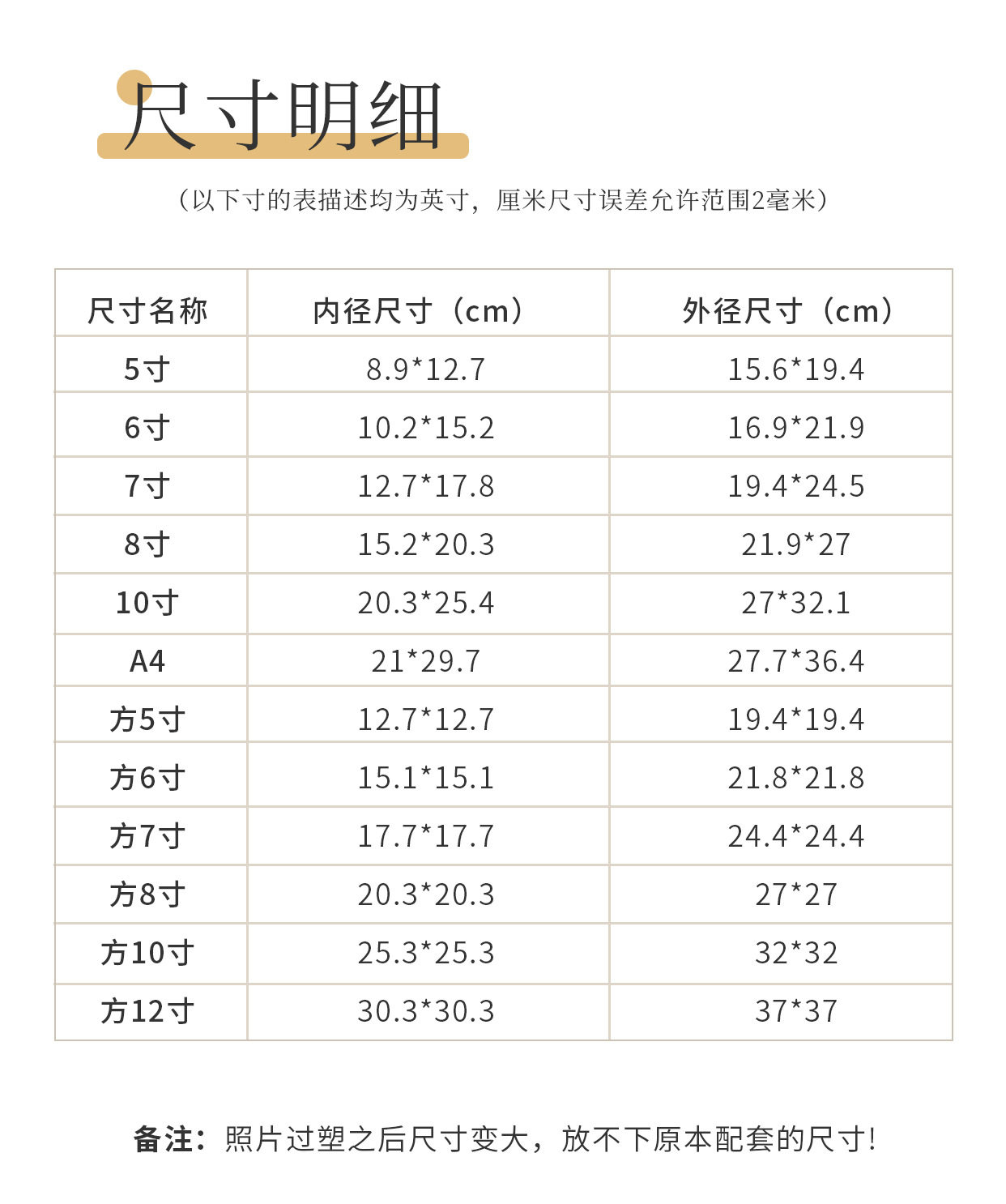 | Frame size | Square 5 inches (can hold 12.7*12.7cm) horizontal and vertical table,Square 6 inches (can hold 15.1*15.1cm) horizontal and vertical table,Square 7 inches (can hold 17.7*17.7cm) horizontal and vertical table,Square 8 inches (can hold 20.3*20.3cm) horizontal and vertical table,Square 10 inches (can hold 25.3*25.3cm) horizontal and vertical table,Square 12 inches (can hold 30.3*30.3cm) horizontal and vertical table |