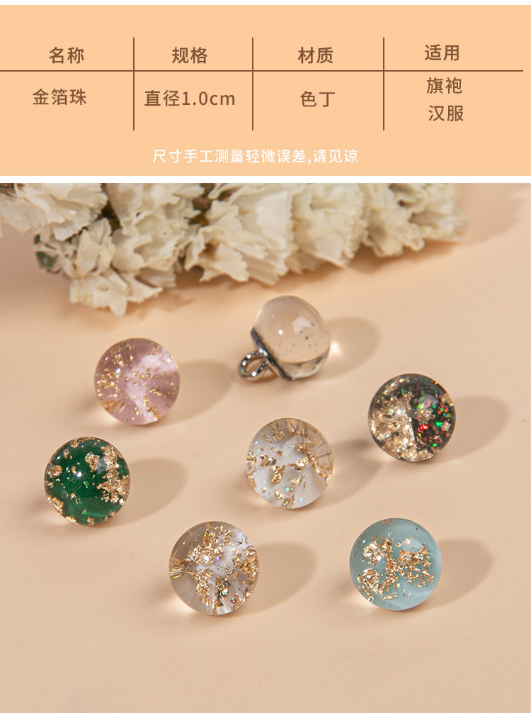 | Specifications and models | Gold Foil Bead [1-Platinum]],Gold foil beads [2-powder gold]],Gold Foil Bead [3-Green Gold]],Gold Foil Bead [4-Blue Gold]],Gold Foil Bead [5-Black Gold]],Gold Foil Beads [6-Red Gold]] |