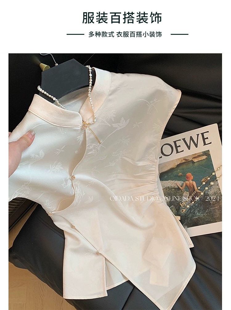 Cheongsam New Chinese High-end Exquisite Fashion Chinese Hanfu Gold Foil Pearl Button Shirt National Style Cheongsam Button