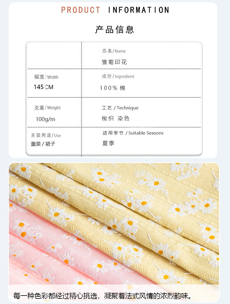 100% Cotton 40S Printed Three-Dimensional Daisy DIY Floral Fabric for Dresses, Children's Clothing, and Tablecloth Material