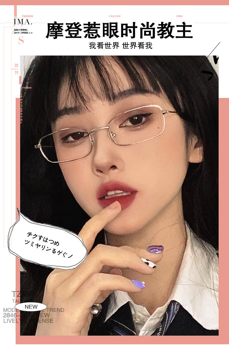 Japanese Style Harajuku Ins Rectangular Personalized Retro Hong Kong Style Internet Popular Glasses Frame Gold Silk Edge Small Frame Retro Glasses for Women