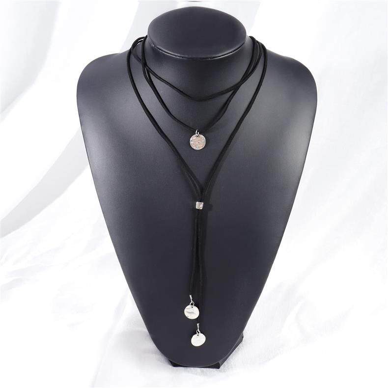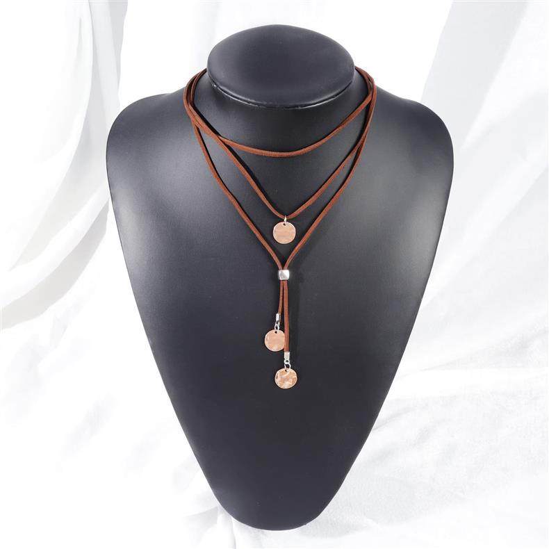 European and American New Bohemian Style Leather Necklace Round Brand Pendant Long Body Chain Multi-layer Brown Leather Neck Chain