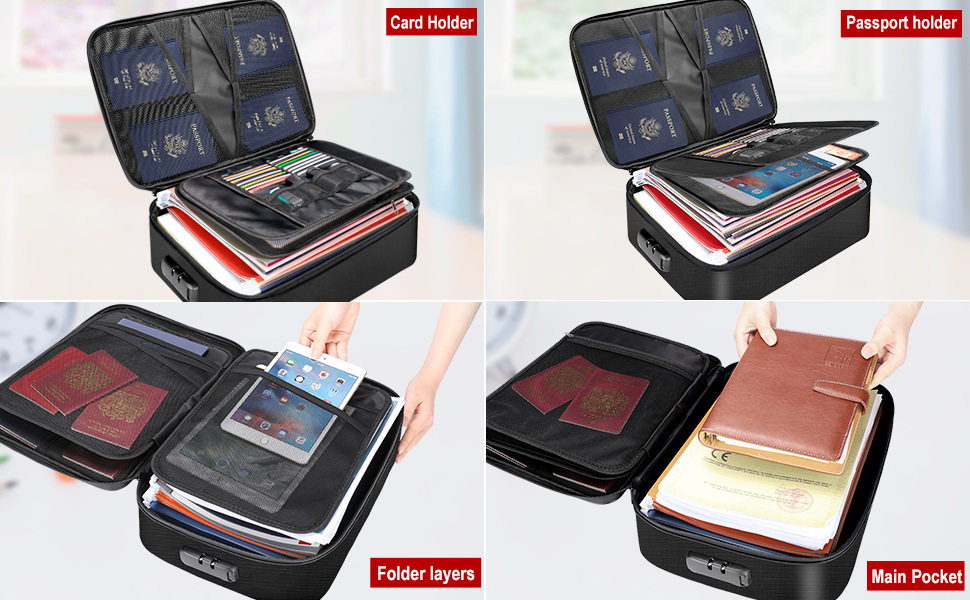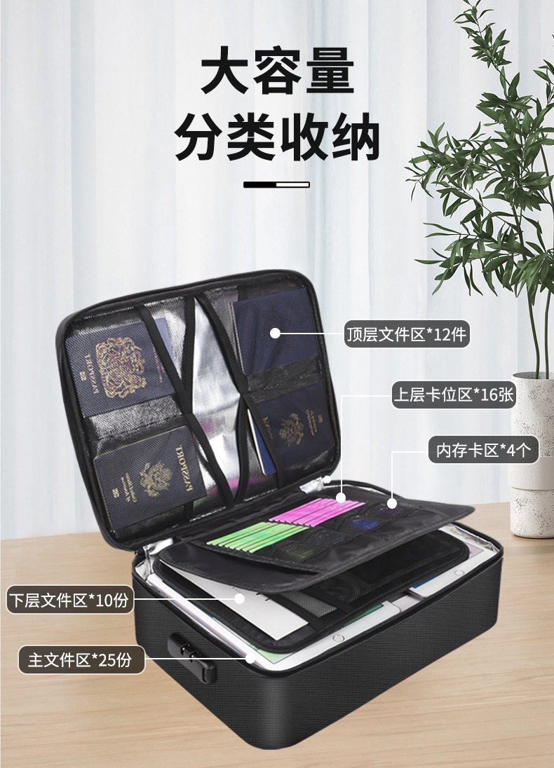 Document Cosmetics Bag Household Multi-Layer Large-Capacity Multi-Function Box Certificate Document Fireproof Passport Cosmetics Bag