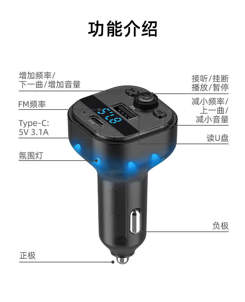 | Power supply mode | Cigarette lighter car mp3 |