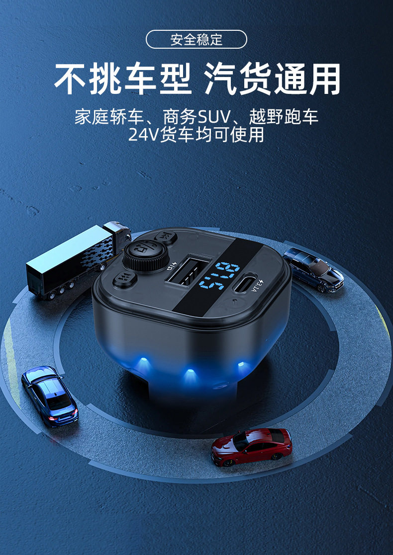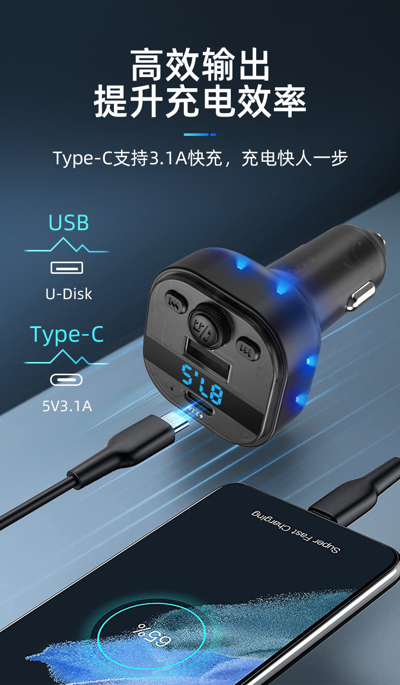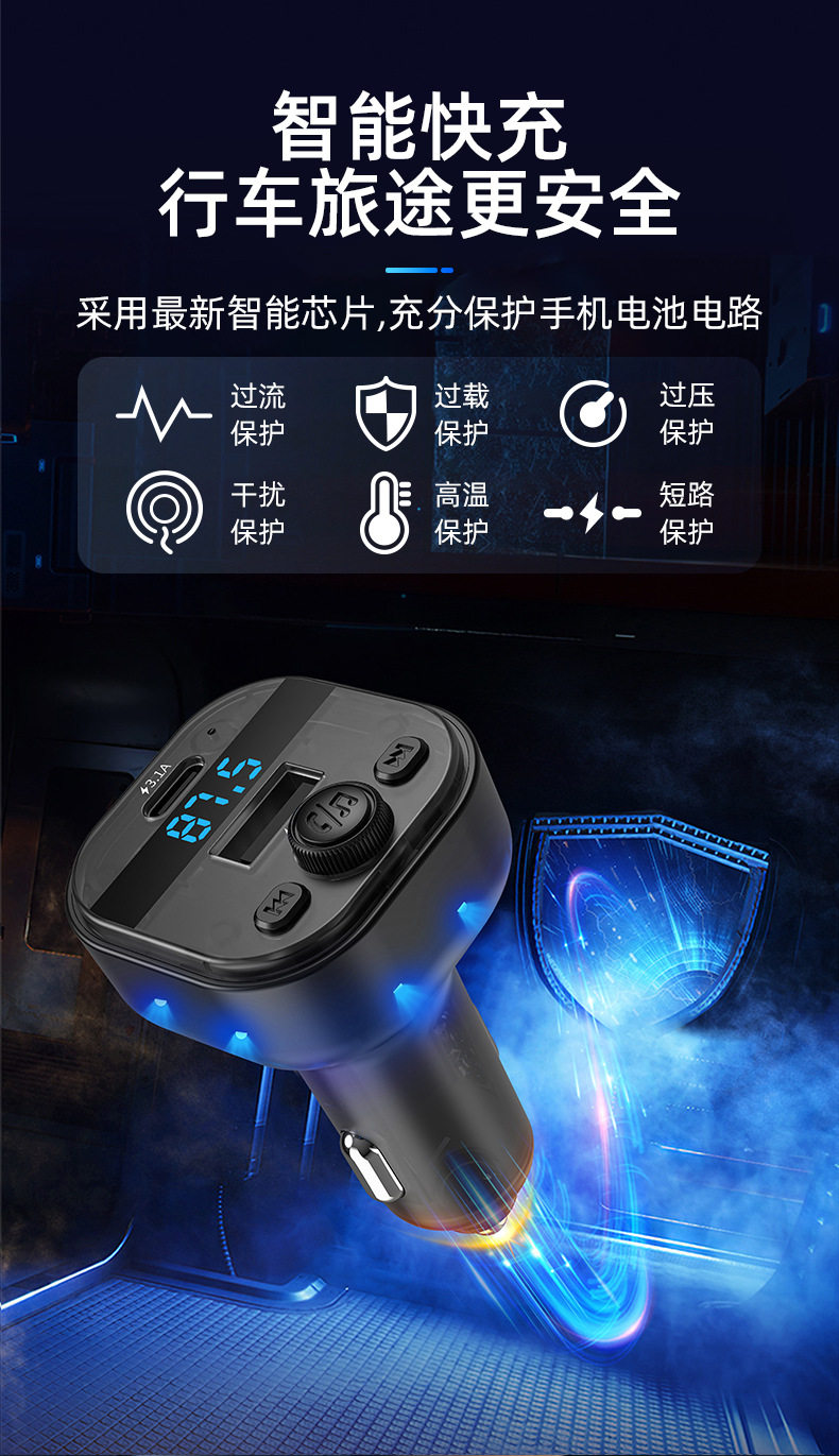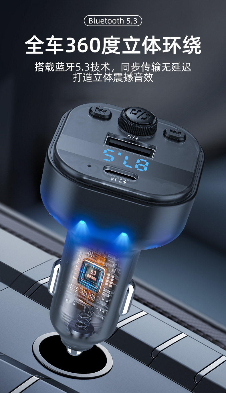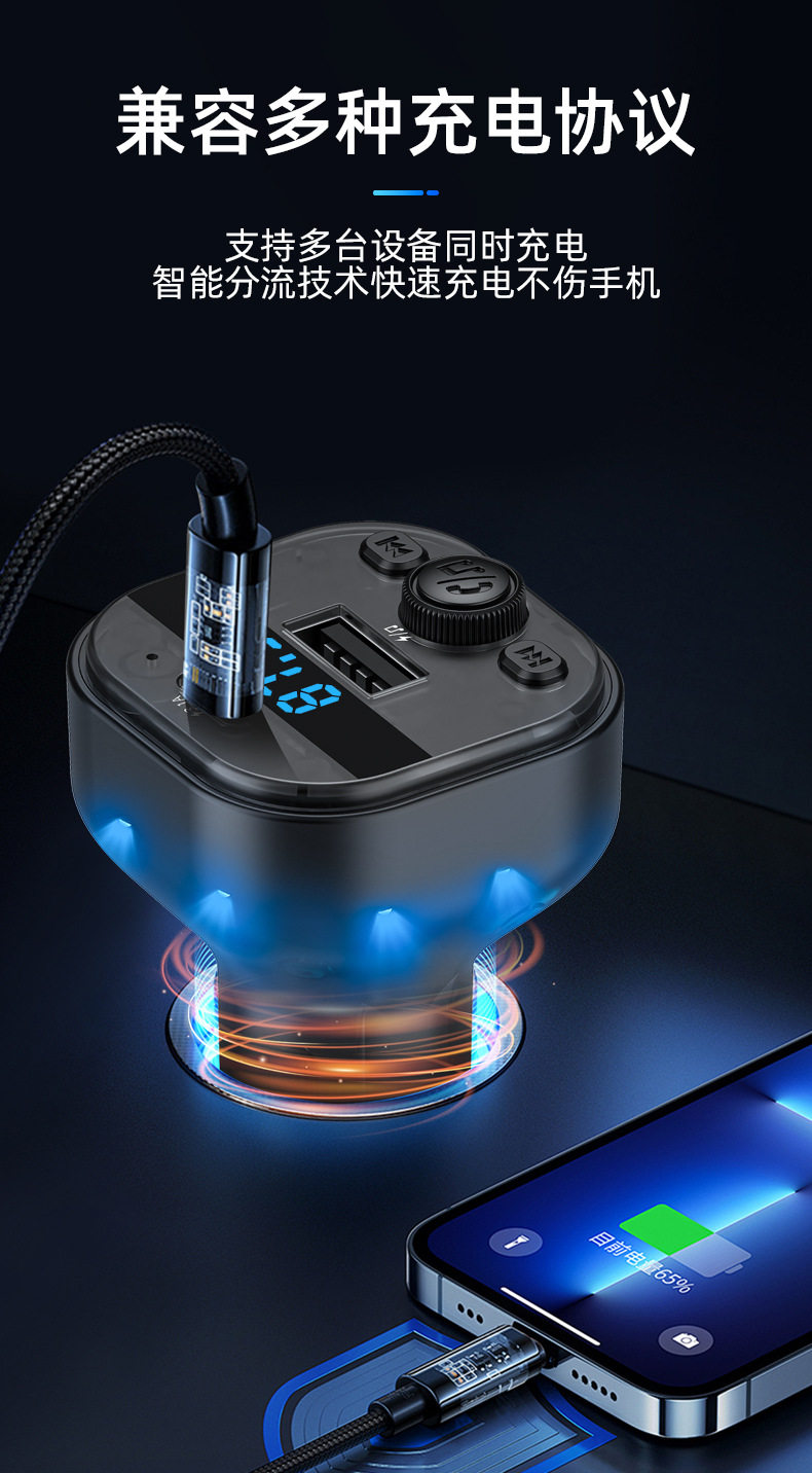 Cross-border new car mp3 player bluetooth fm transmitter translucent car mp3 car charger car charger
