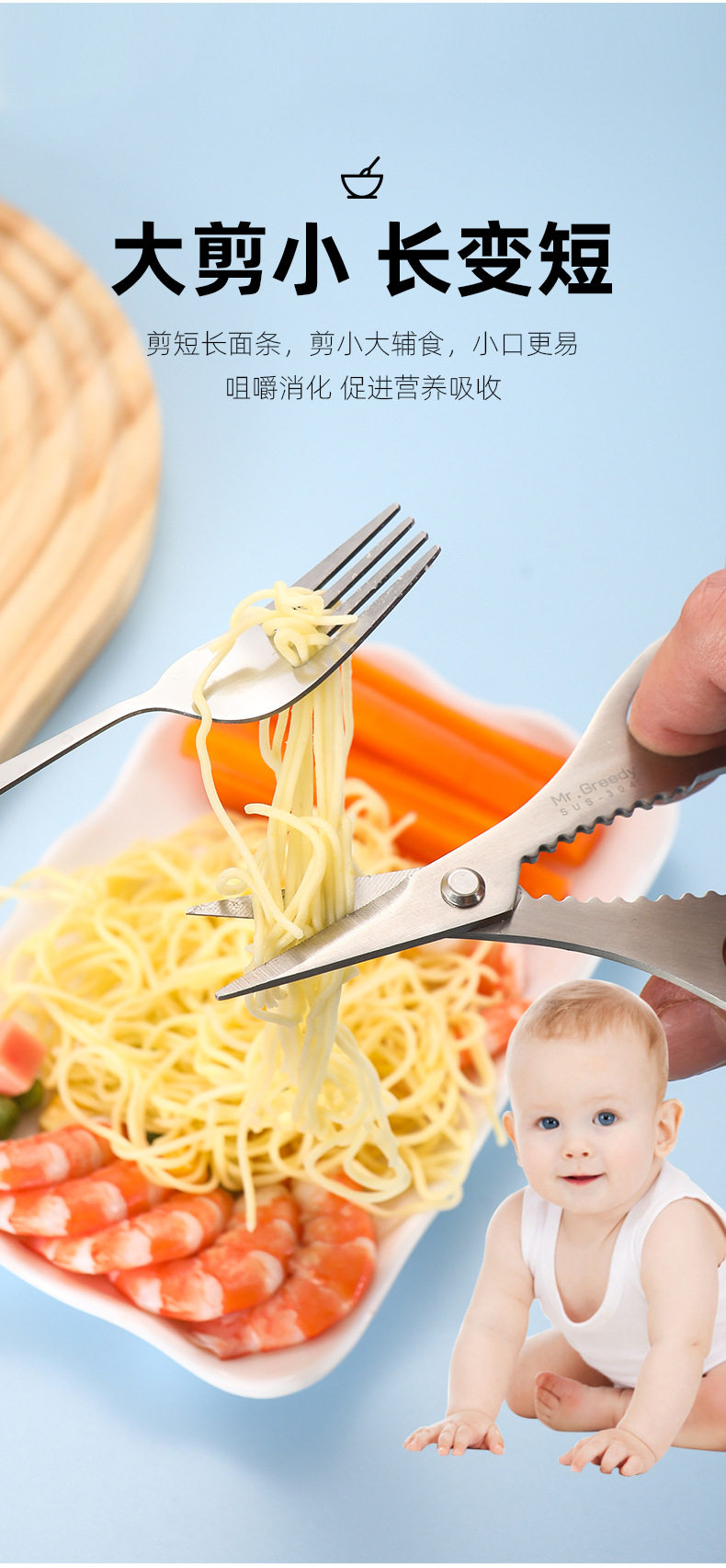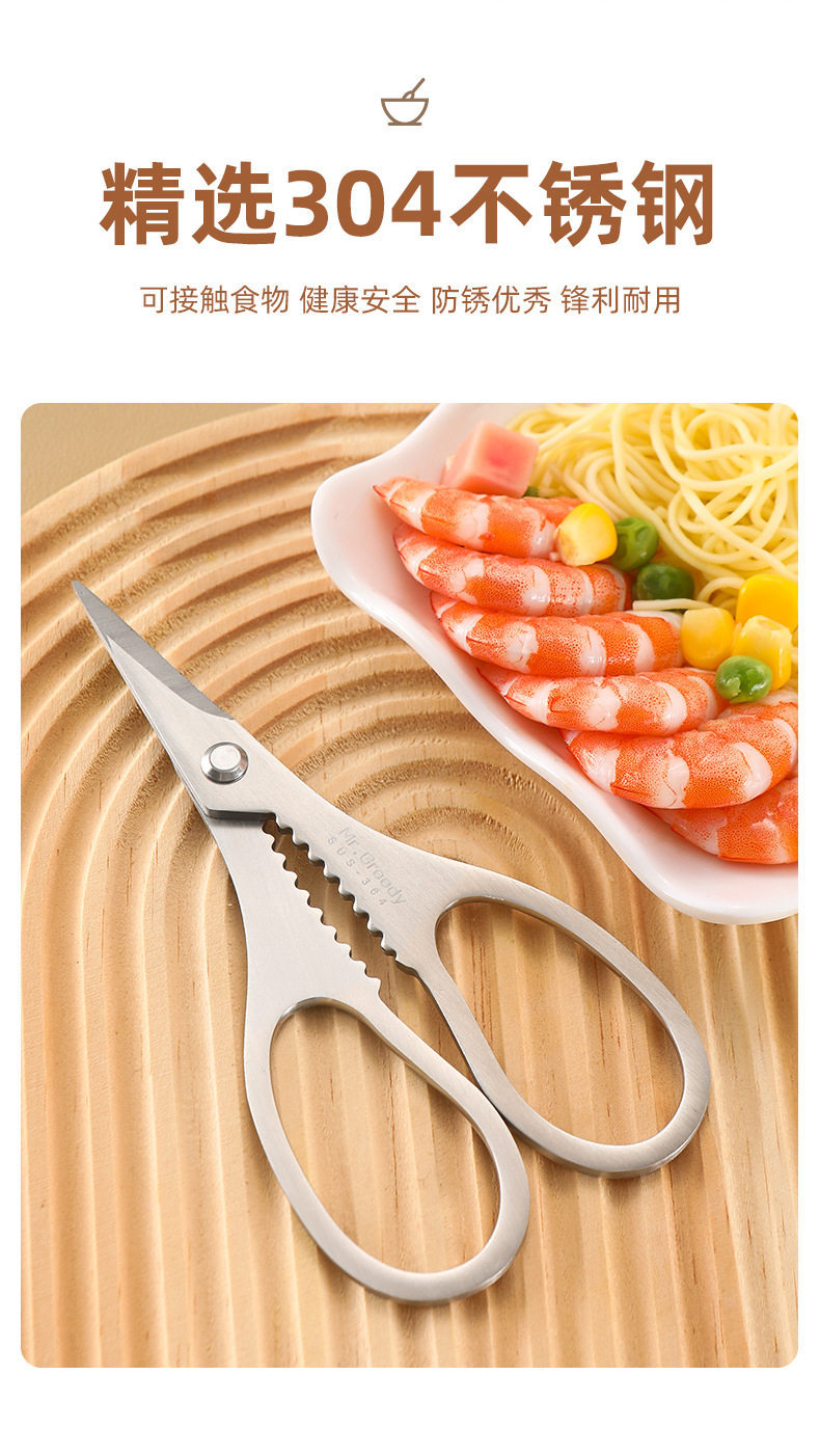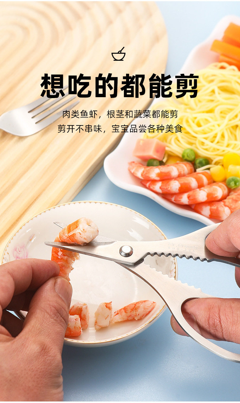 Kitchen Multifunctional 304 Stainless Steel Food Supplement Scissors Crab Lobster Powerful Kidsren's Baby Food Scissors
