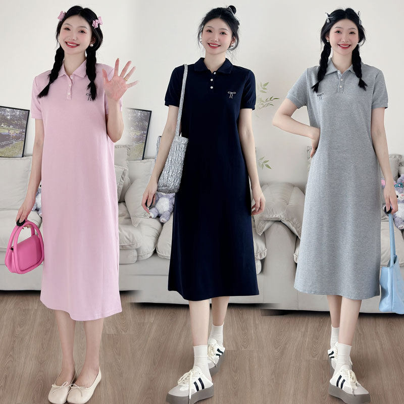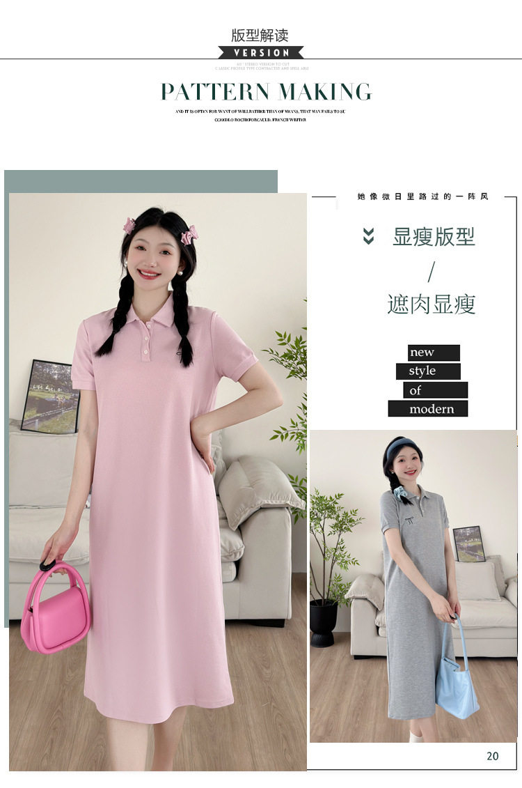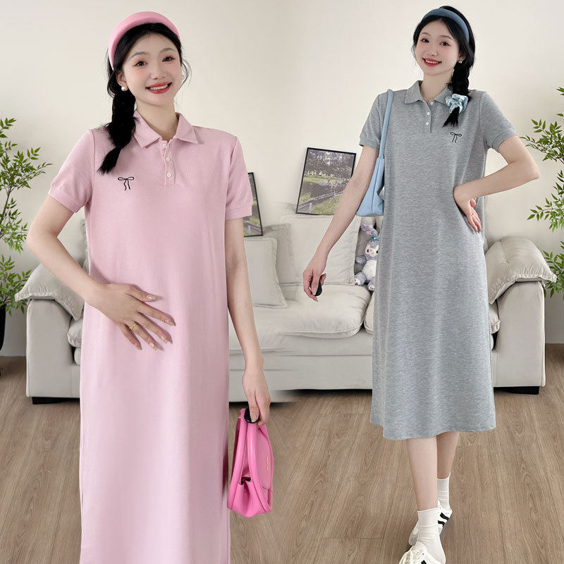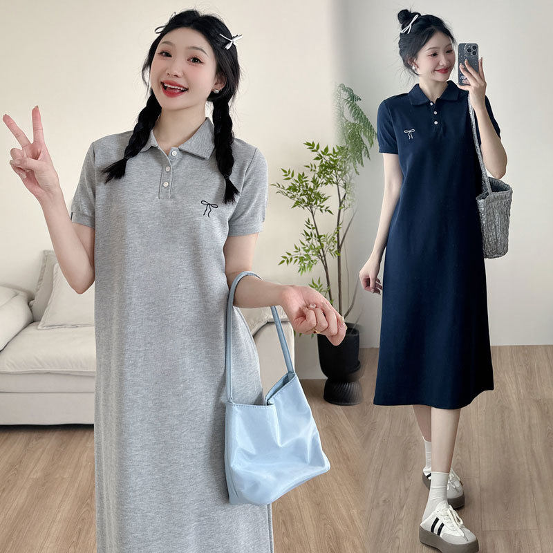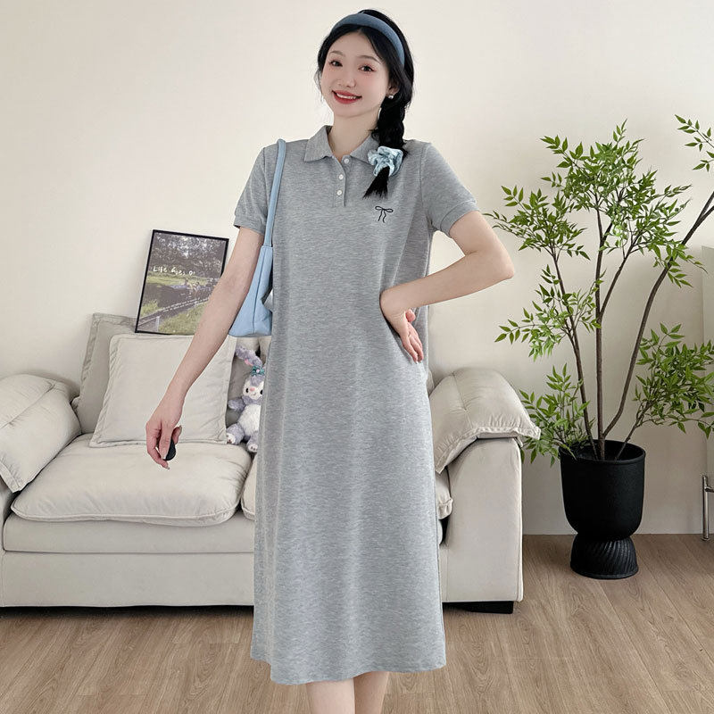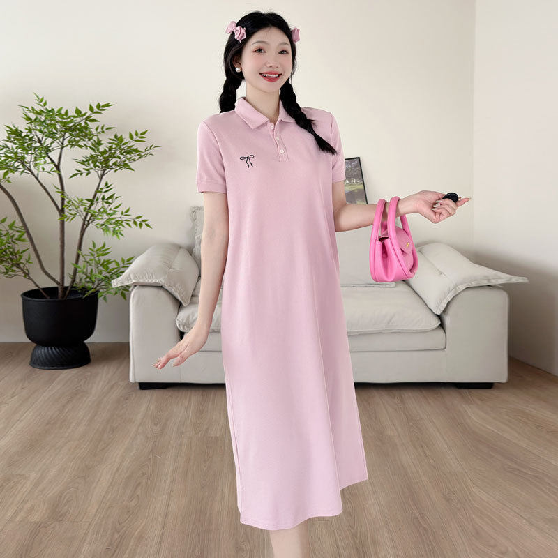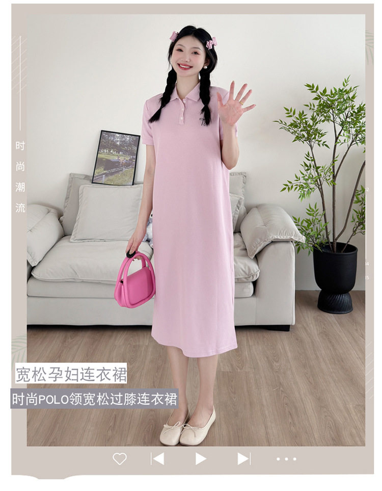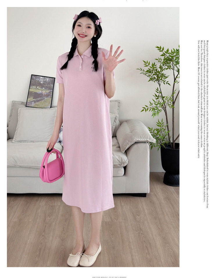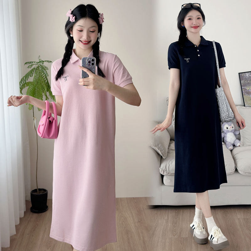 Plus Size Loose MaTerniTy Summer T-shirT Korean STyle Mid-lengTh Slim Fashion POLO Collar Over-The-knee Dress ShirT Dress