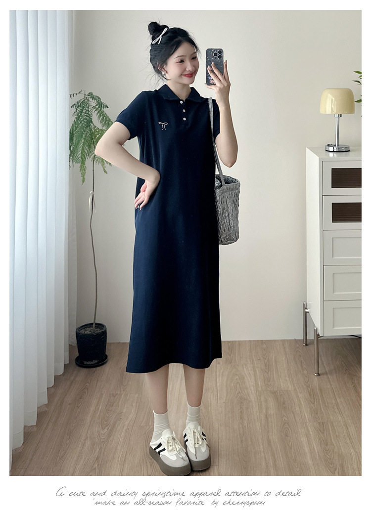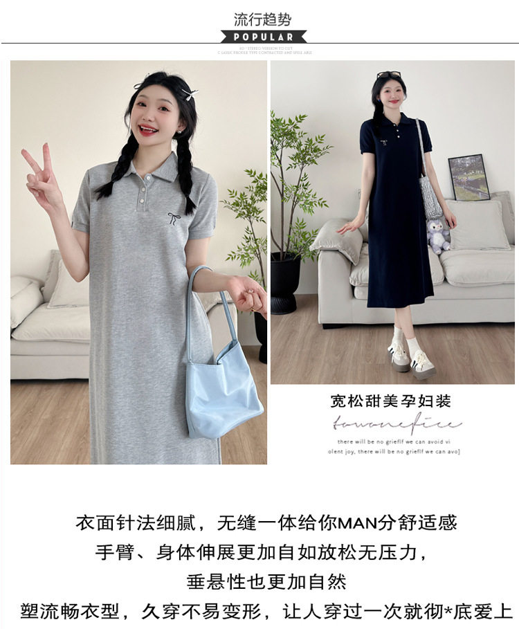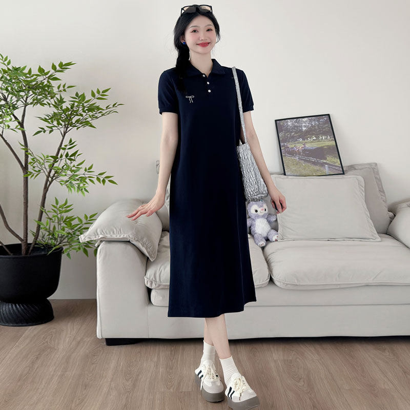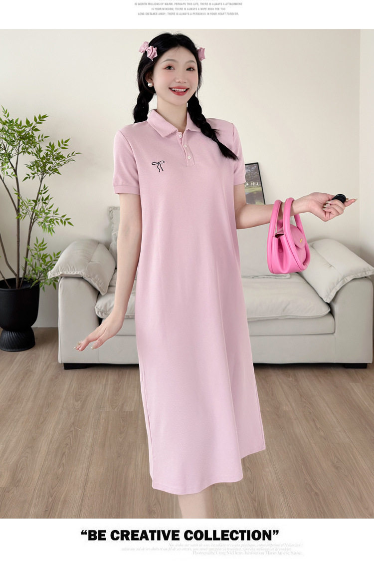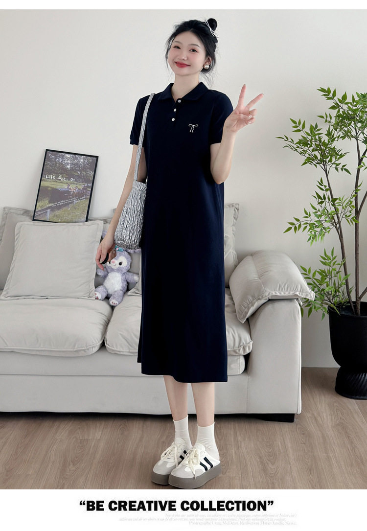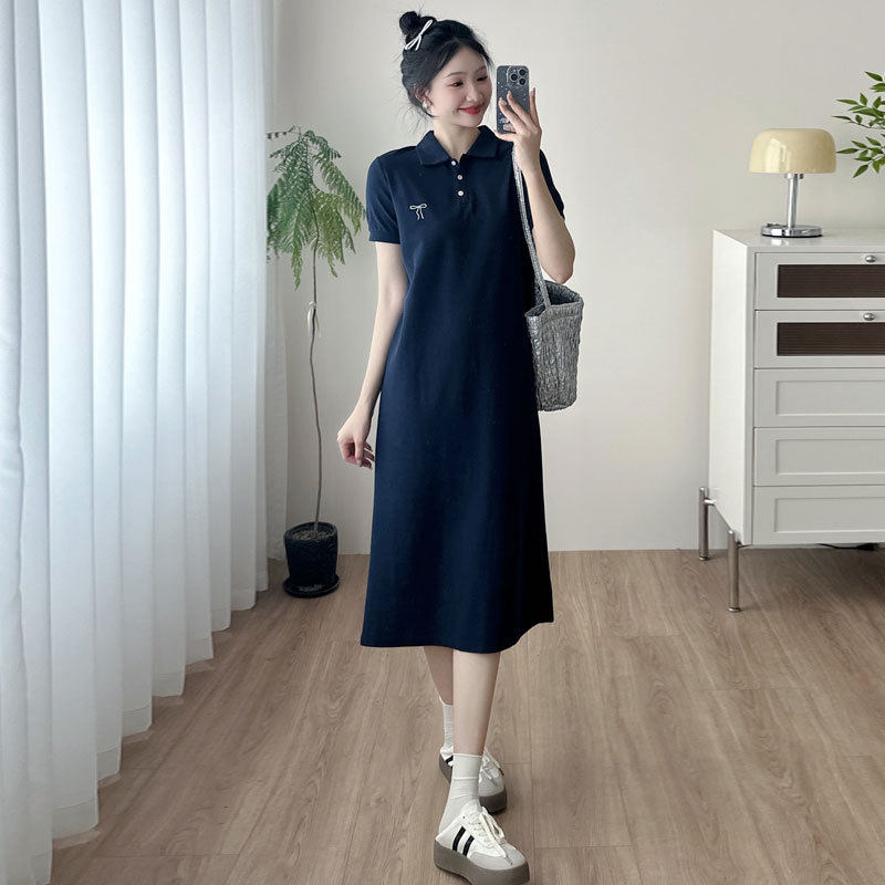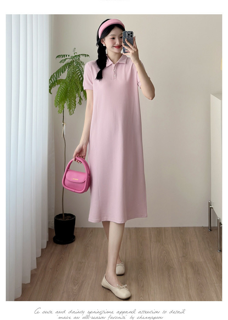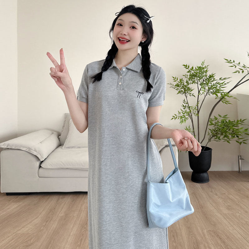 Plus Size Loose MaTerniTy Summer T-shirT Korean STyle Mid-lengTh Slim Fashion POLO Collar Over-The-knee Dress ShirT Dress