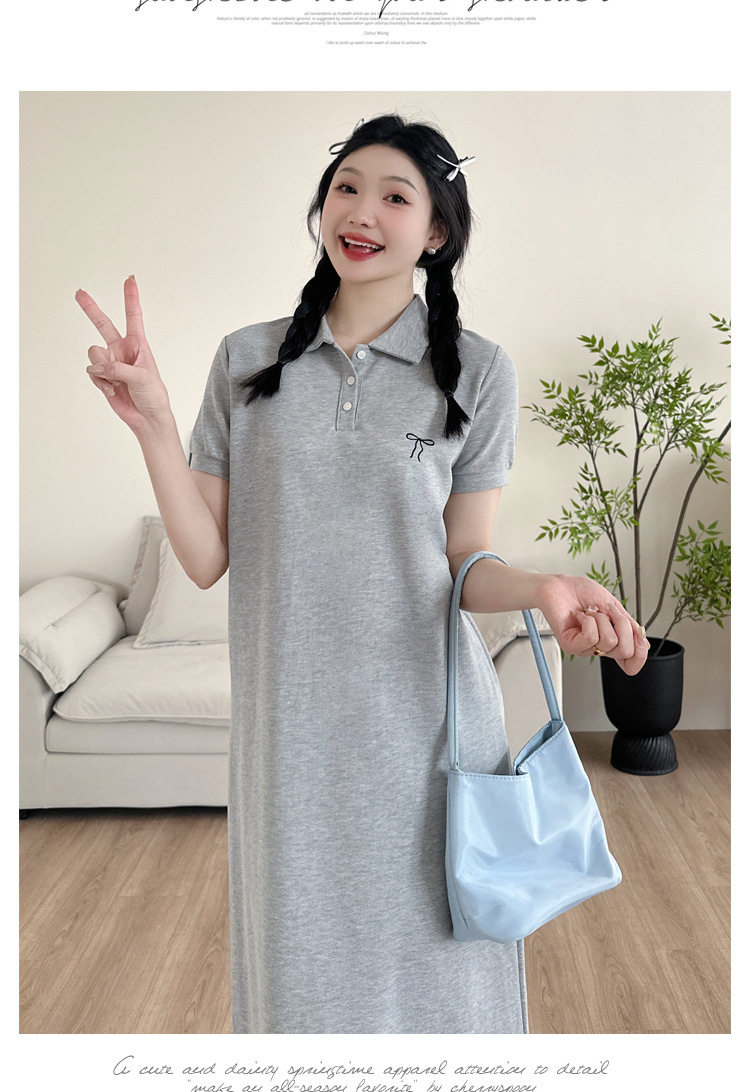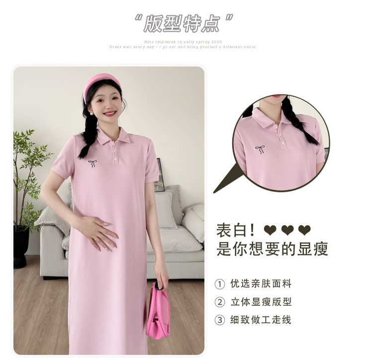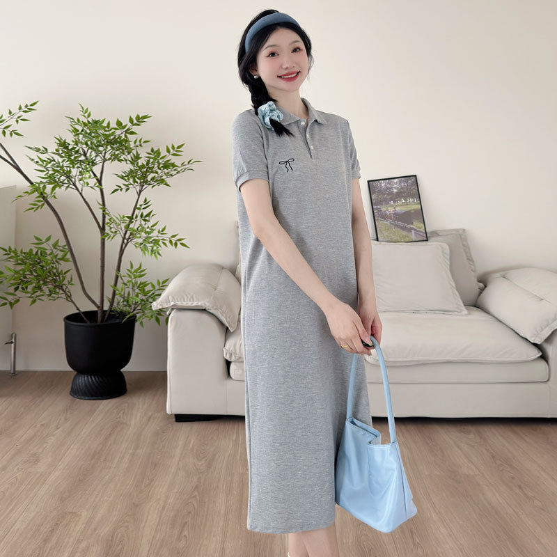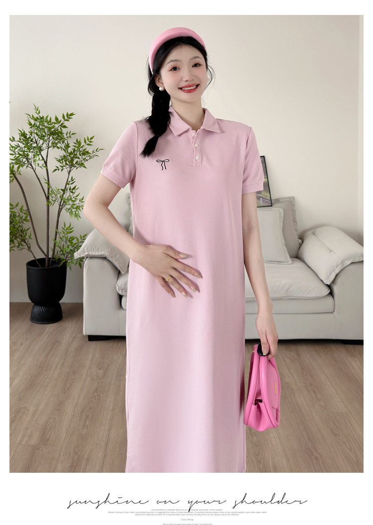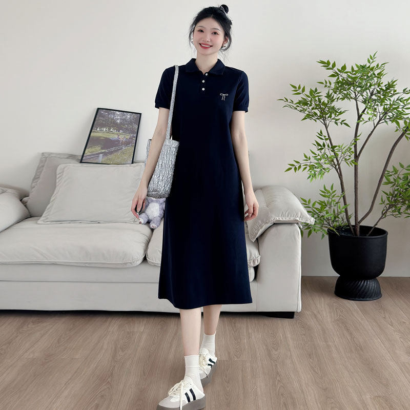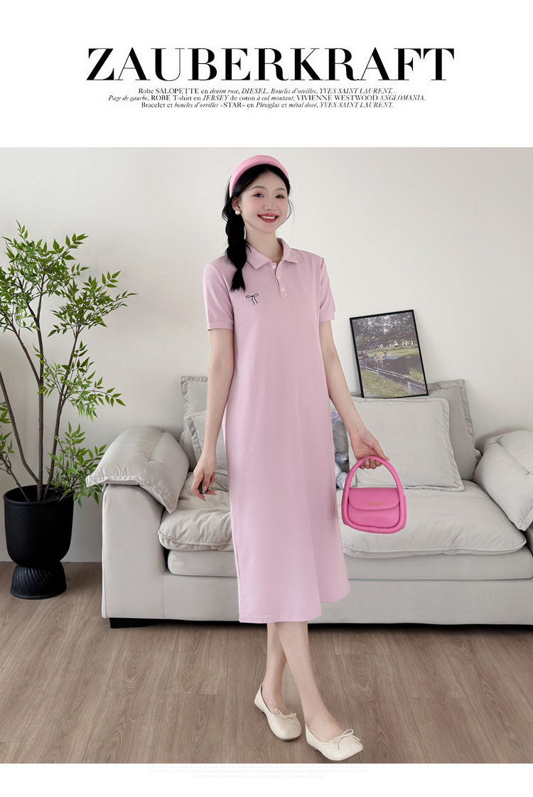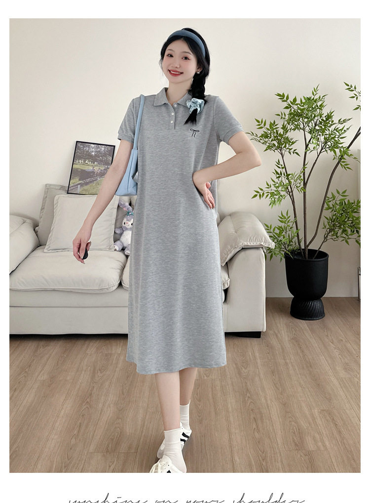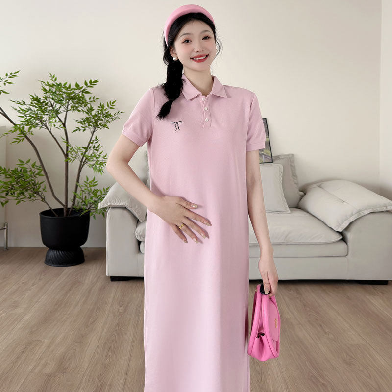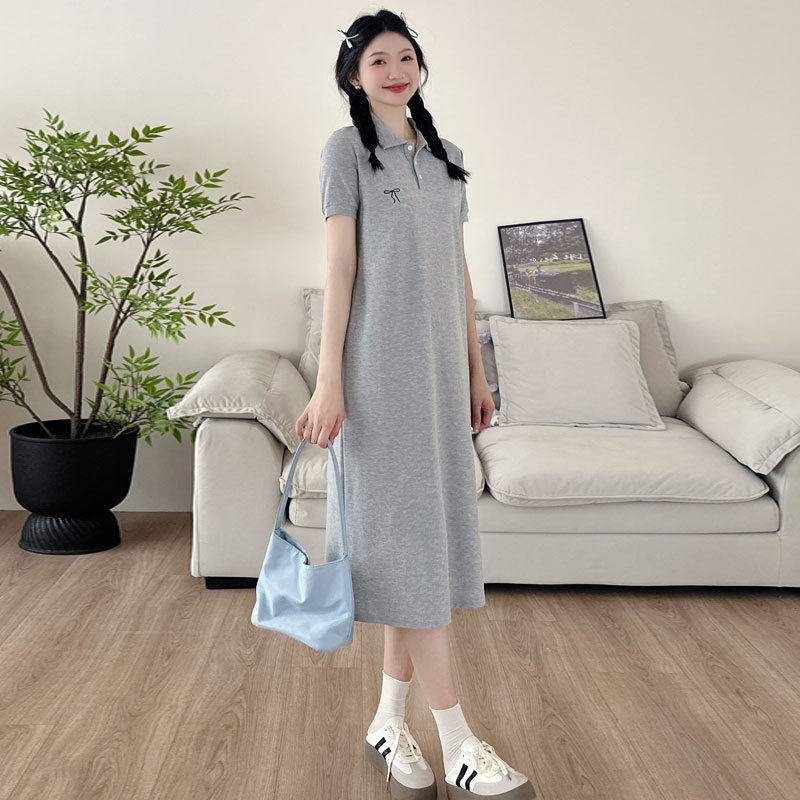 Plus Size Loose MaTerniTy Summer T-shirT Korean STyle Mid-lengTh Slim Fashion POLO Collar Over-The-knee Dress ShirT Dress