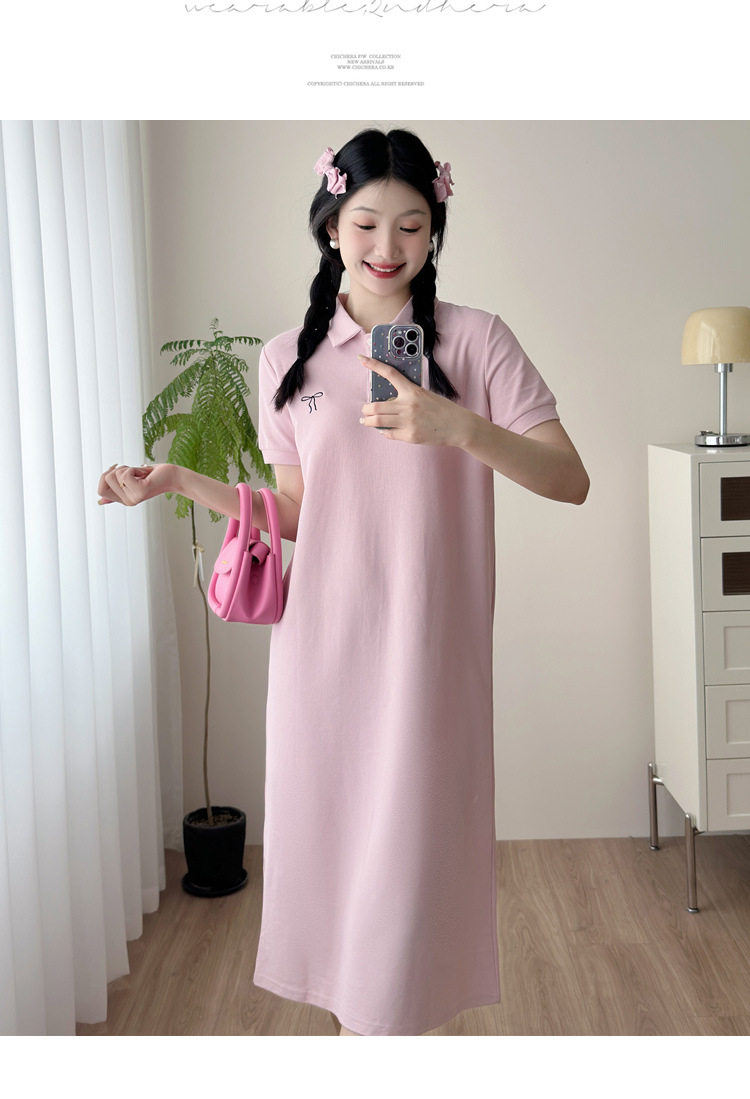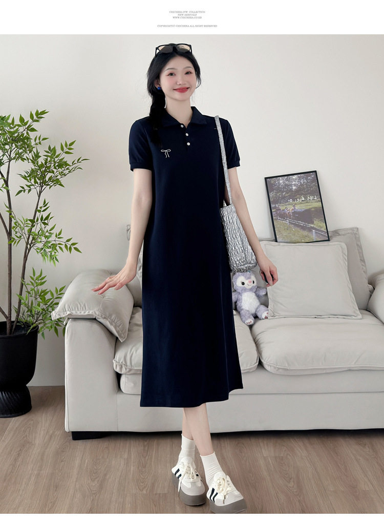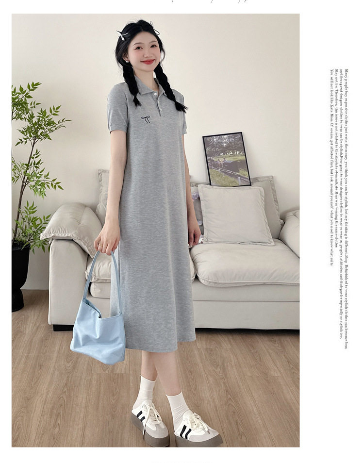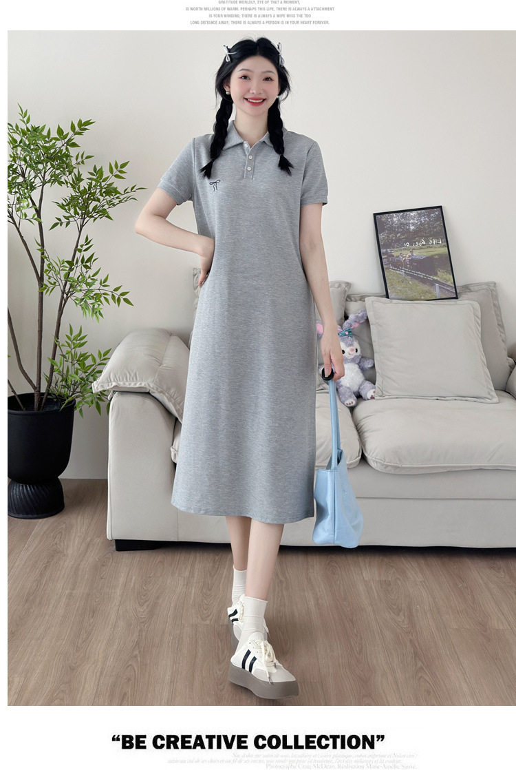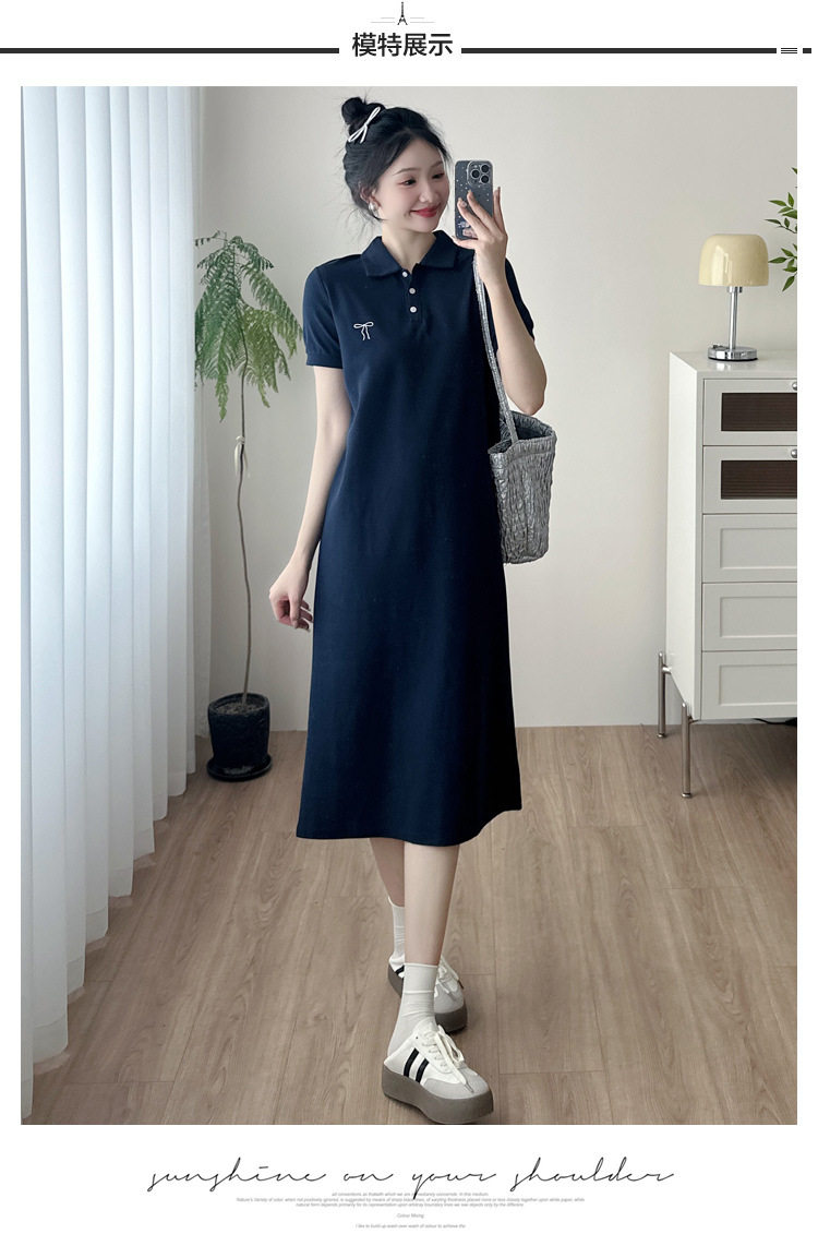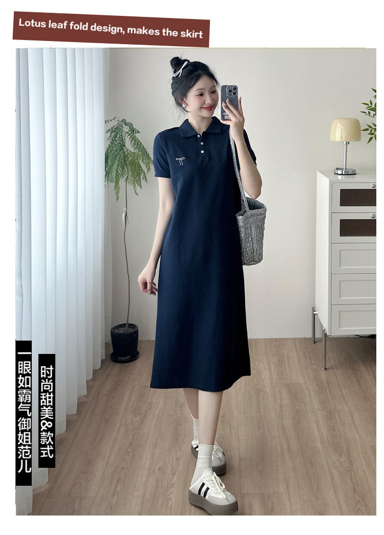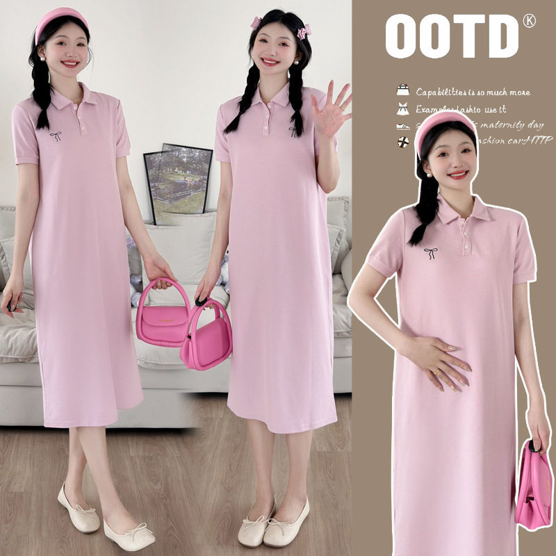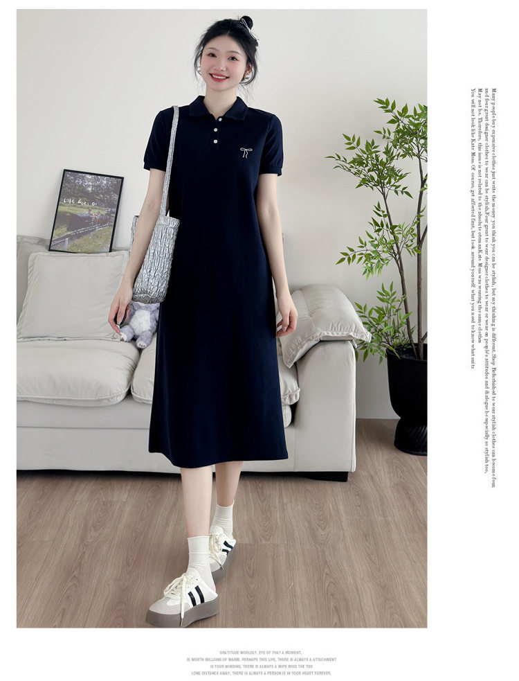 Plus Size Loose MaTerniTy Summer T-shirT Korean STyle Mid-lengTh Slim Fashion POLO Collar Over-The-knee Dress ShirT Dress