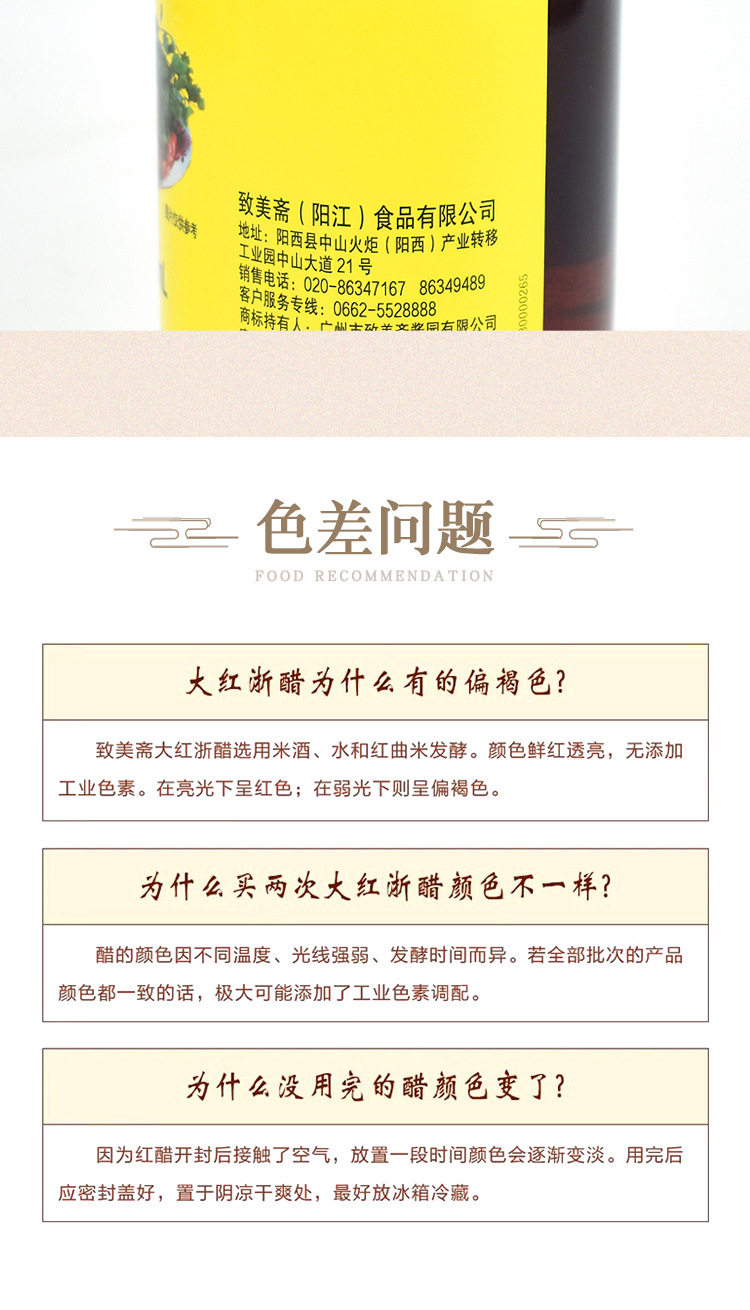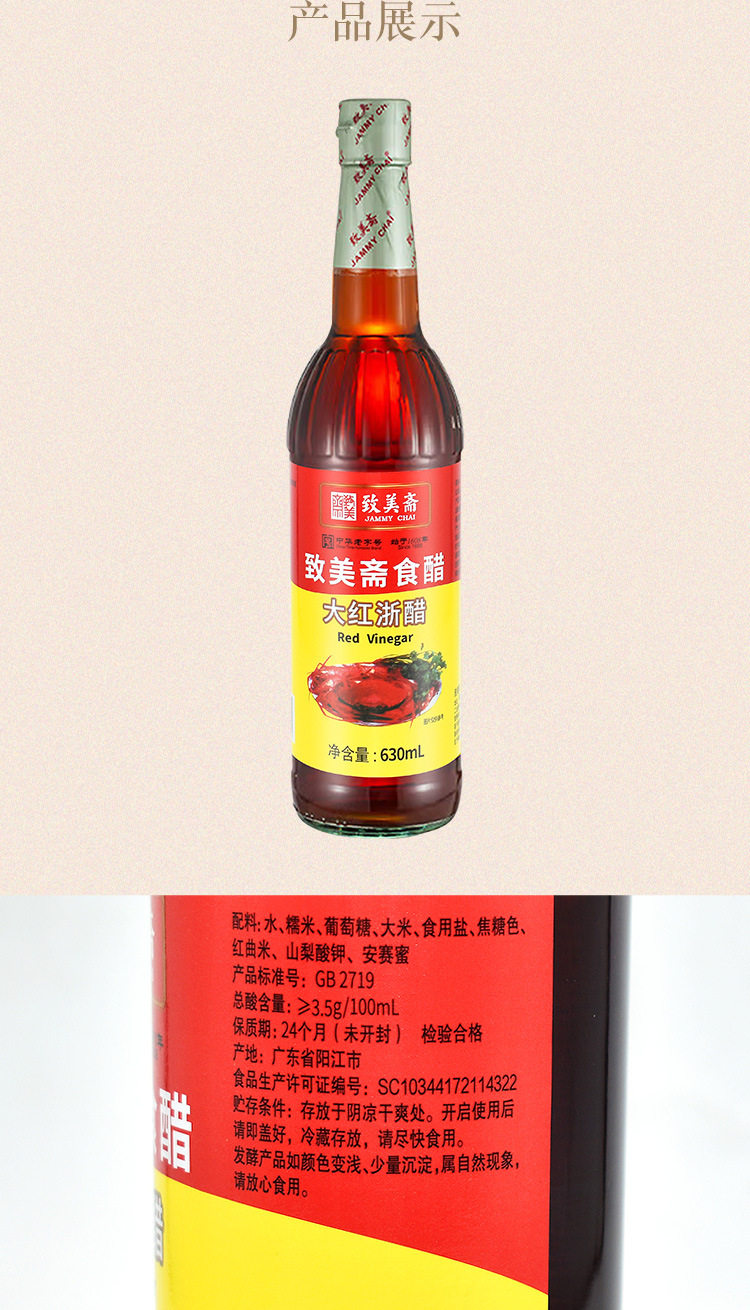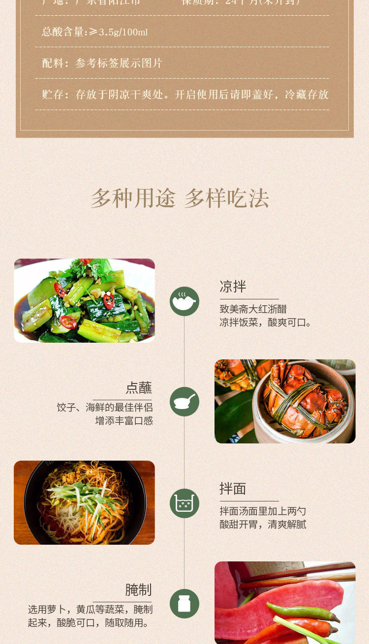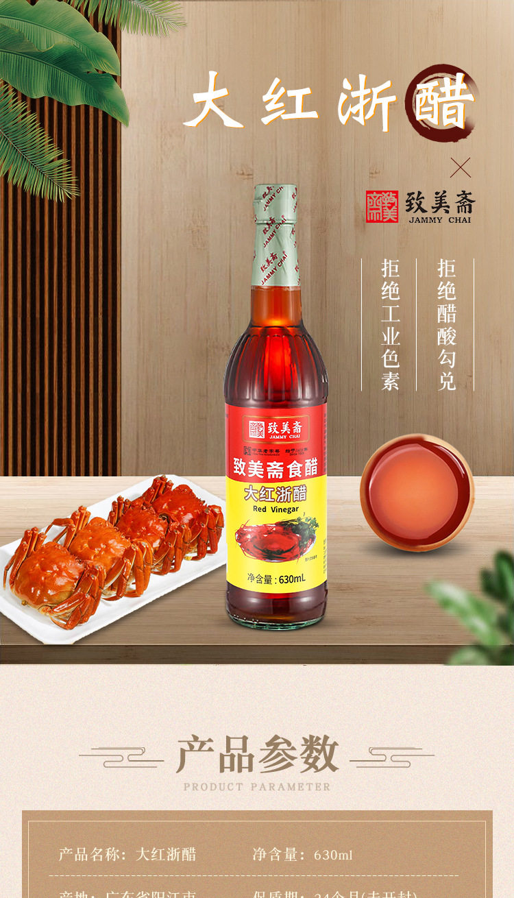 Zhimeizhai Dahong Zhejiang Vinegar 630ml/bottle Red Vinegar Soaked in Radish, Dumplings, Shrimp, Crabs, Sushi Points, Dipped in Vinegar, Seasoned Vinegar