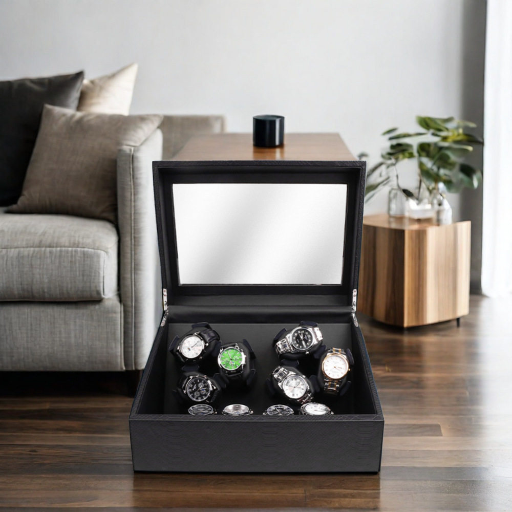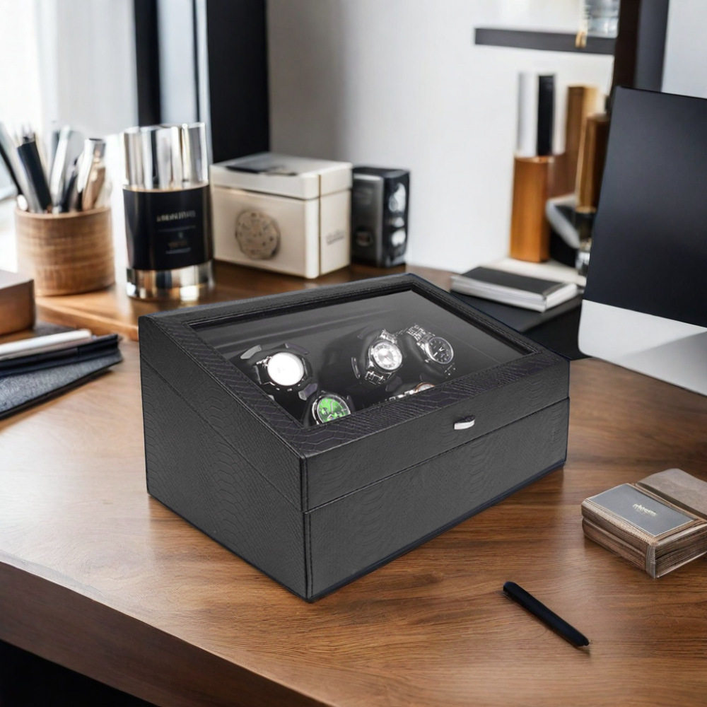 Factory In-Stock Snakeskin Pattern Pu6 Watch Winder + 6 Watch Storage Box for Mechanical Watches and Automatic Winding Watches