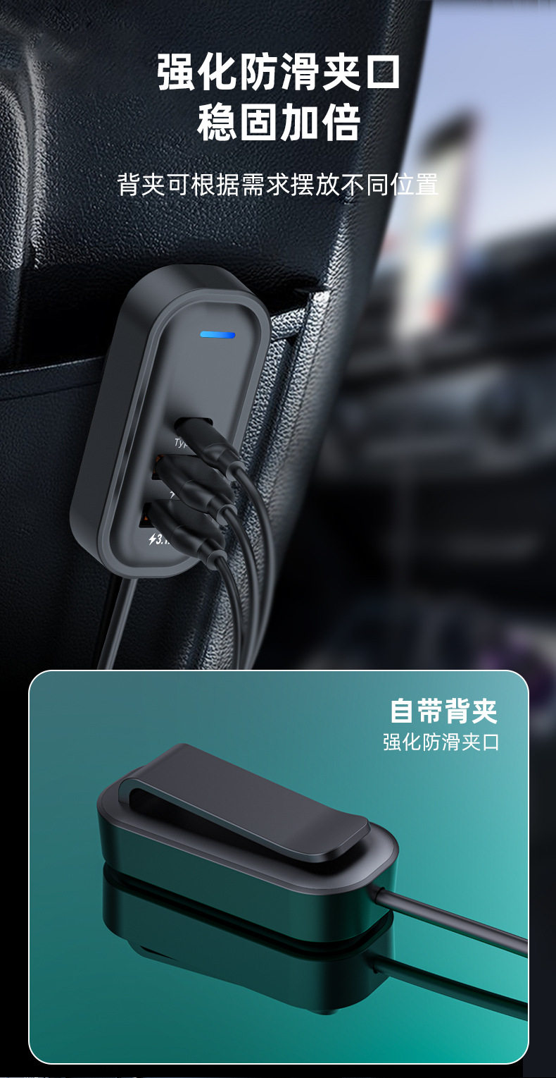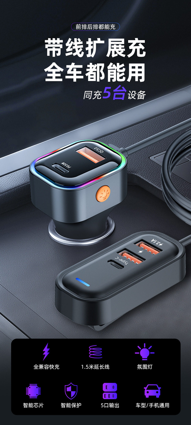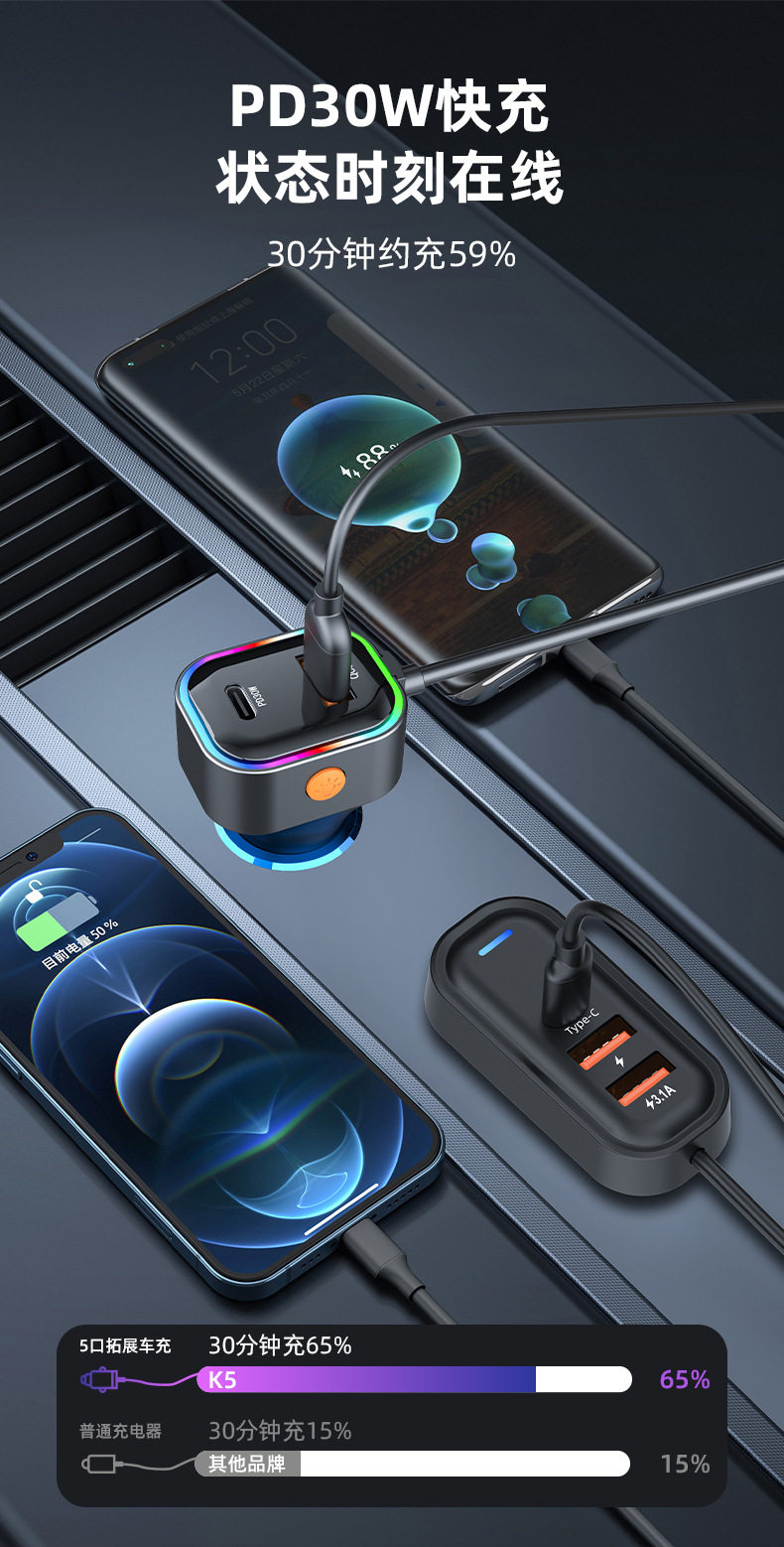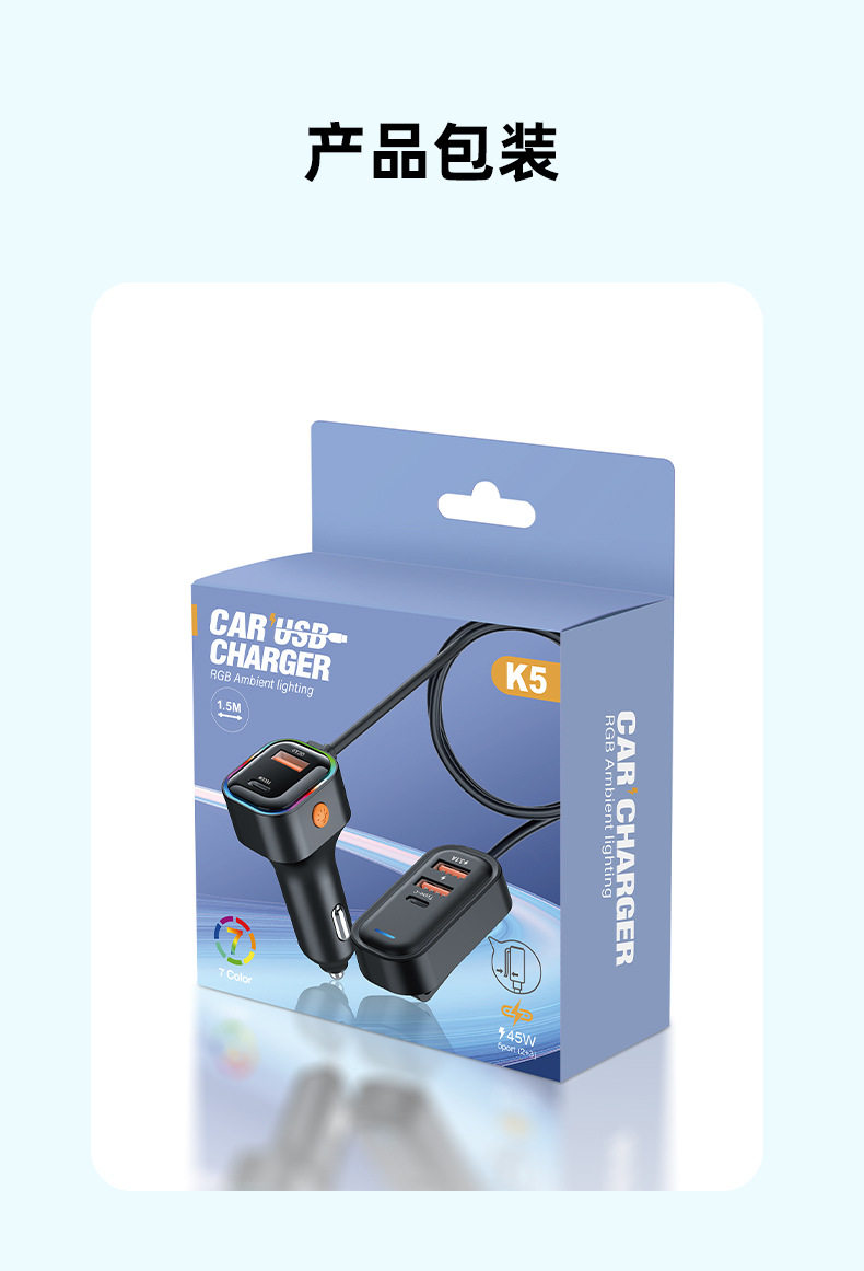 Cross-Border Supply with Rear Charging Car Charger Super Fast Charging Multi-Port USB Car Charger Mobile Phone Multi-Port Fast Charging