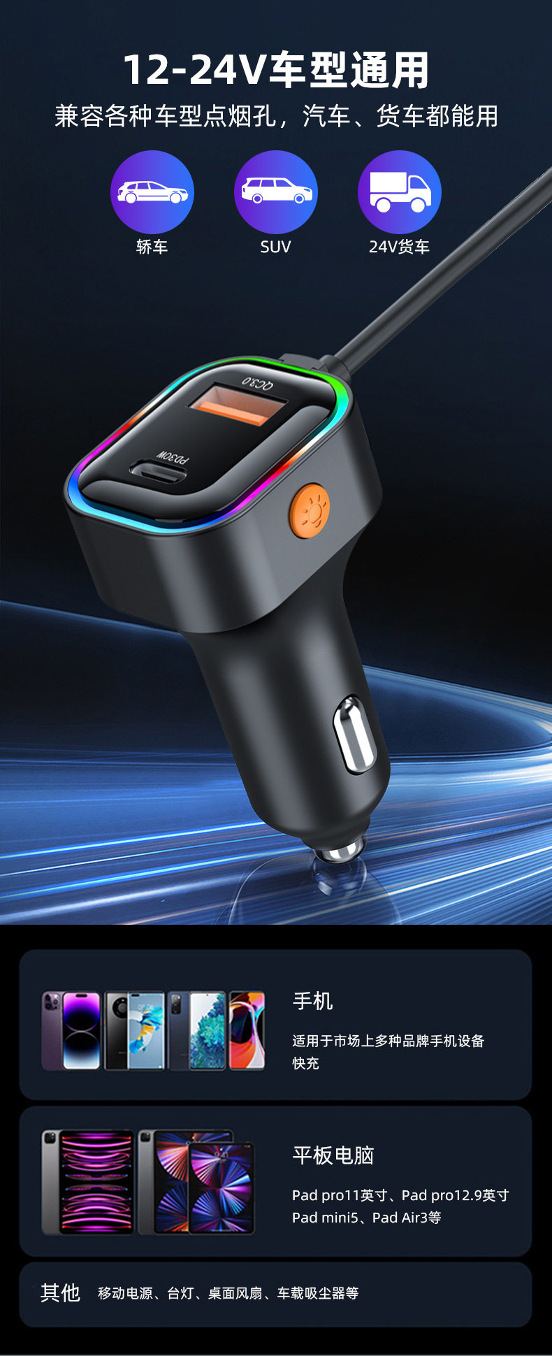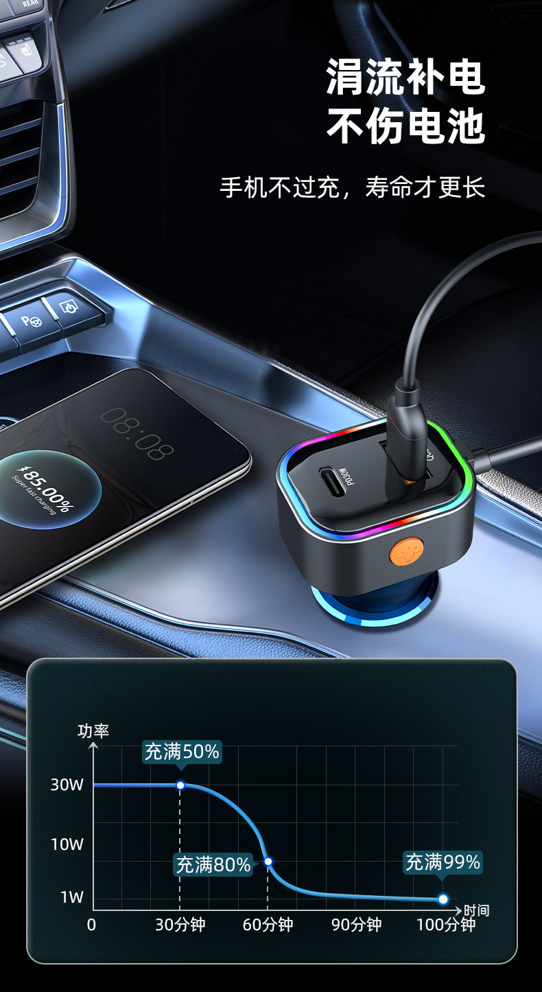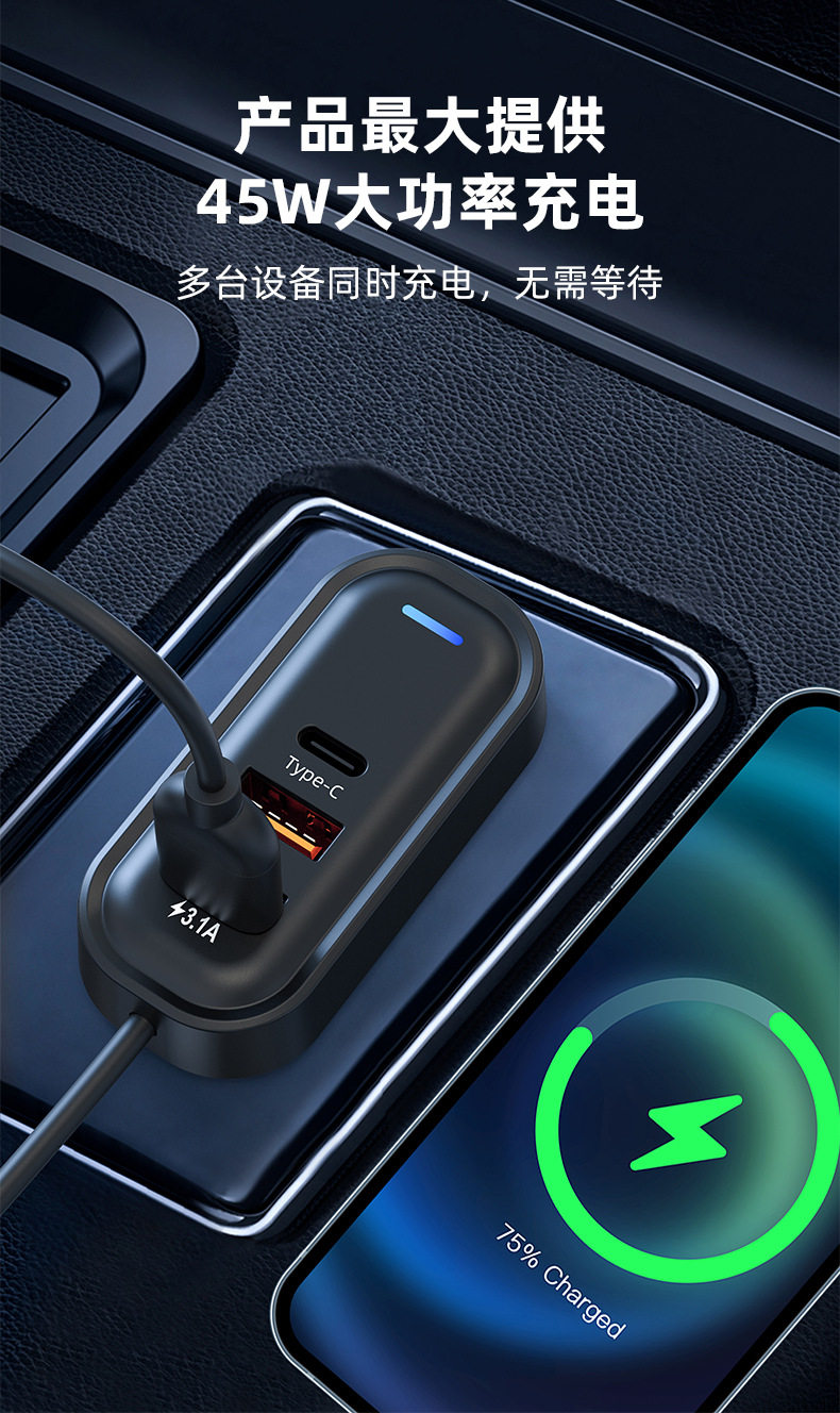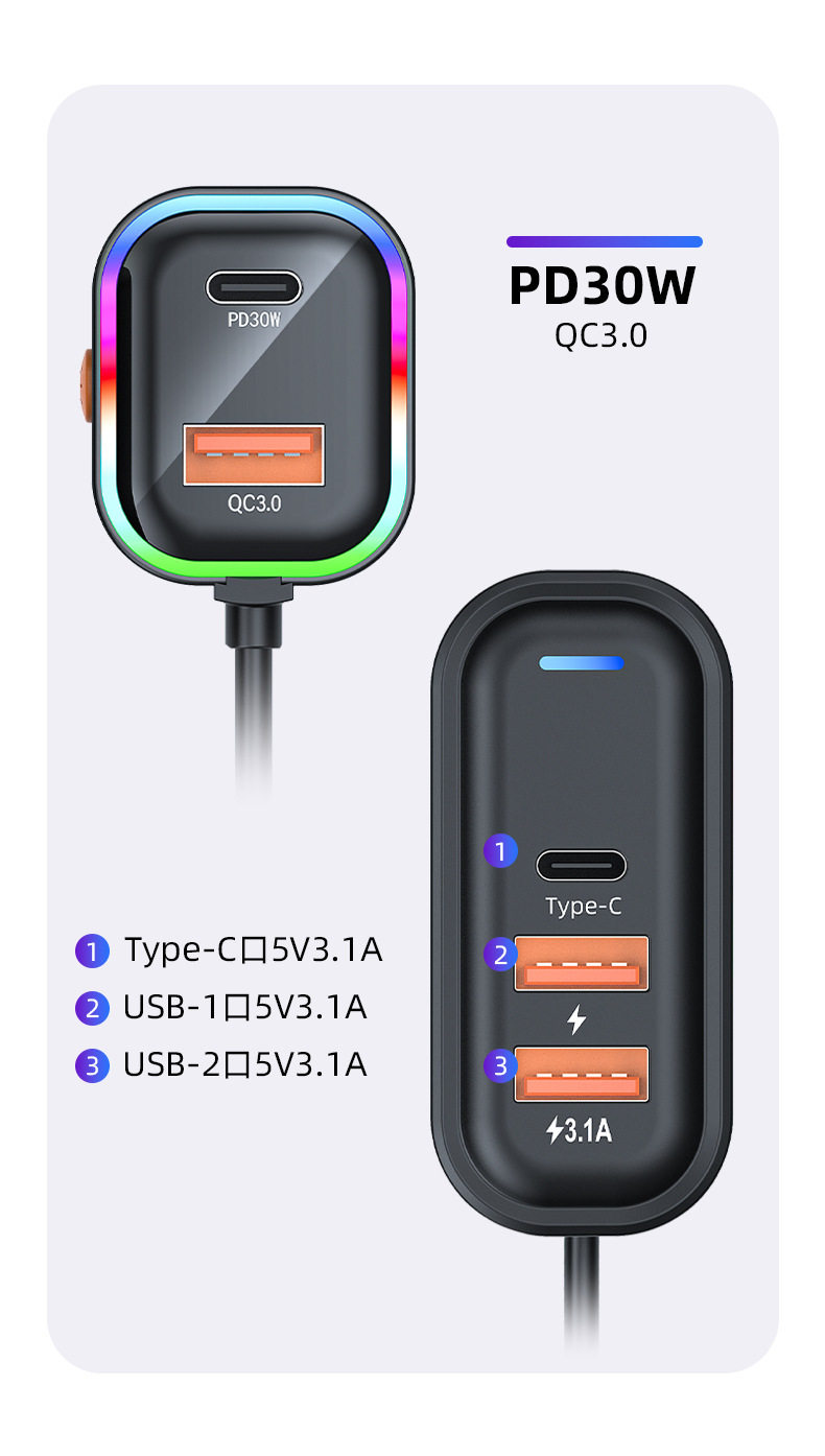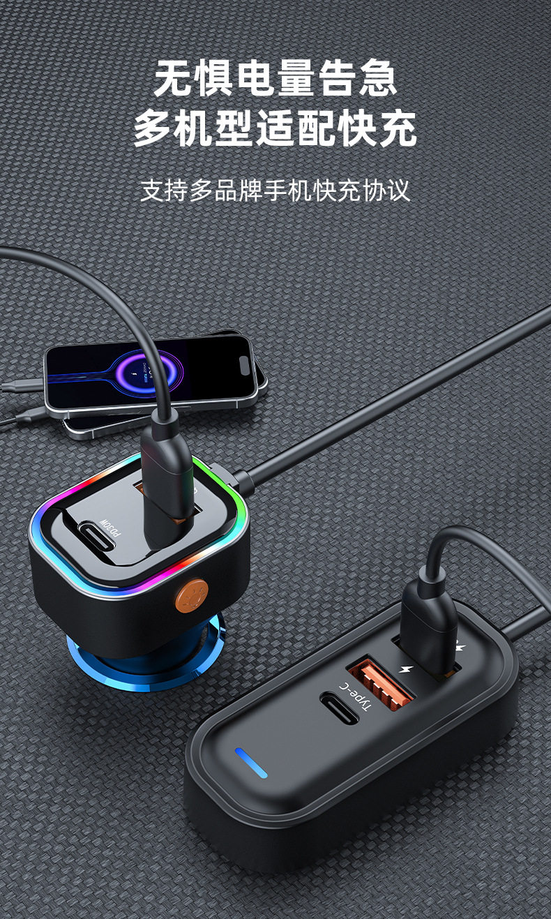 Cross-Border Supply with Rear Charging Car Charger Super Fast Charging Multi-Port USB Car Charger Mobile Phone Multi-Port Fast Charging