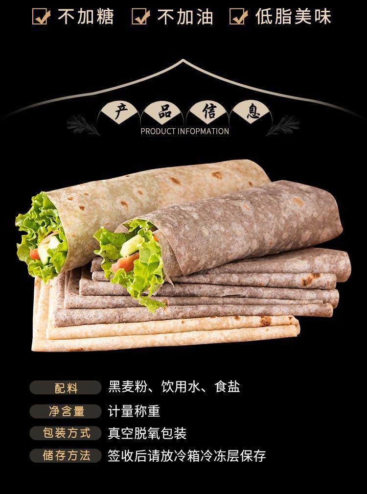 Black Whole Wheat Buckwheat Whole Wheat Wraps Low-Fat Meal Replacement Shandong Pancakes Breakfast 0.5kg Approximately 12 Pieces
