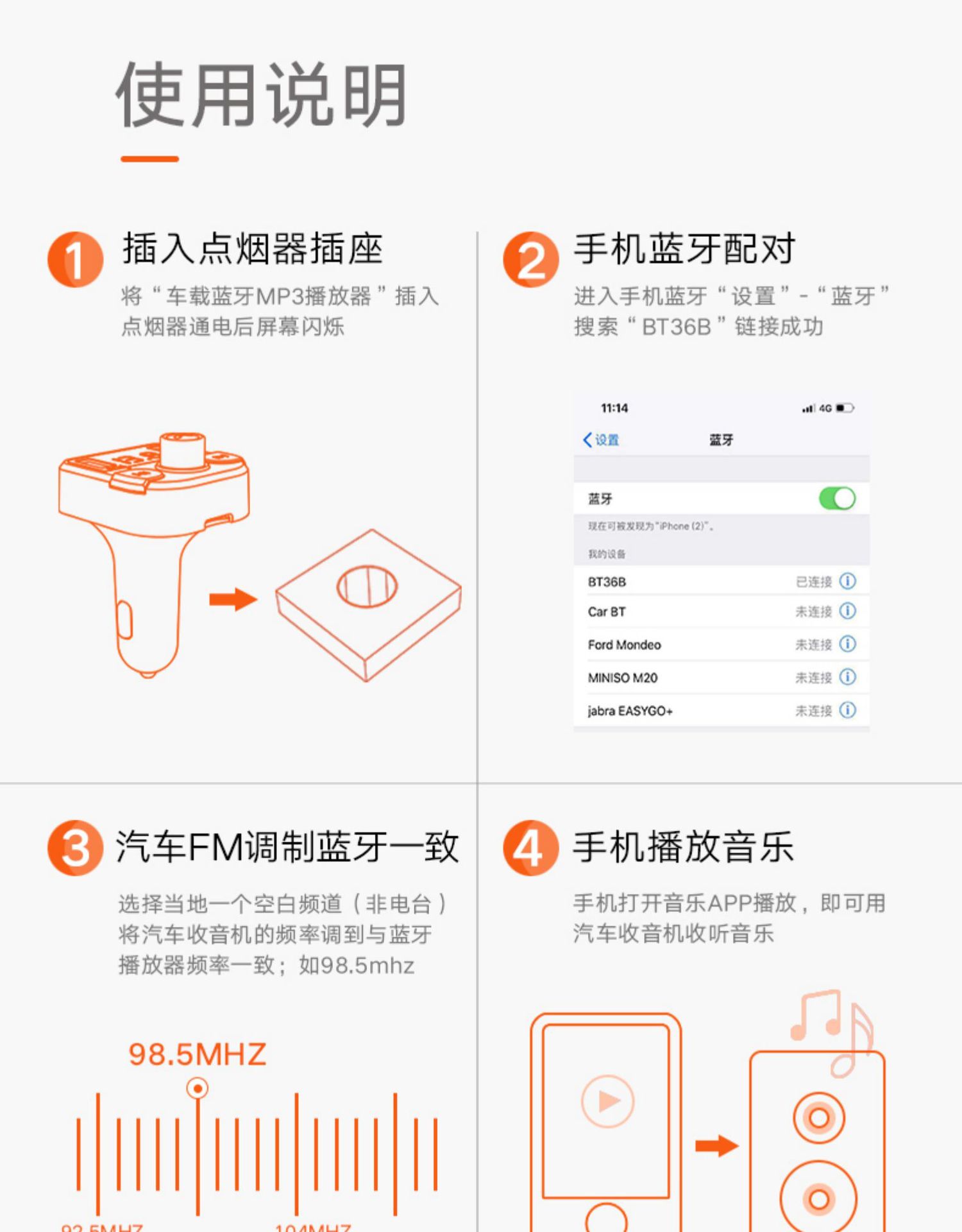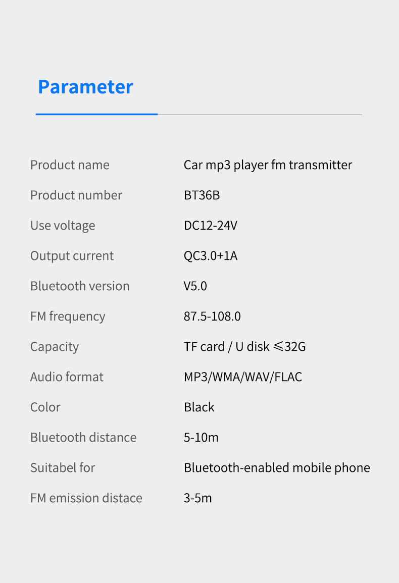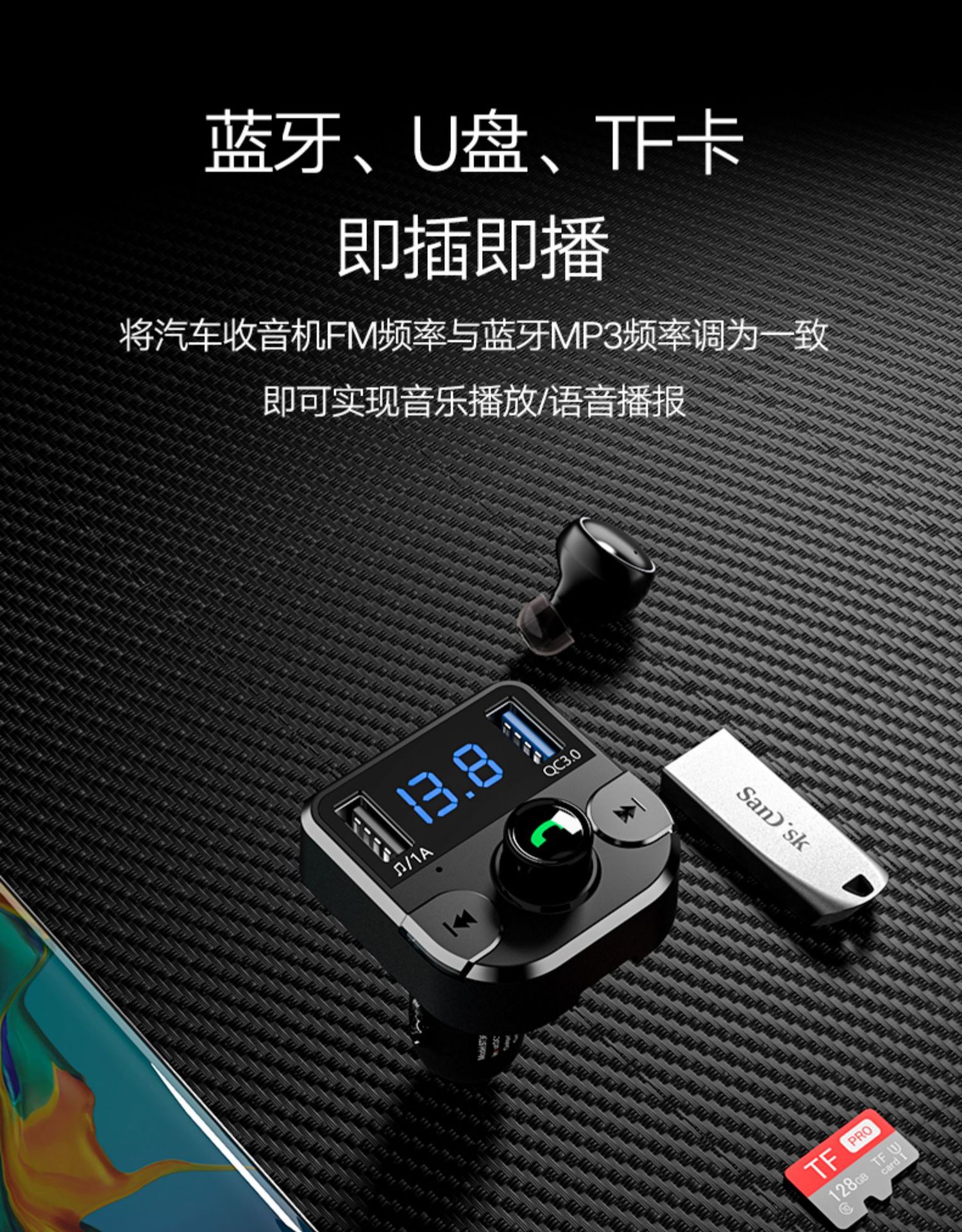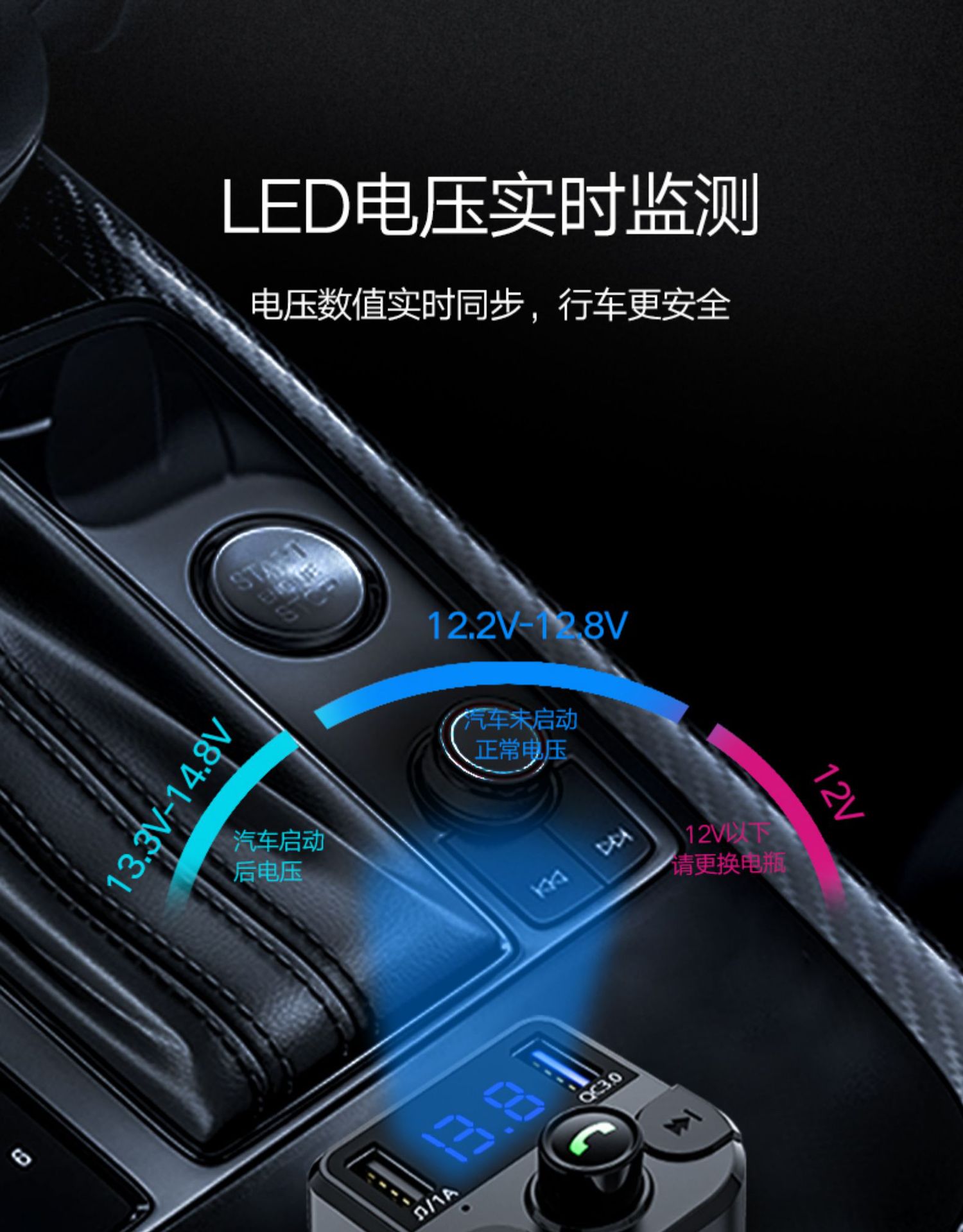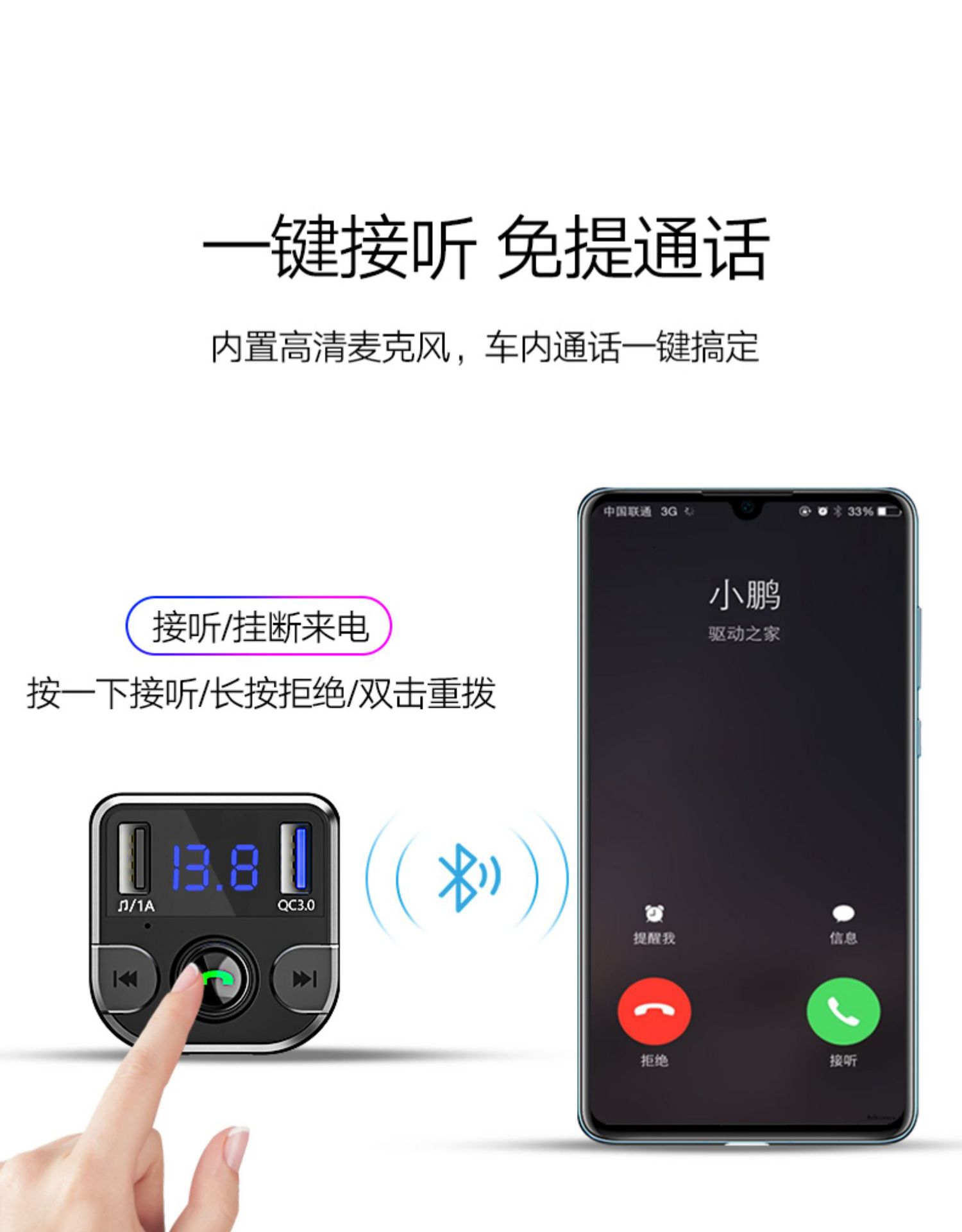 Car MP3 Car Bluetooth Player FM Transmitter Bluetooth Adapter Car Hands-Free Call Mobile Phone Charging