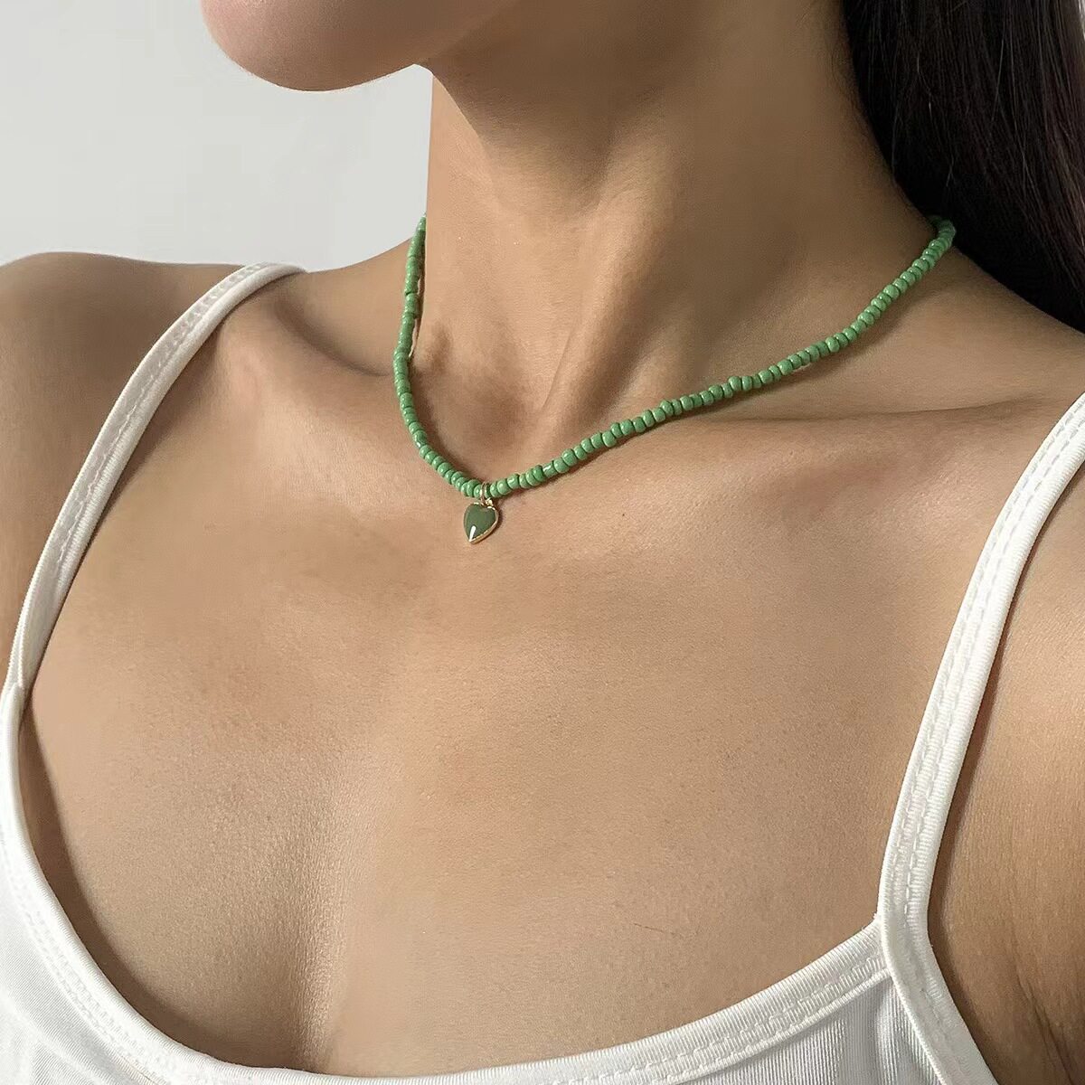 Bohemian Temu Hippo Amazon Explosions Best Selling Women's Clavicle Handmade Bead Heart Necklace