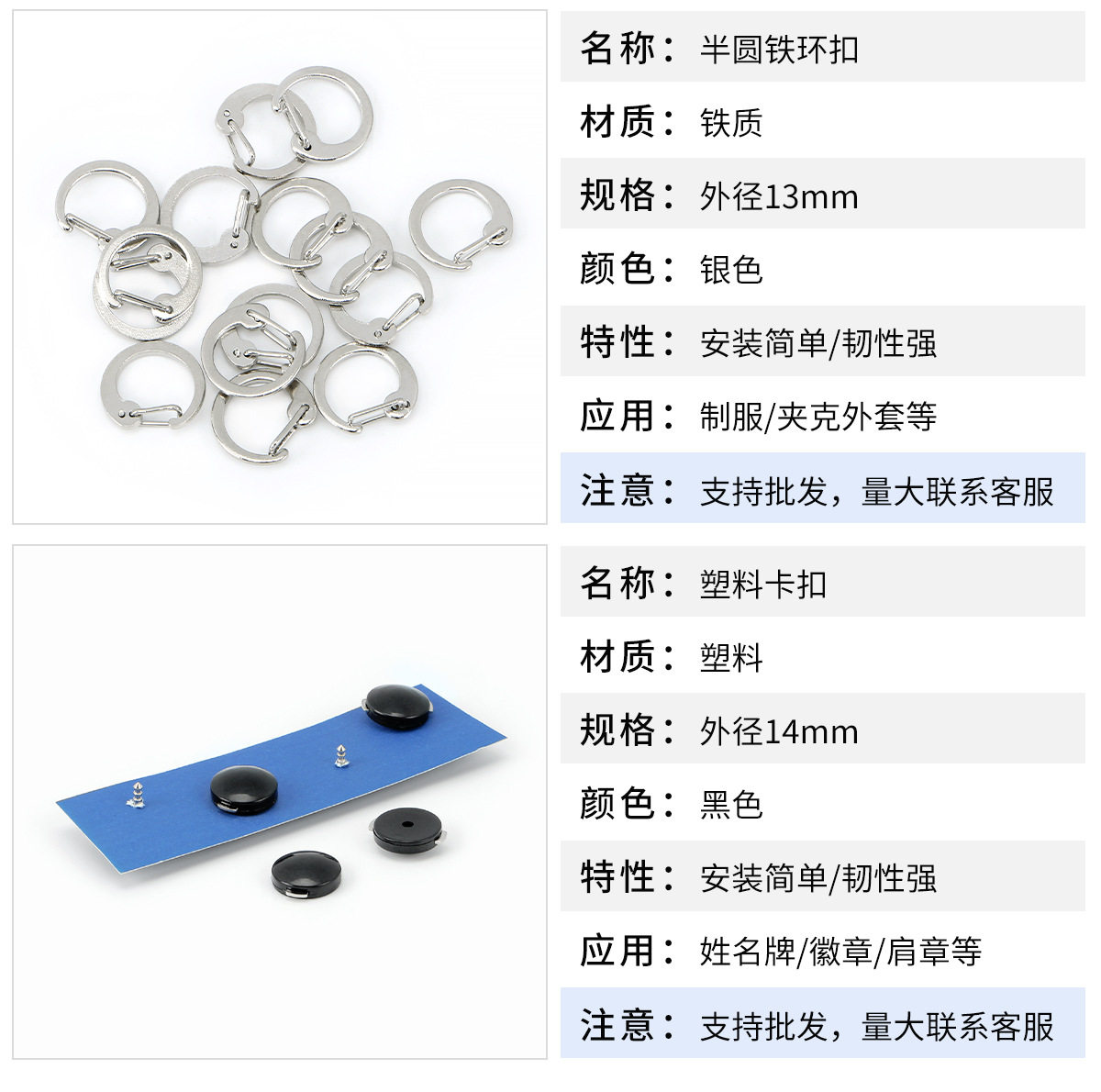 | Specifications and models | 9mm long leg shoulder buckle,11.5mm long leg shoulder buckle,Semi-circular iron ring buckle 13*0.9mm,Semi-circular iron ring buckle 13*1.2mm,Plastic buckle 14mm,9mm long leg buckle + 1.2 ring buckle,11.5mm long leg buckle + 1.2 ring buckle |