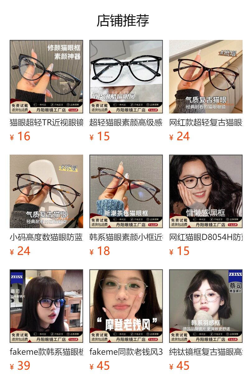 Internet Celebrity Cat Eye D8054H Anti-Blue Light Ultra-Light Tr Myopia Glasses Frame Female High-End Danyang Glasses Wholesale