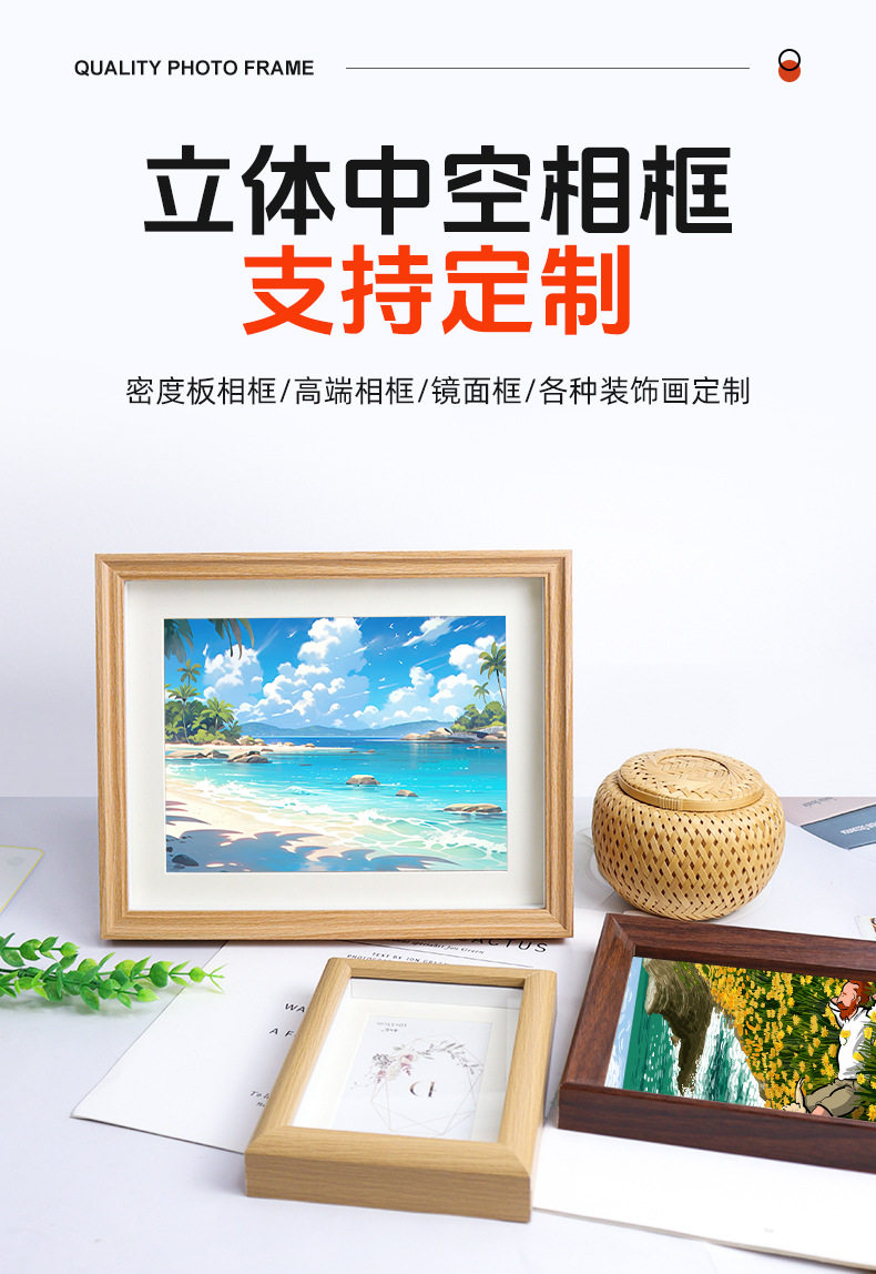6-Inch 10*15 Solid Wood Hollow Photo Frame, European-Style Modern Simple Retro Wedding and Travel Attraction Picture Frame