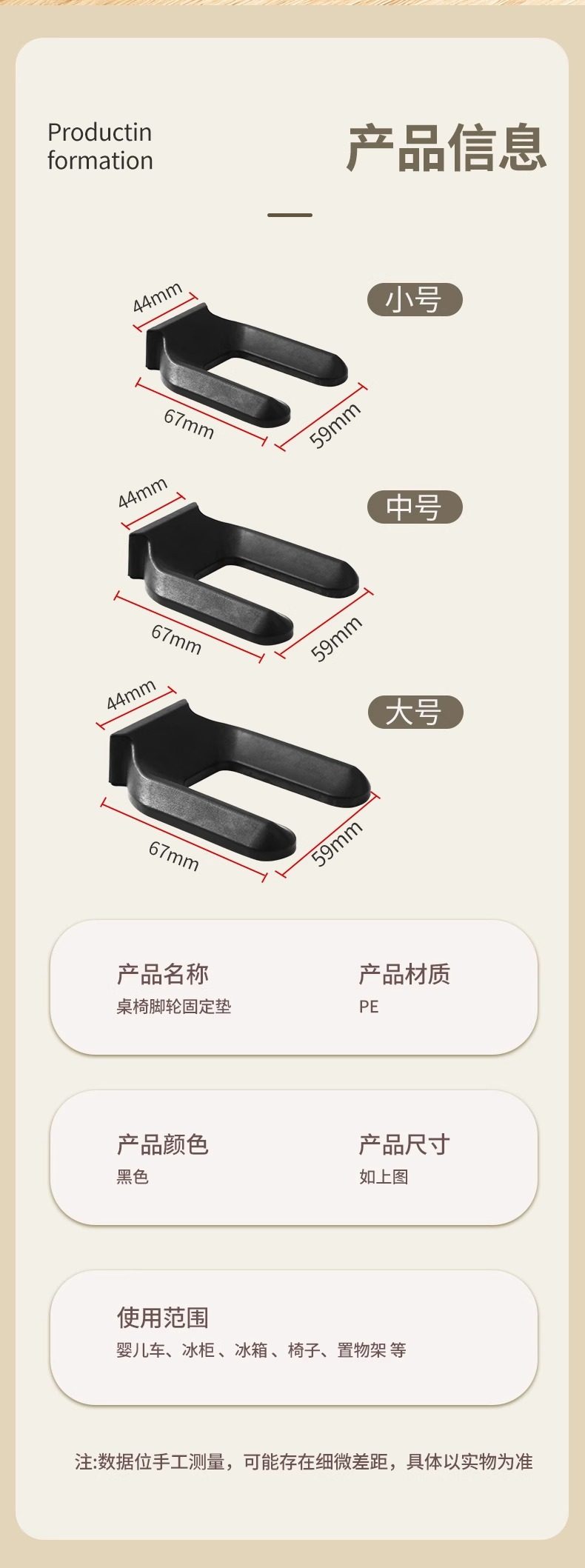 Specifications (1) large card slot [suitable for wheel diameter 7.5-10cm]],(1 pack) medium card slot [suitable for wheel diameter 6.5cm]],(1 pack) small size slot [suitable for wheel diameter 5cm]]