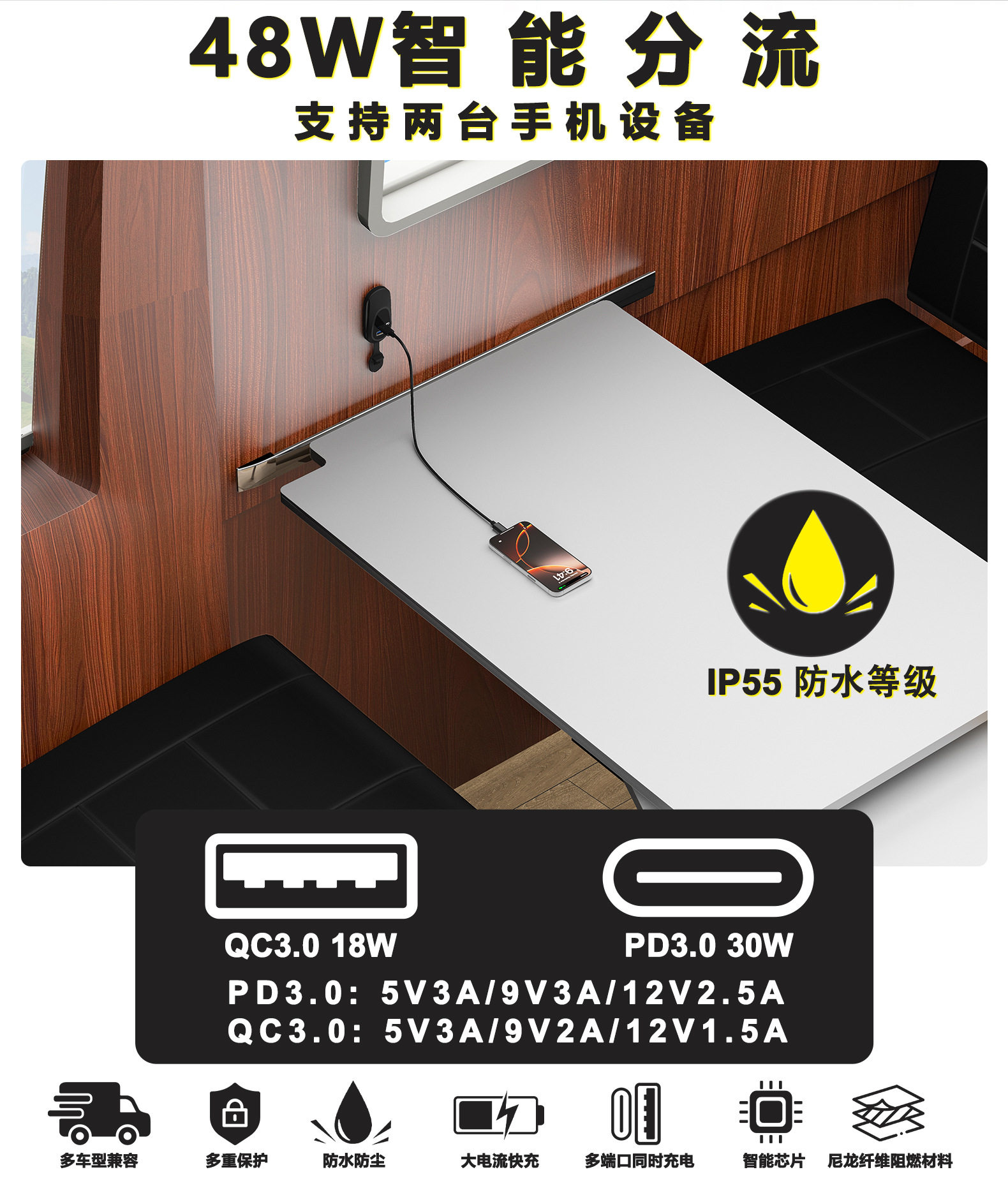 | Output power | Dual-port fast charging usb+type-c 48w |
