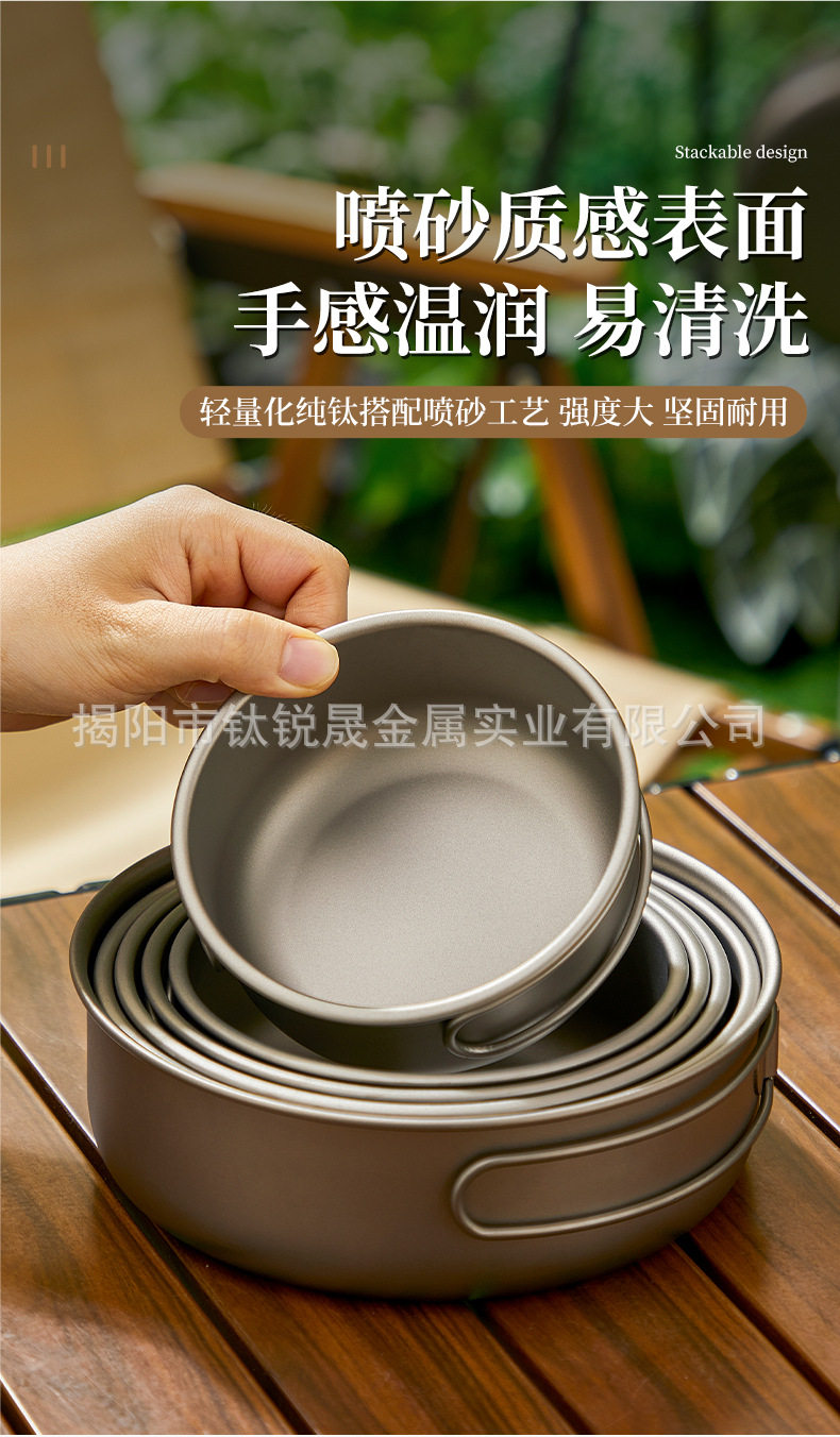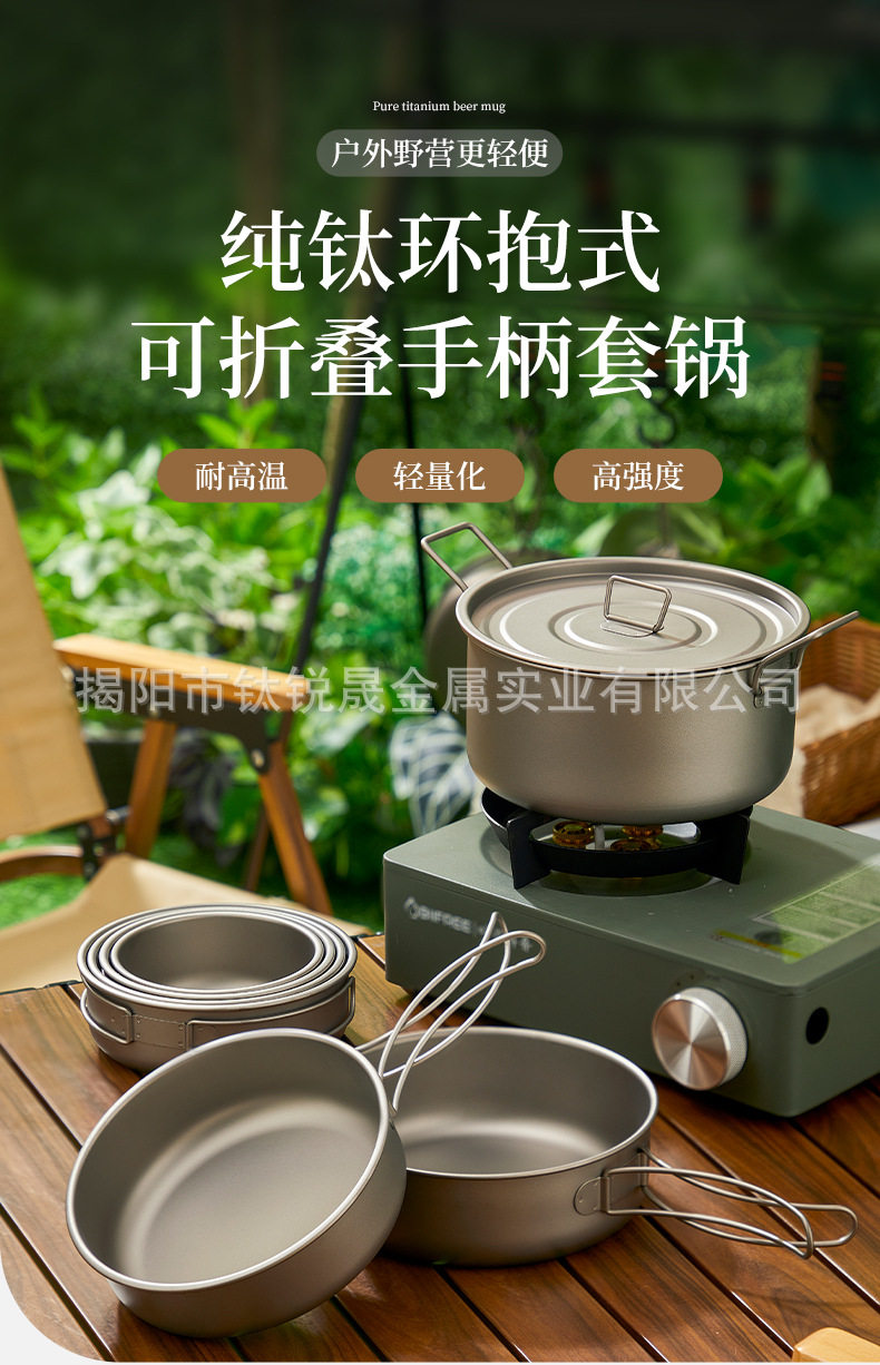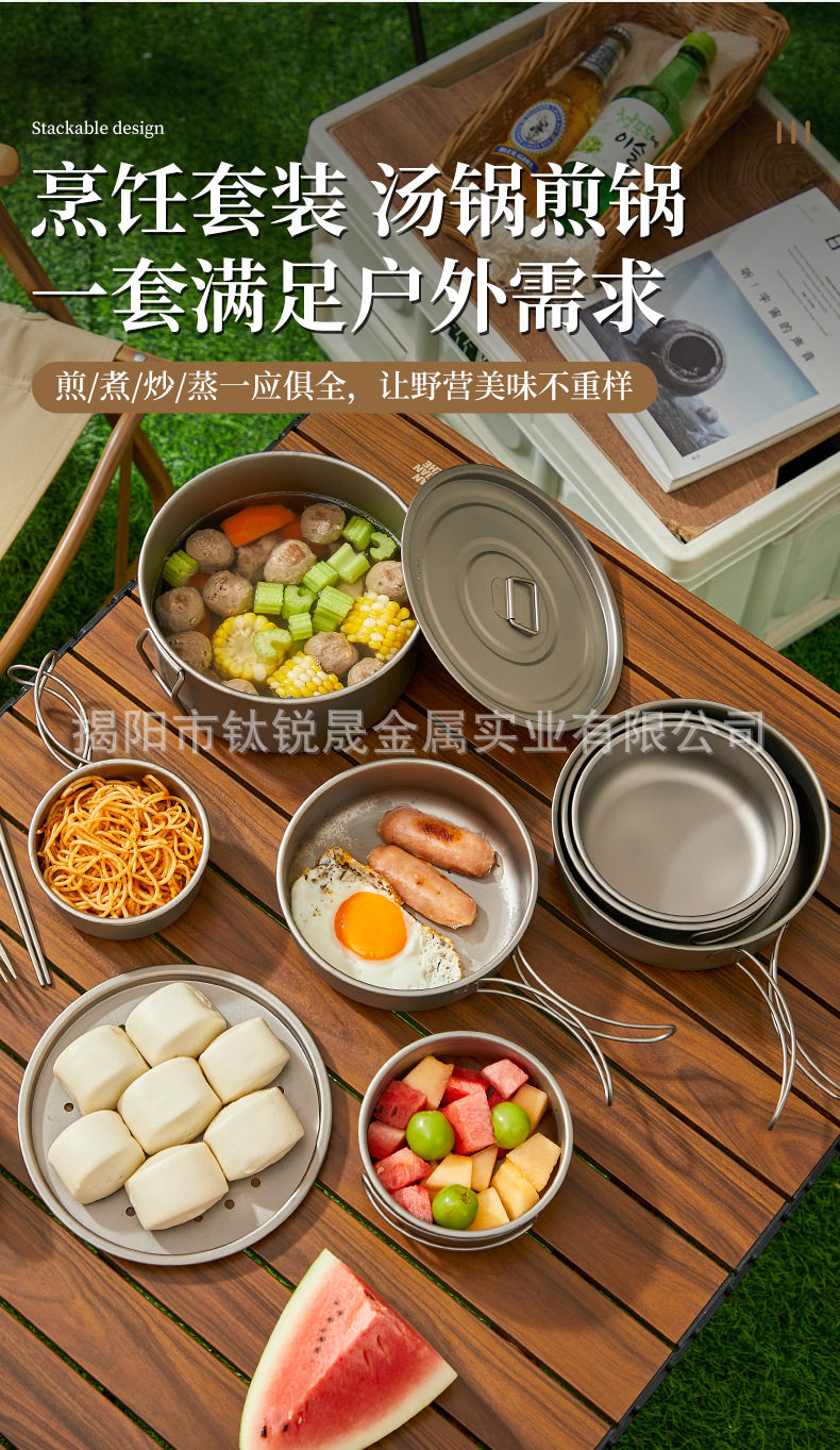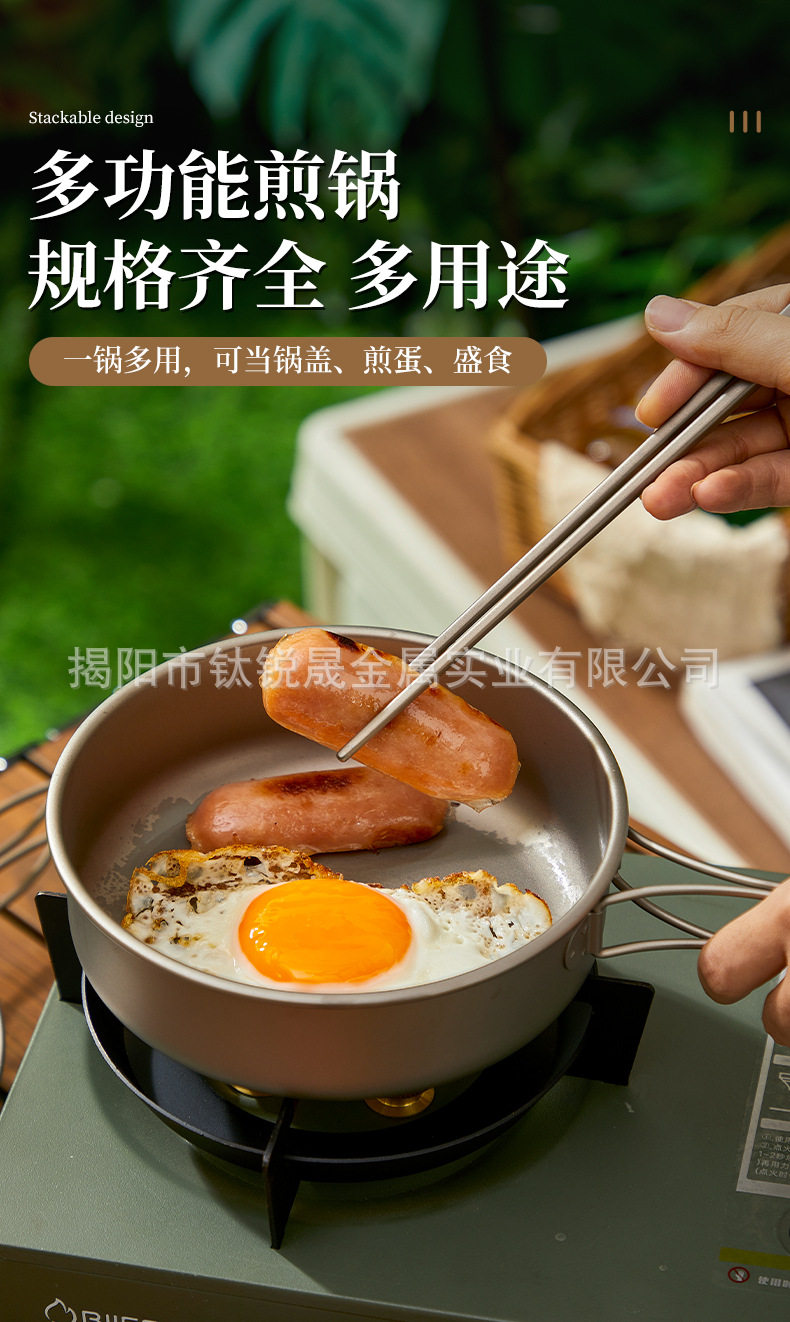 Pure Titanium TA1 Outdoor Frying Pan Series Soup Pan-fried Eggs Soup Camping Picnic Cooking Utensils suit Camping Supplies