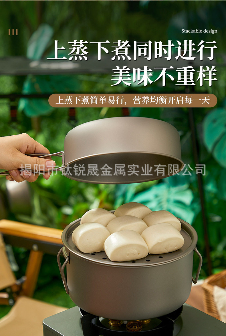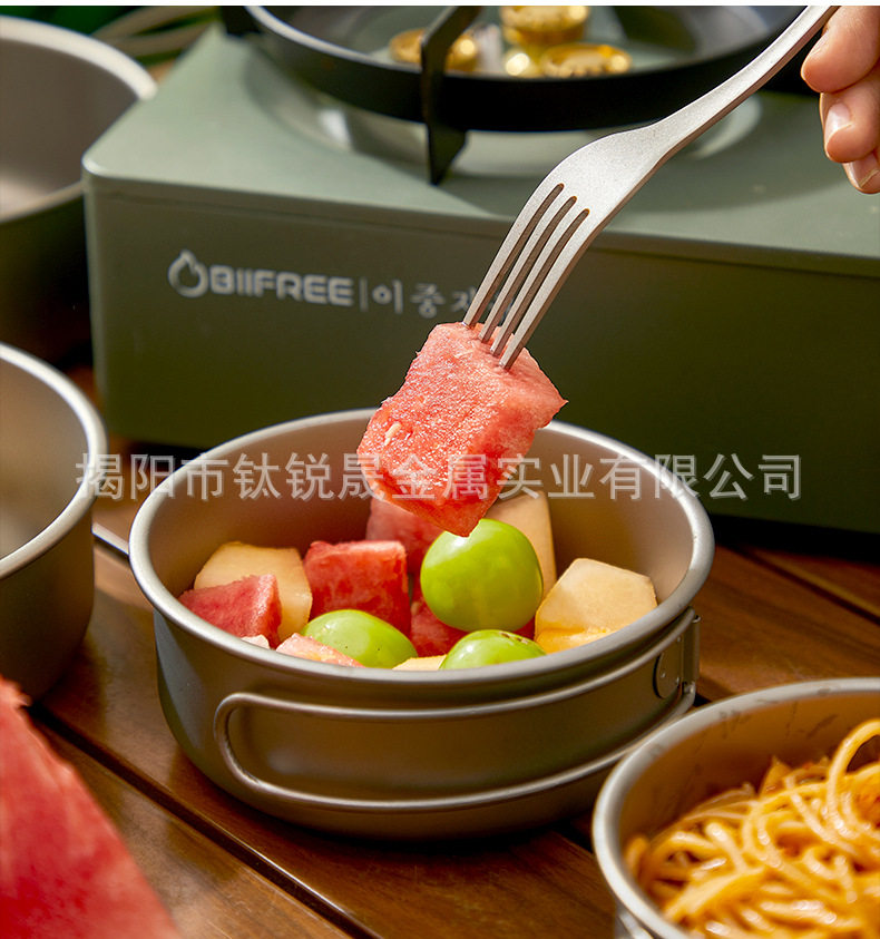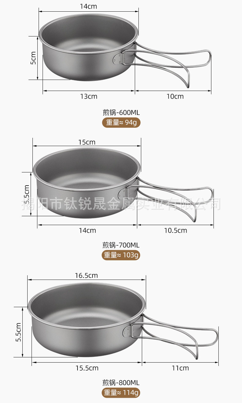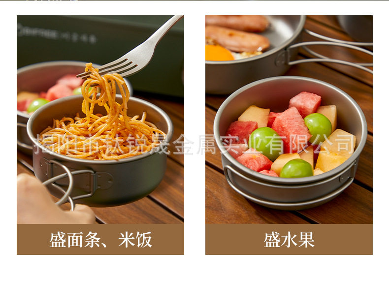 Pure Titanium TA1 Outdoor Frying Pan Series Soup Pan-fried Eggs Soup Camping Picnic Cooking Utensils suit Camping Supplies