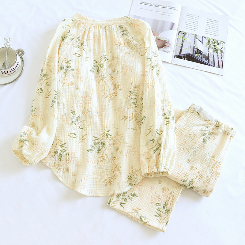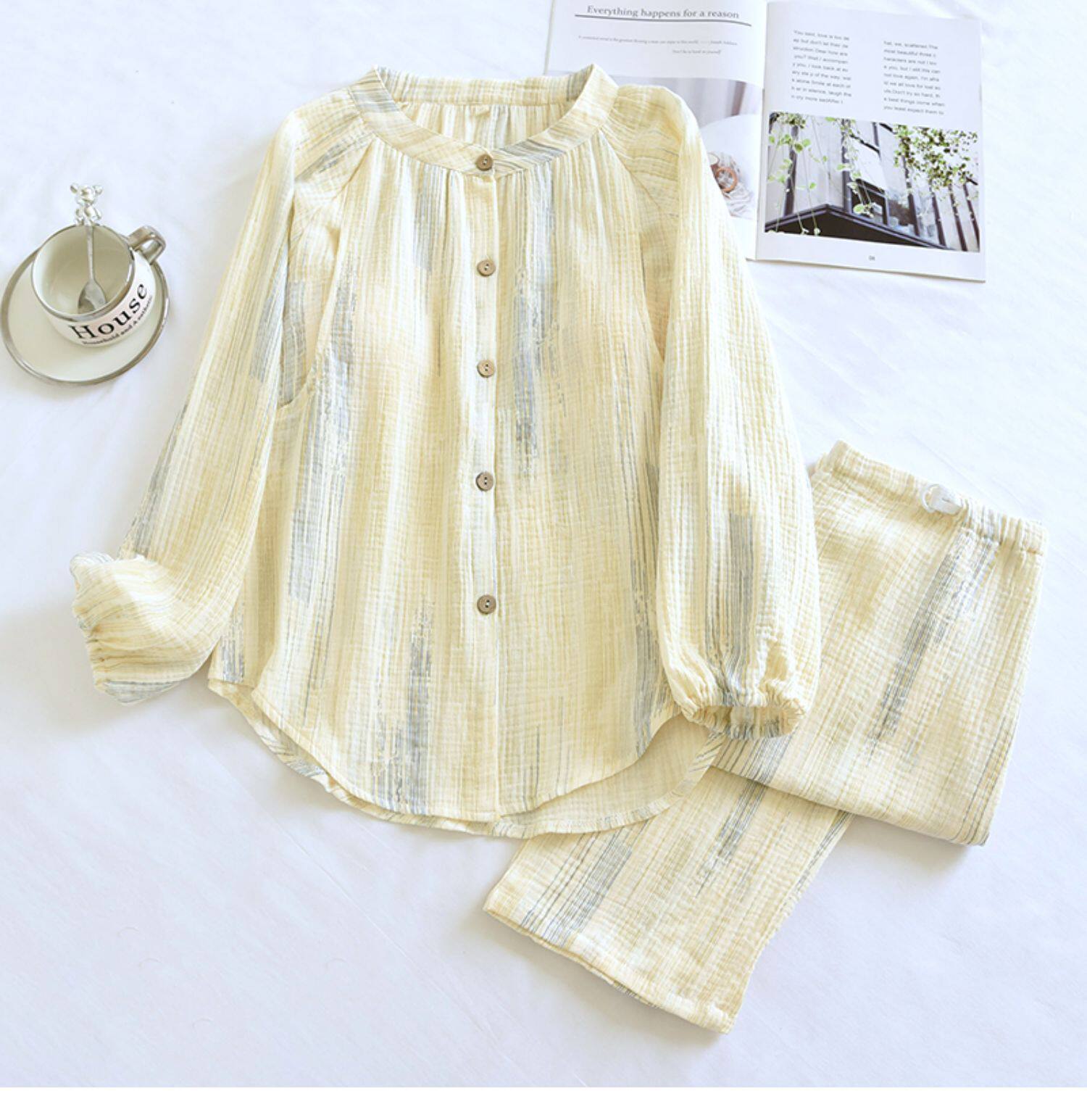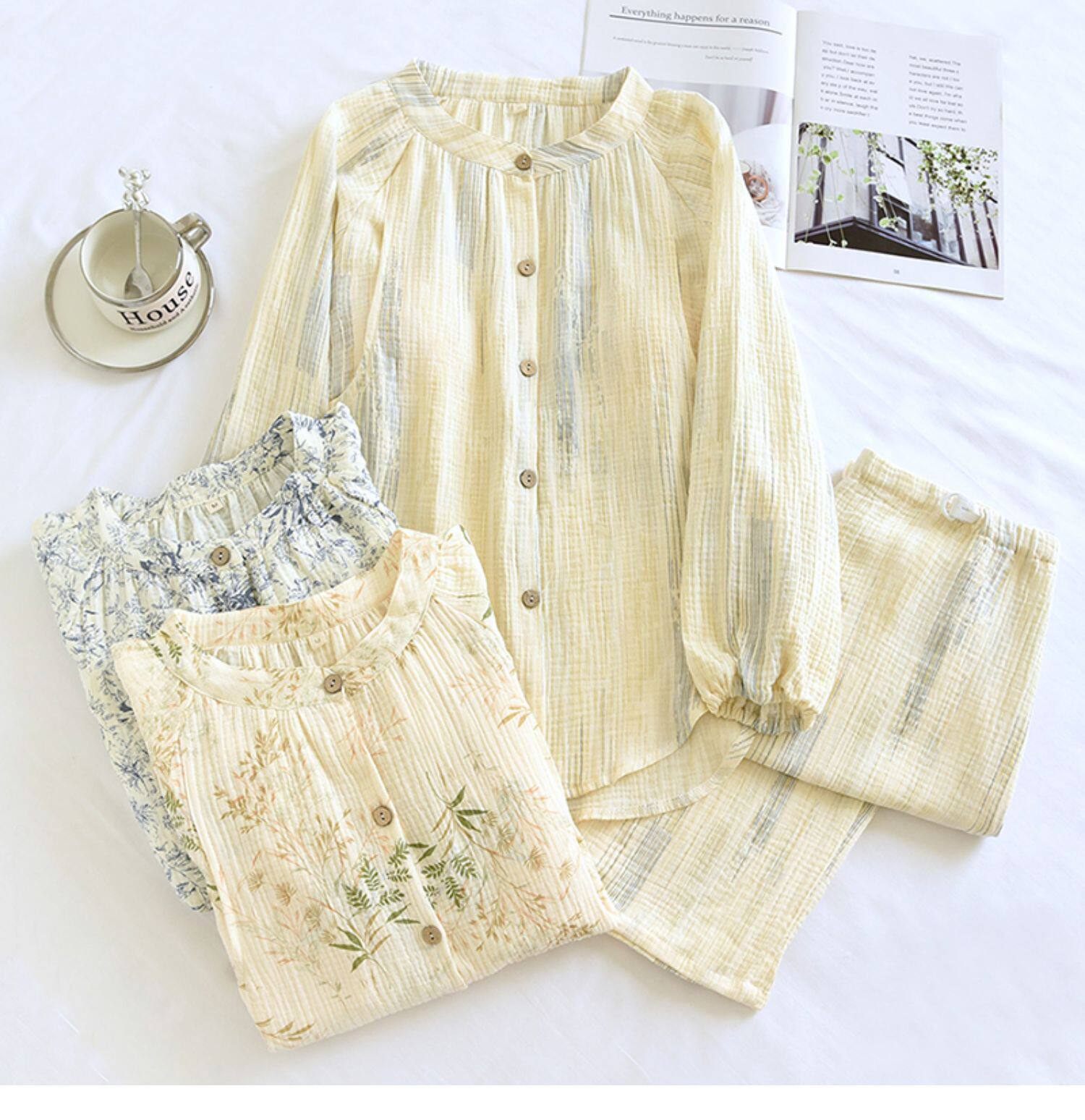 Spring and Autumn with Chest Pad Pure Cotton Moon Clothing plus size Pregnant Women Nursing Home Pajamas Summer Thin Gauze Postpartum Nursing