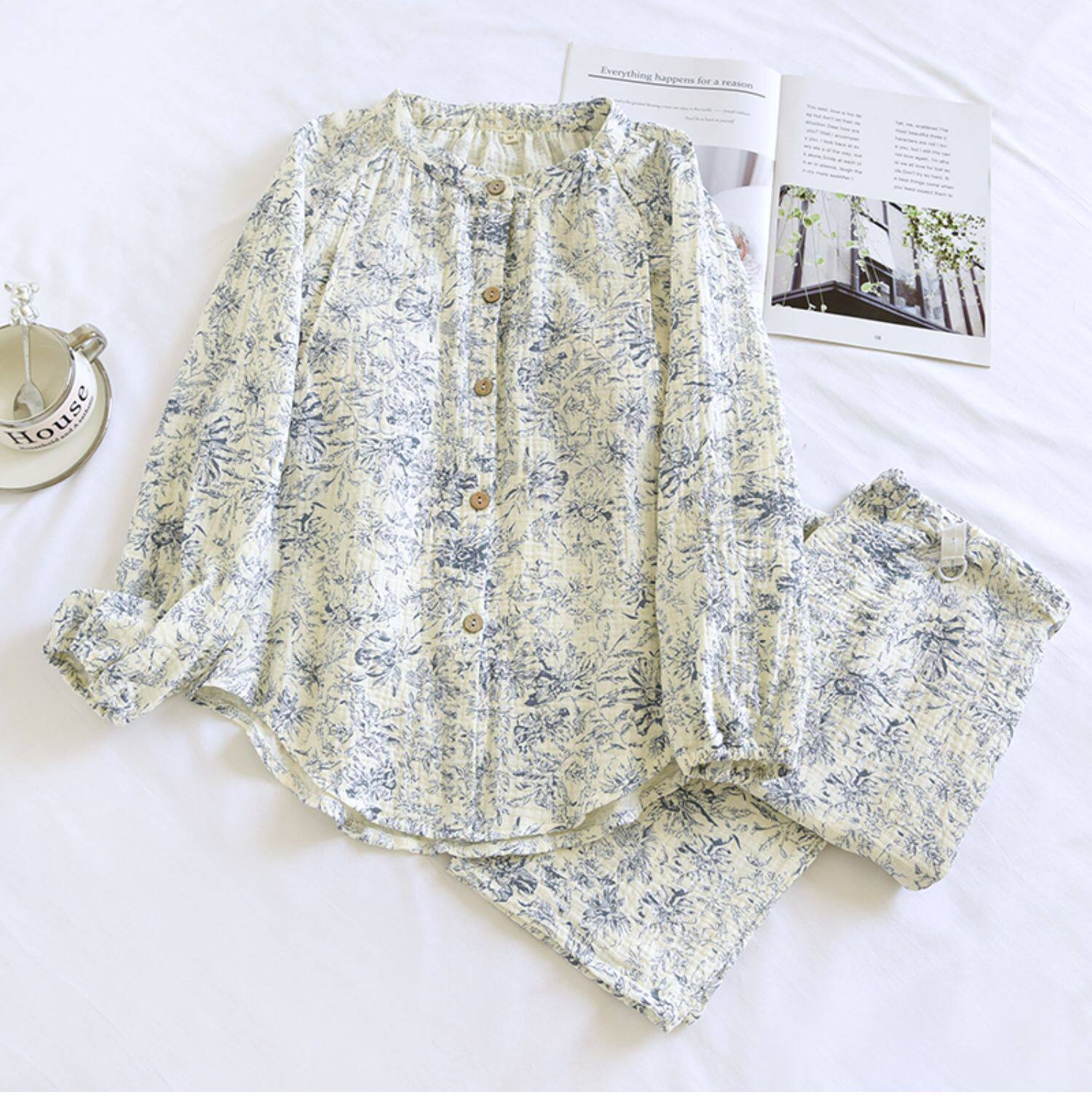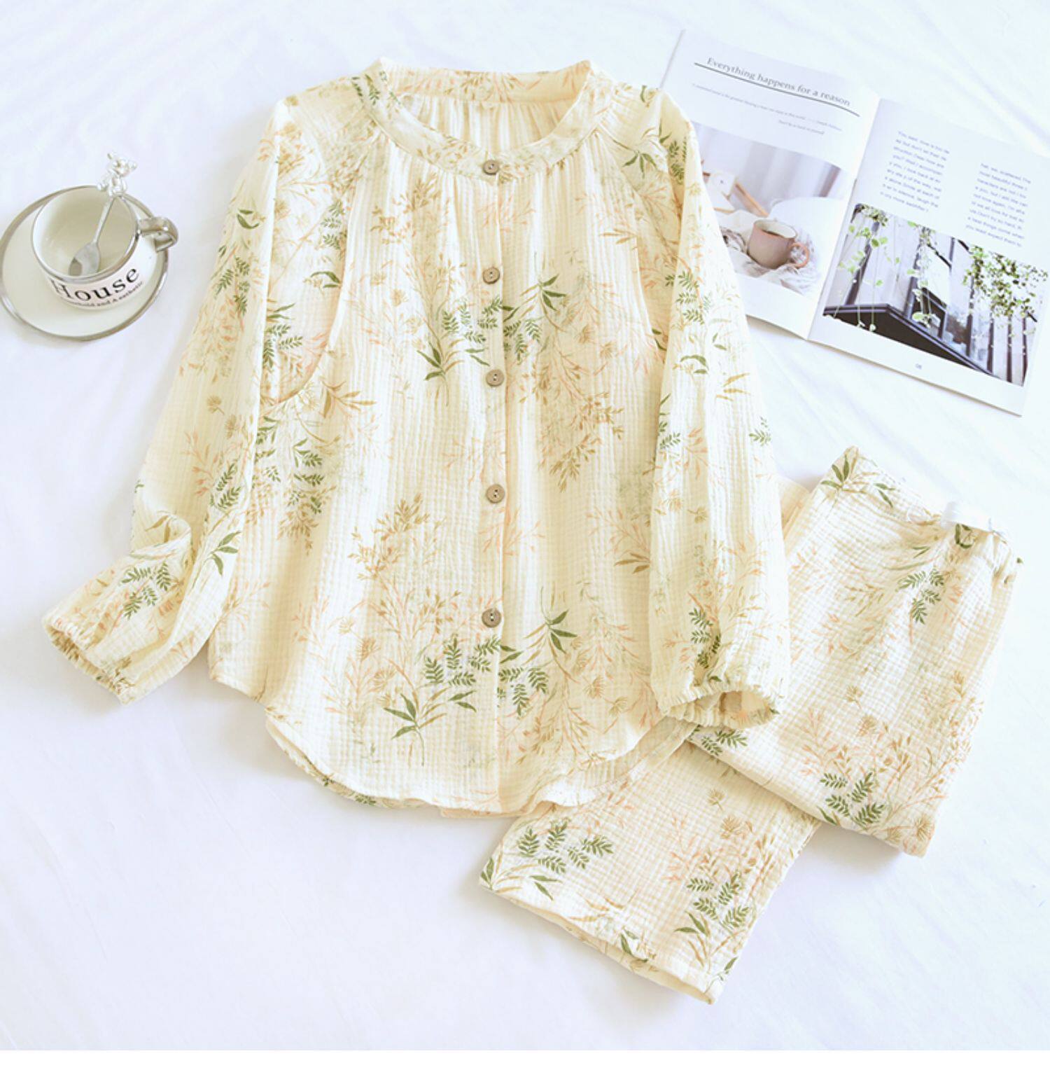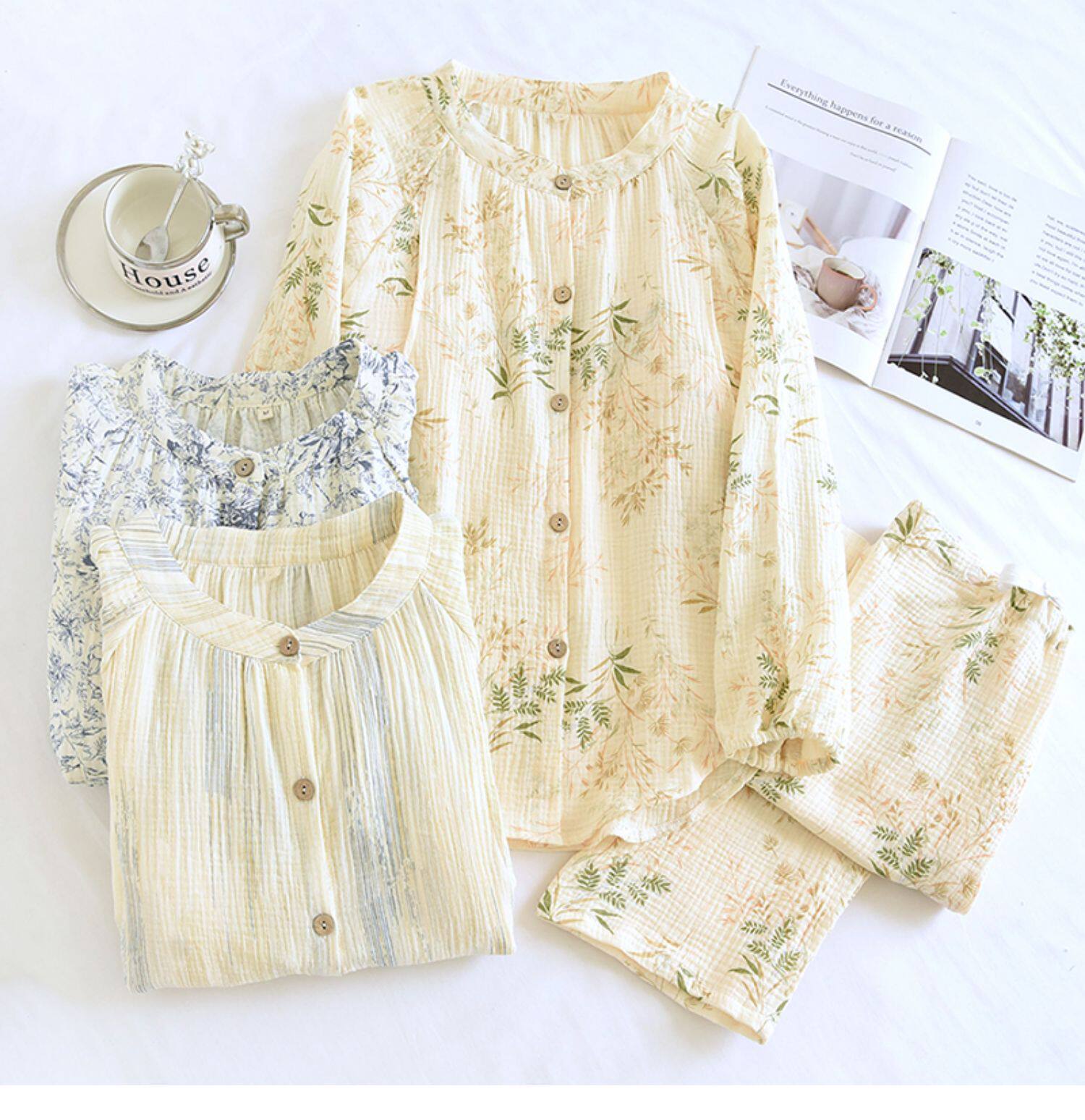 Spring and Autumn with Chest Pad Pure Cotton Moon Clothing plus size Pregnant Women Nursing Home Pajamas Summer Thin Gauze Postpartum Nursing