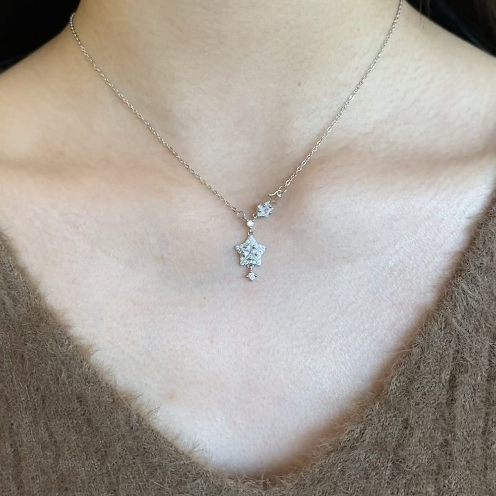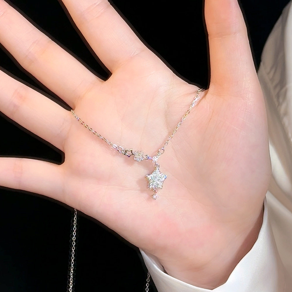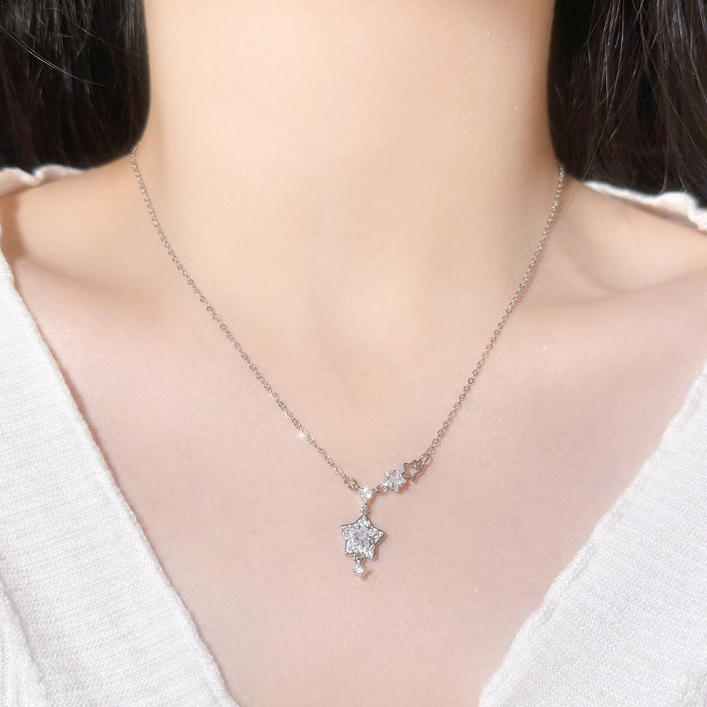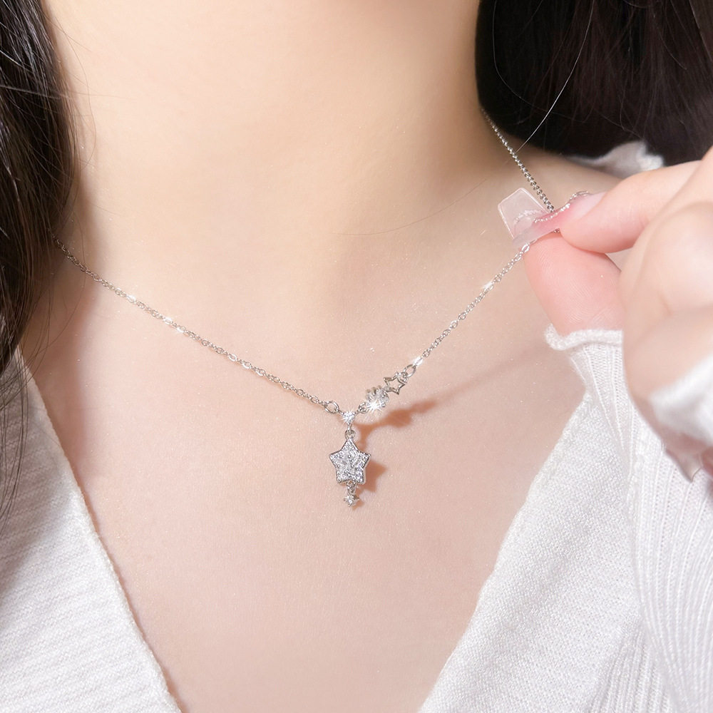 Sparkling Diamond Star Pendant Necklace for Women, Light Luxury Titanium Steel Non-Fading Necklace, 2026 New Minimalist Style Clavicle Chain Jewelry, Customizable