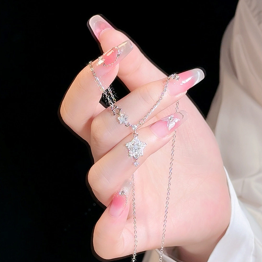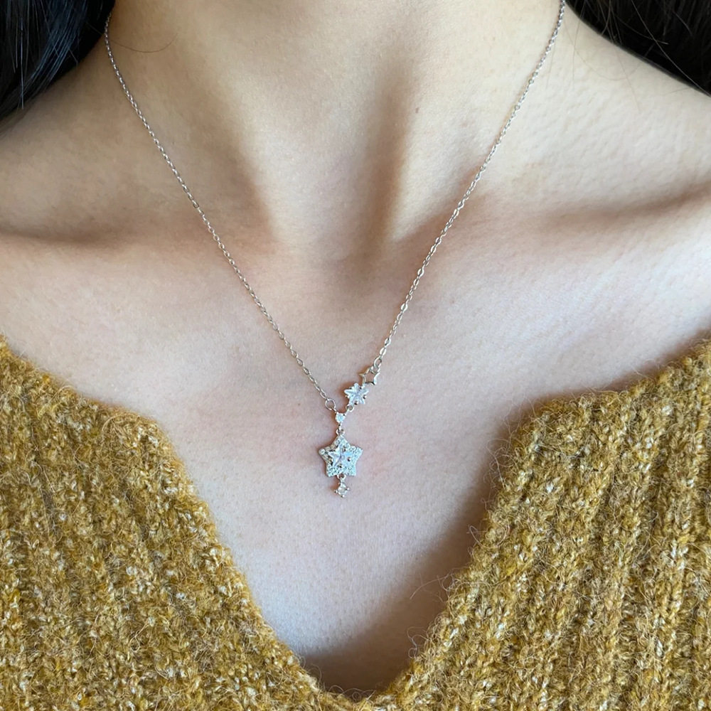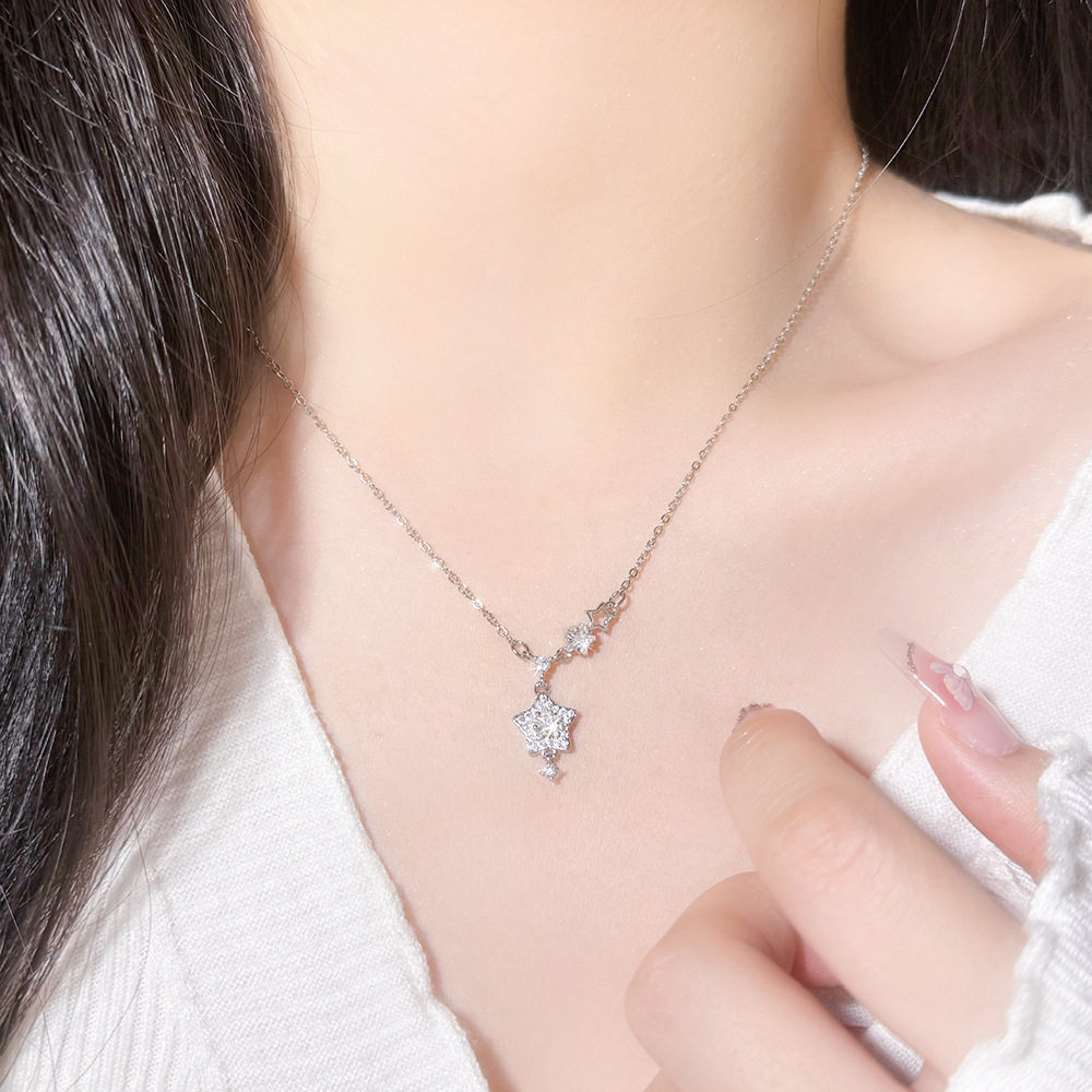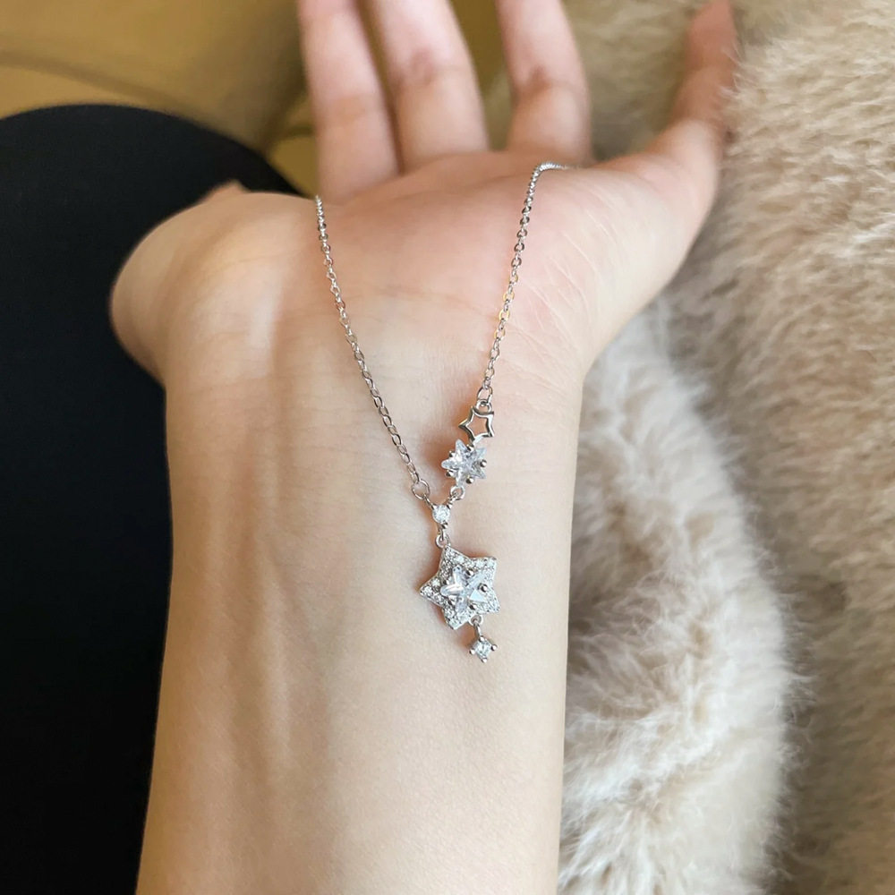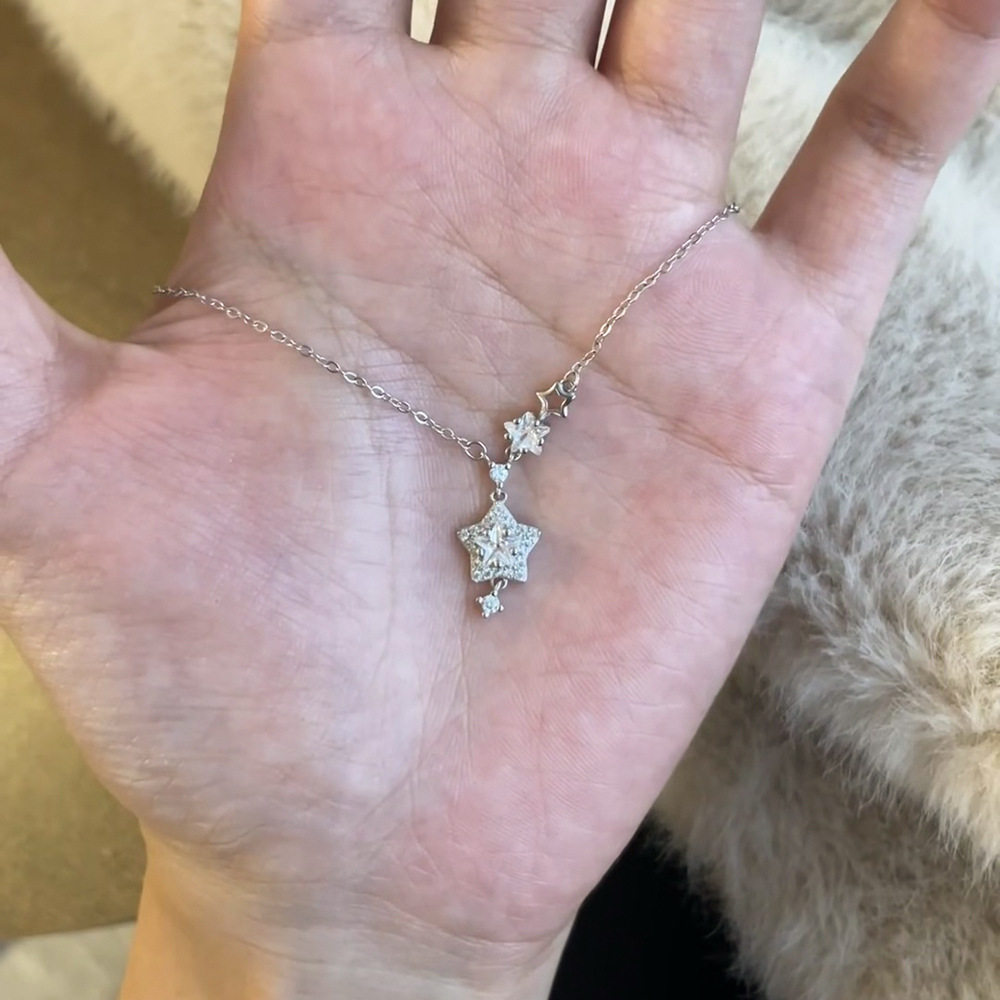 Sparkling Diamond Star Pendant Necklace for Women, Light Luxury Titanium Steel Non-Fading Necklace, 2026 New Minimalist Style Clavicle Chain Jewelry, Customizable