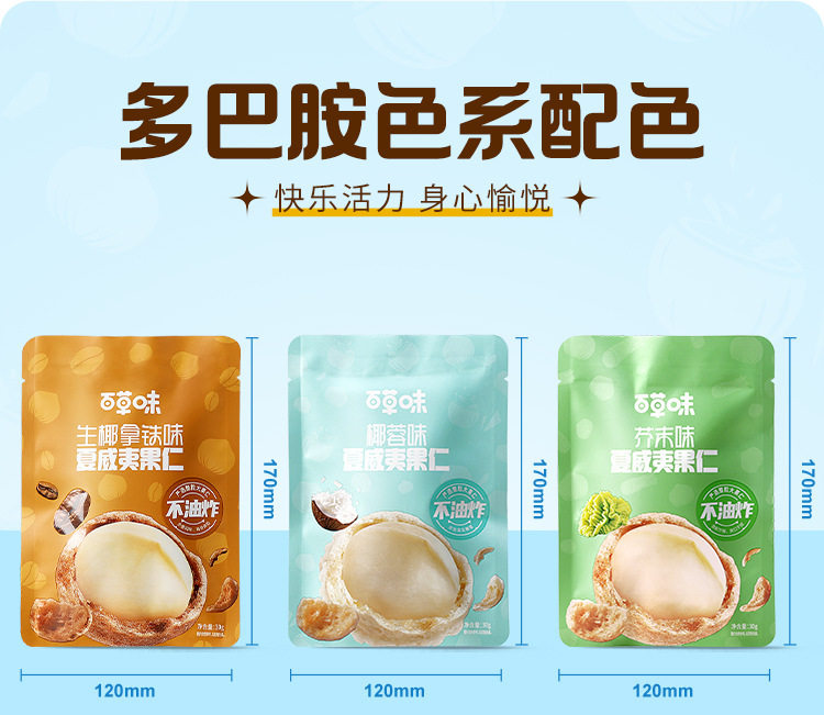 | Packing specification | Mustard Flavored Hawaiian Nuts 30g,30g raw coconut latte Hawaiian nuts |