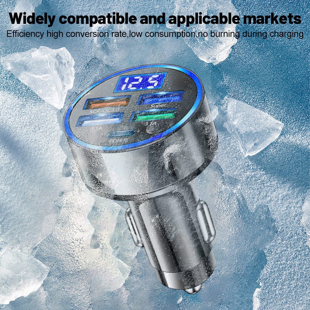 Car charger 5-port support super fast charging with digital display 5 in 1 1-drag 5-port with voltage car charger wholesale