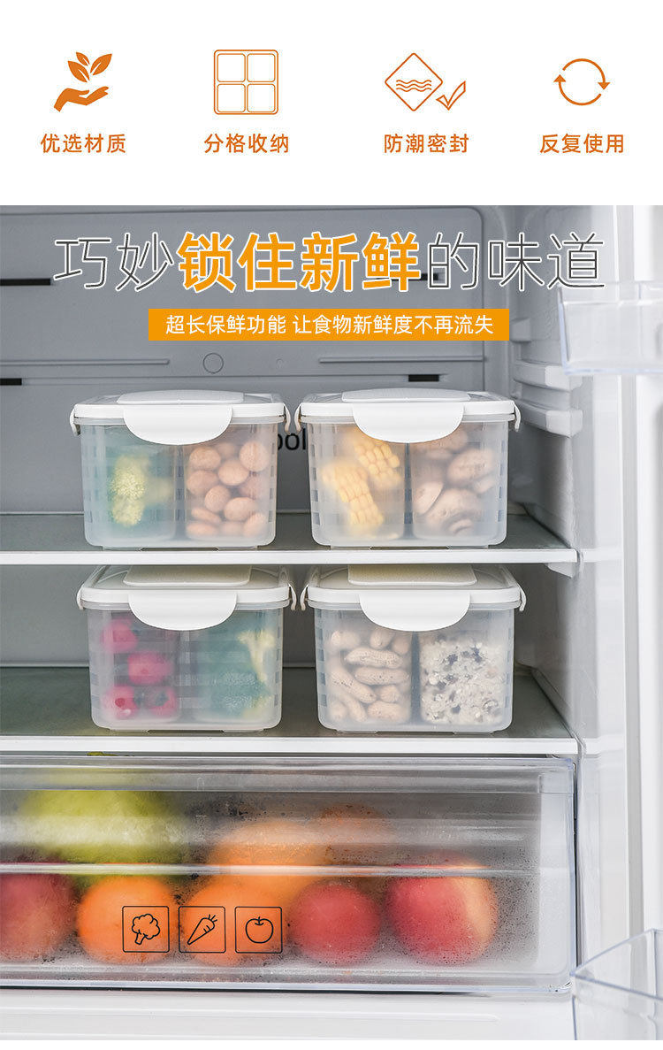 Kitchen Refrigerator Fresh-keeping Storage Box Household Vegetable and Fruit Storage Box Plastic Sealed Fresh-keeping Box Stackable with Lid