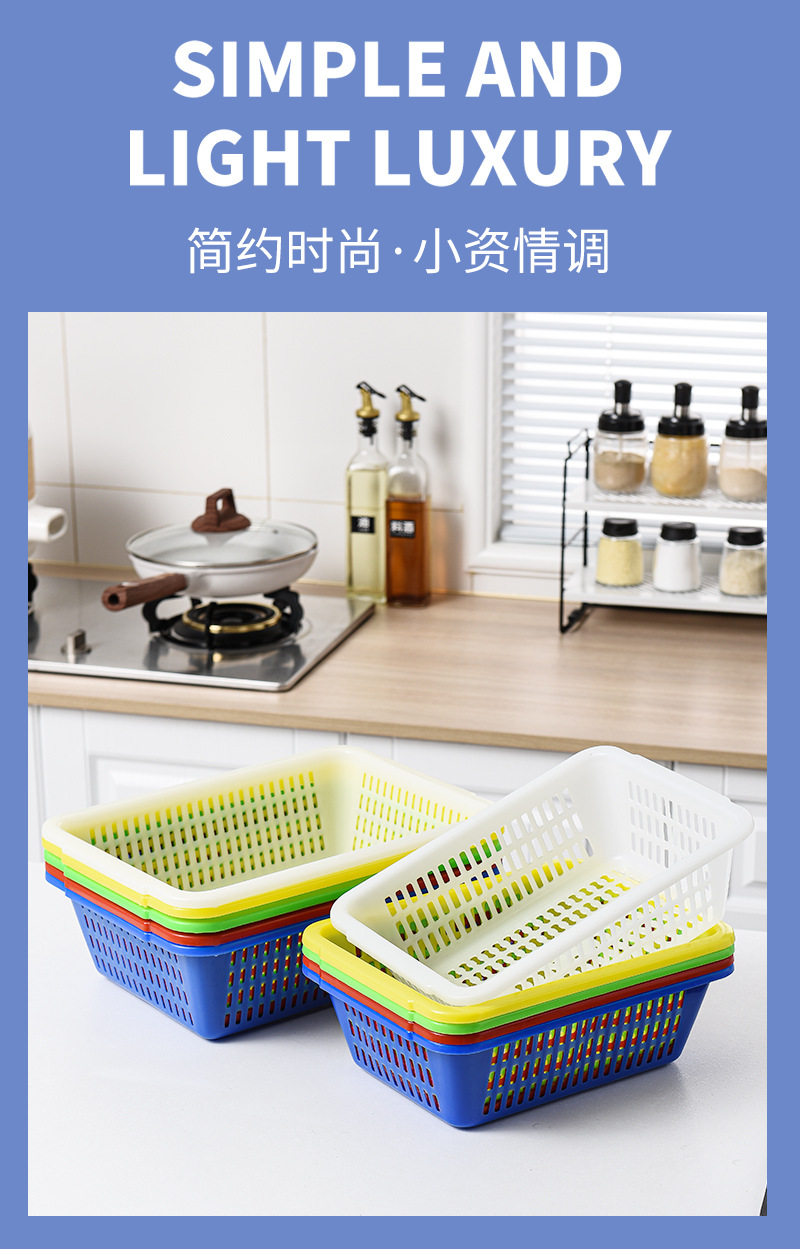 Thickened Rectangular Plastic Square Screen Household Vegetable Basket Vegetable Washing Draining Basket Large Distribution Basket Storage Basket