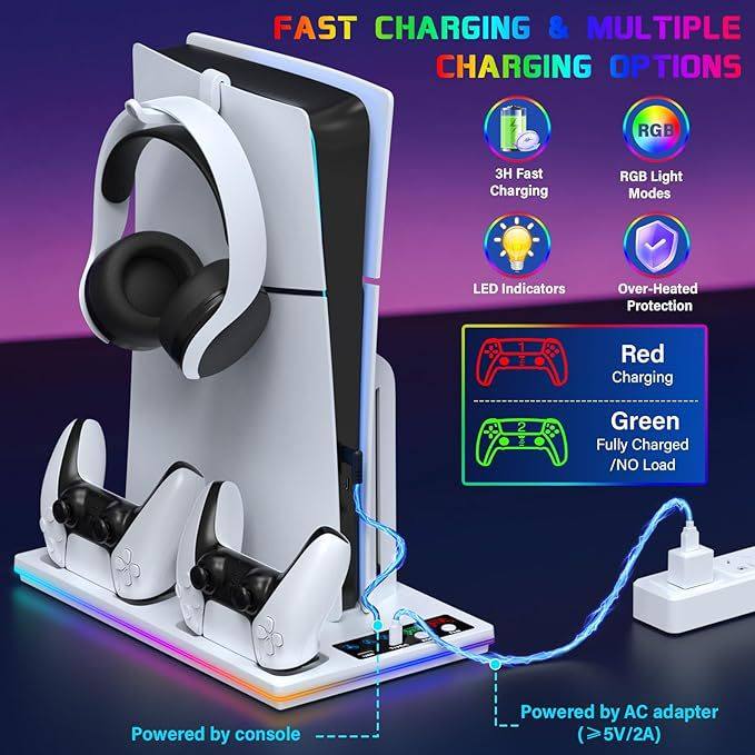 Ps5 Pro/Ps5 Slim/Ps5 Host with Rgb Light Cooling Base Ps5 Handle Charging Stand Accessories