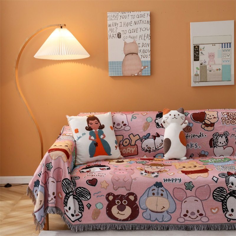 Cross-border Internet Famous Ins Style Double-sided Sofa Towel Multi-purpose Blanket Blanket Pink Pooh Sofa Cover Cushion
