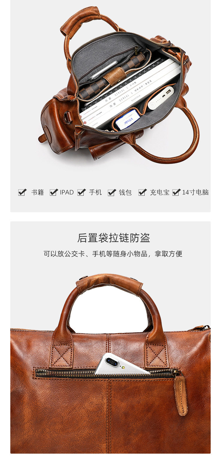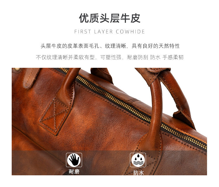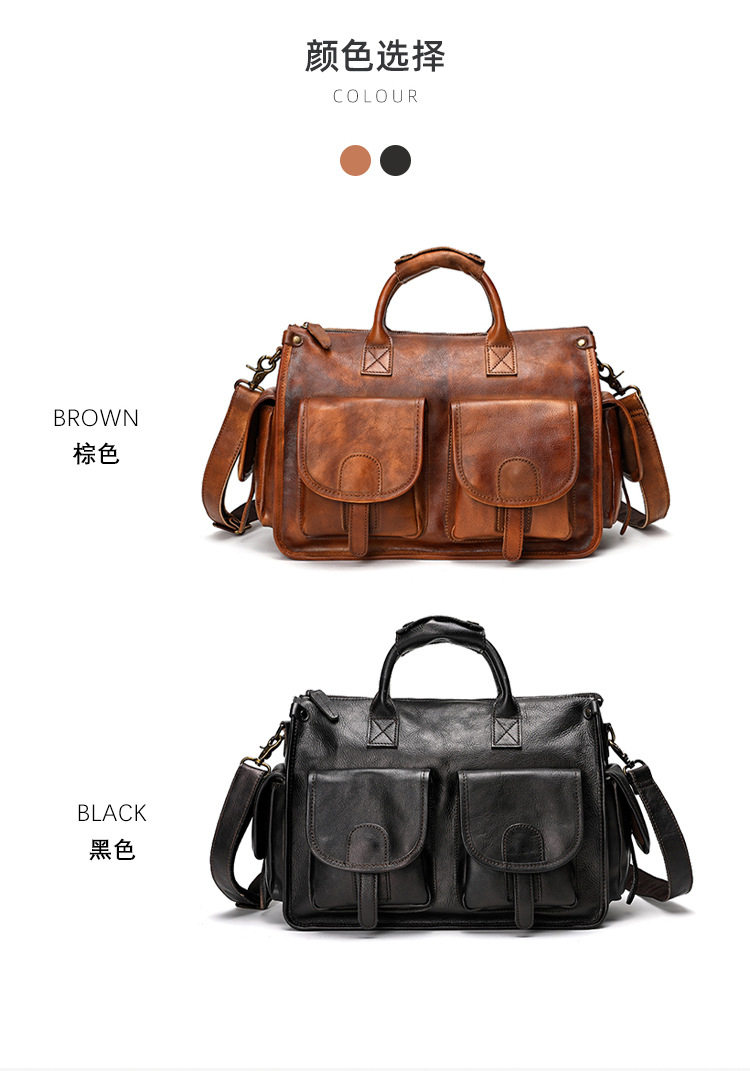 Cross-border Handmade Top-layer Cowhide Casual Crossbody Bag Men's Vintage Vegetable Tanned Leather Cambridge Bag Genuine Leather Handheld Messenger Bag
