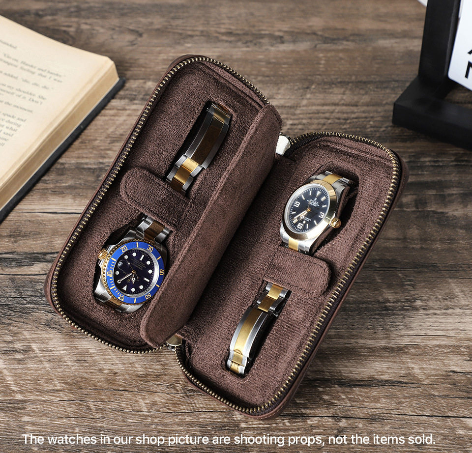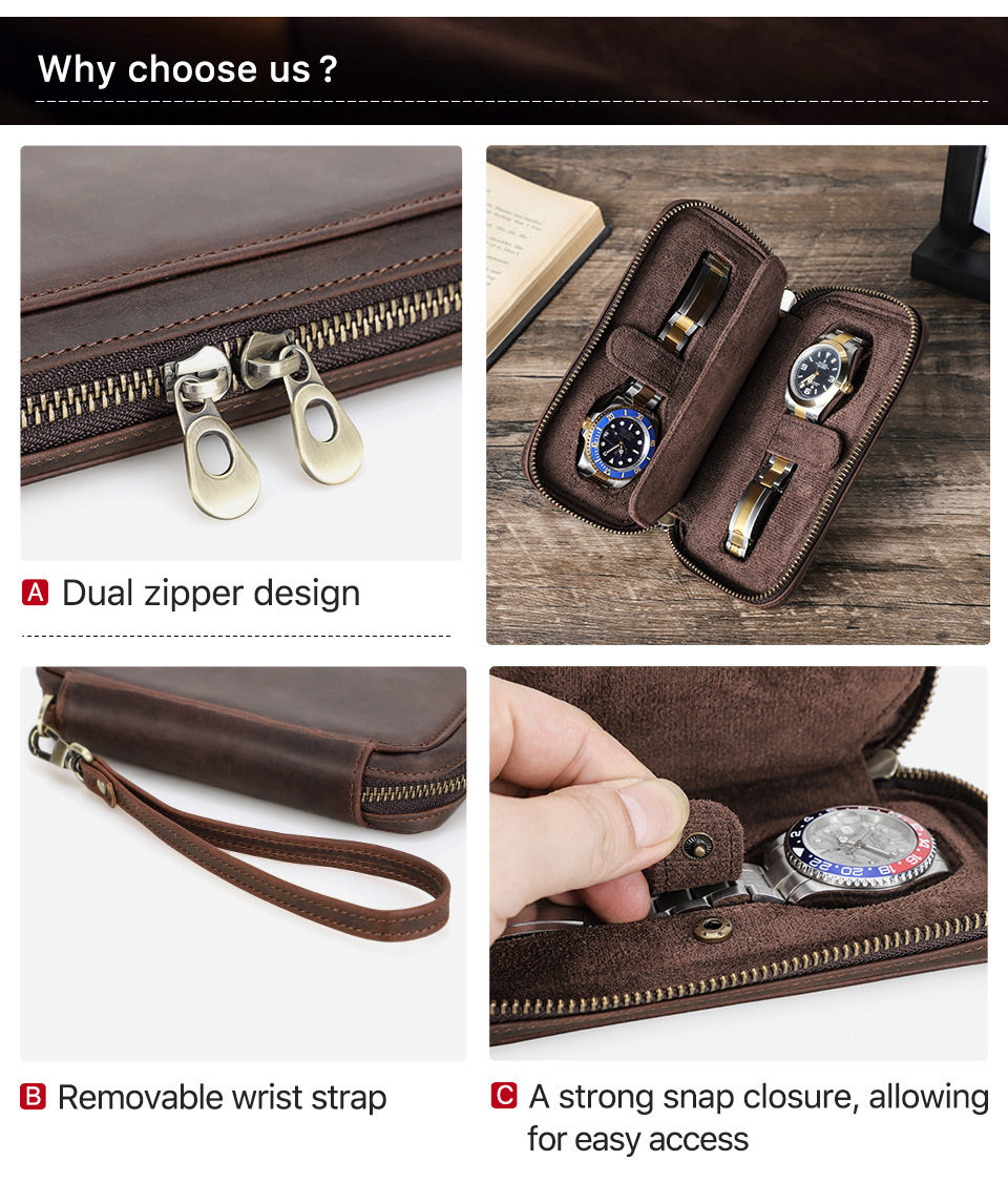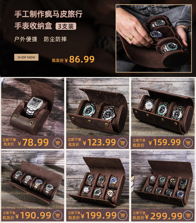 Vintage Crazy Horse Leather Pocket Watch Storage Box Travel Portable Handmade Two-piece Leather Jewelry Watch Box