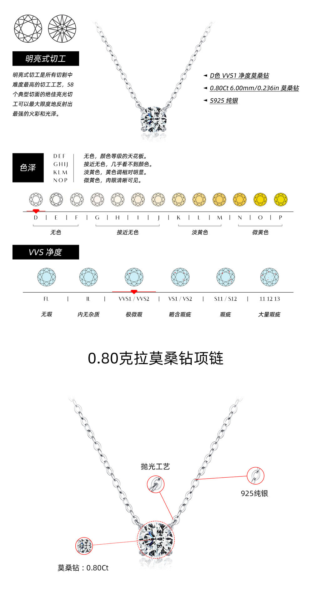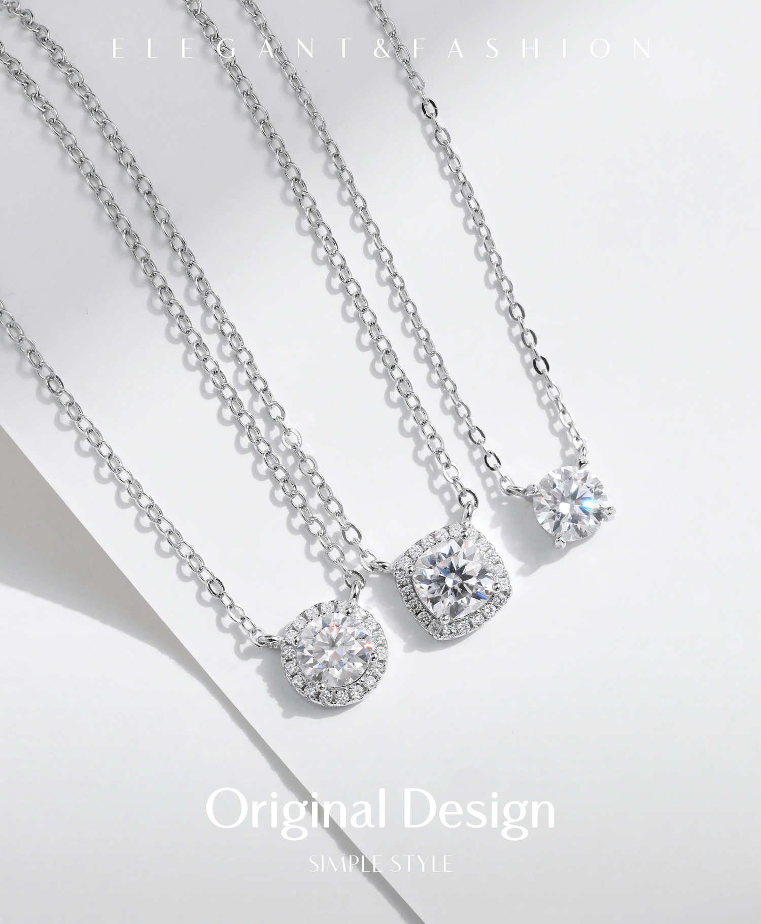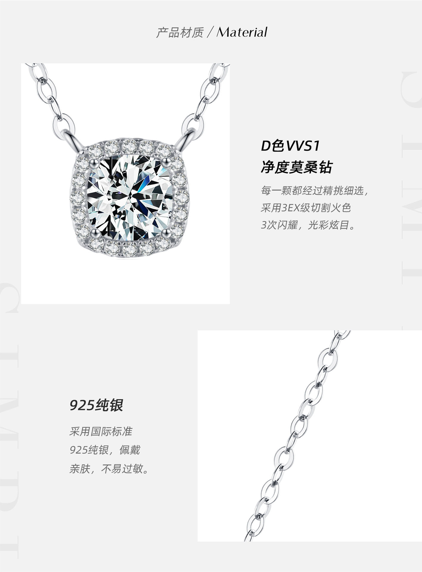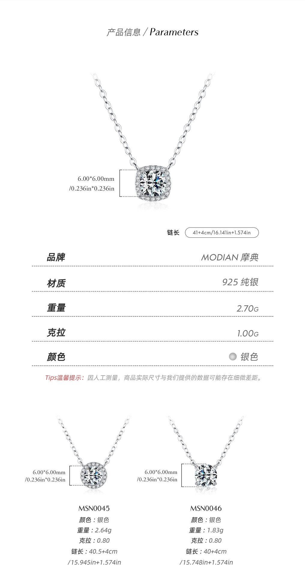 MODIAN MODIAN MODIAN 1 karat MOSAN Diamond s925 Sterling Silver Ins Romantic Geometric Flash Diamond Necklace Clavicle Chain Combination Women