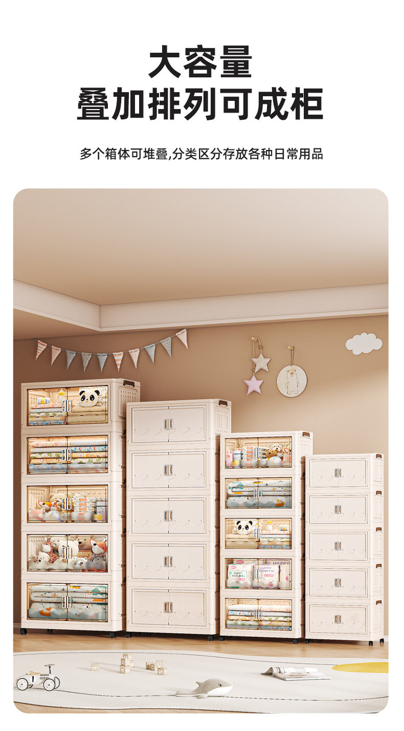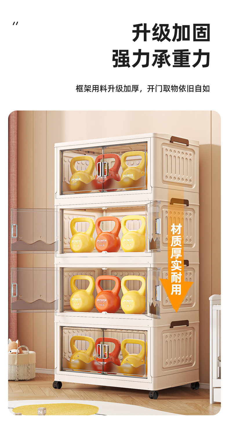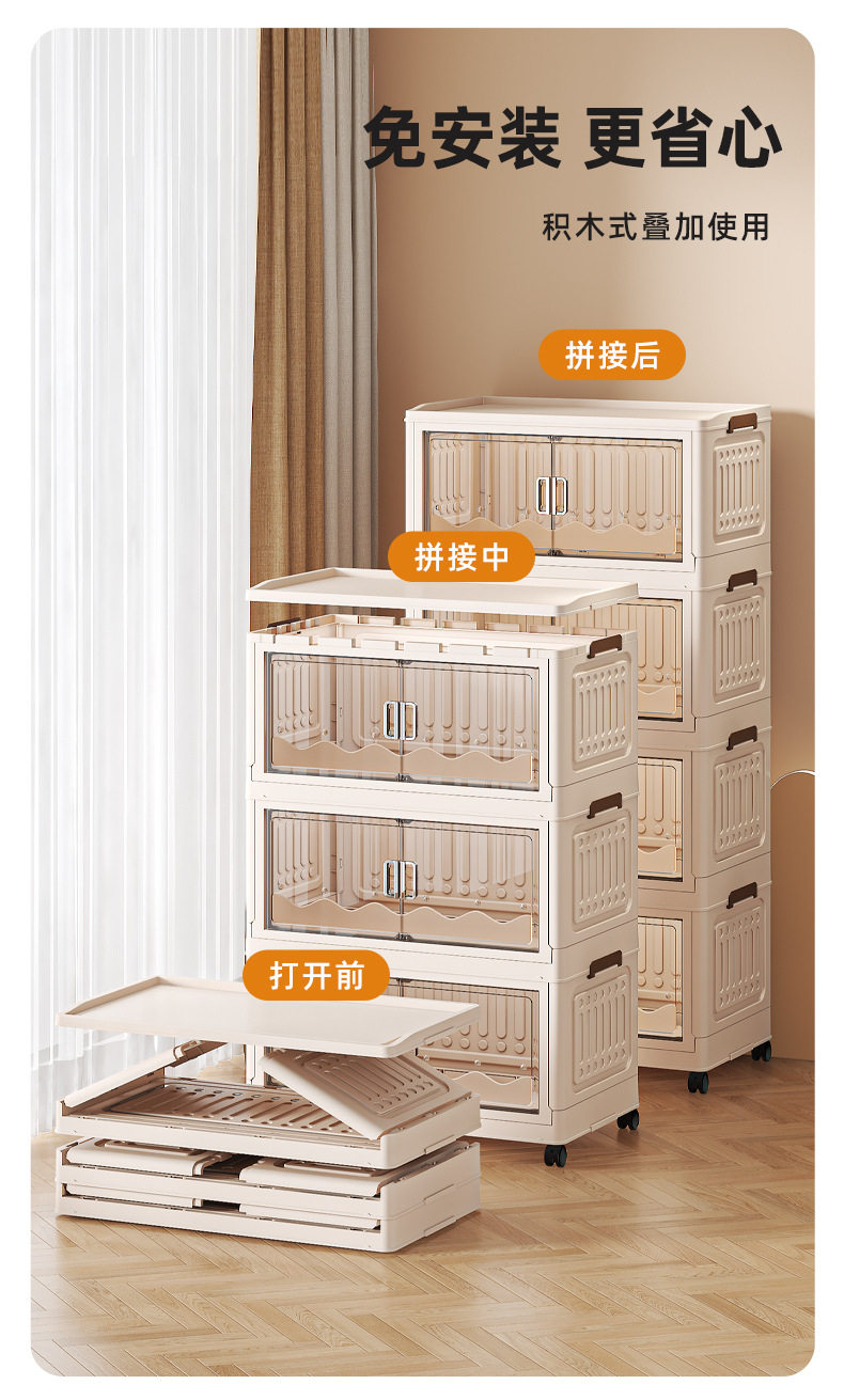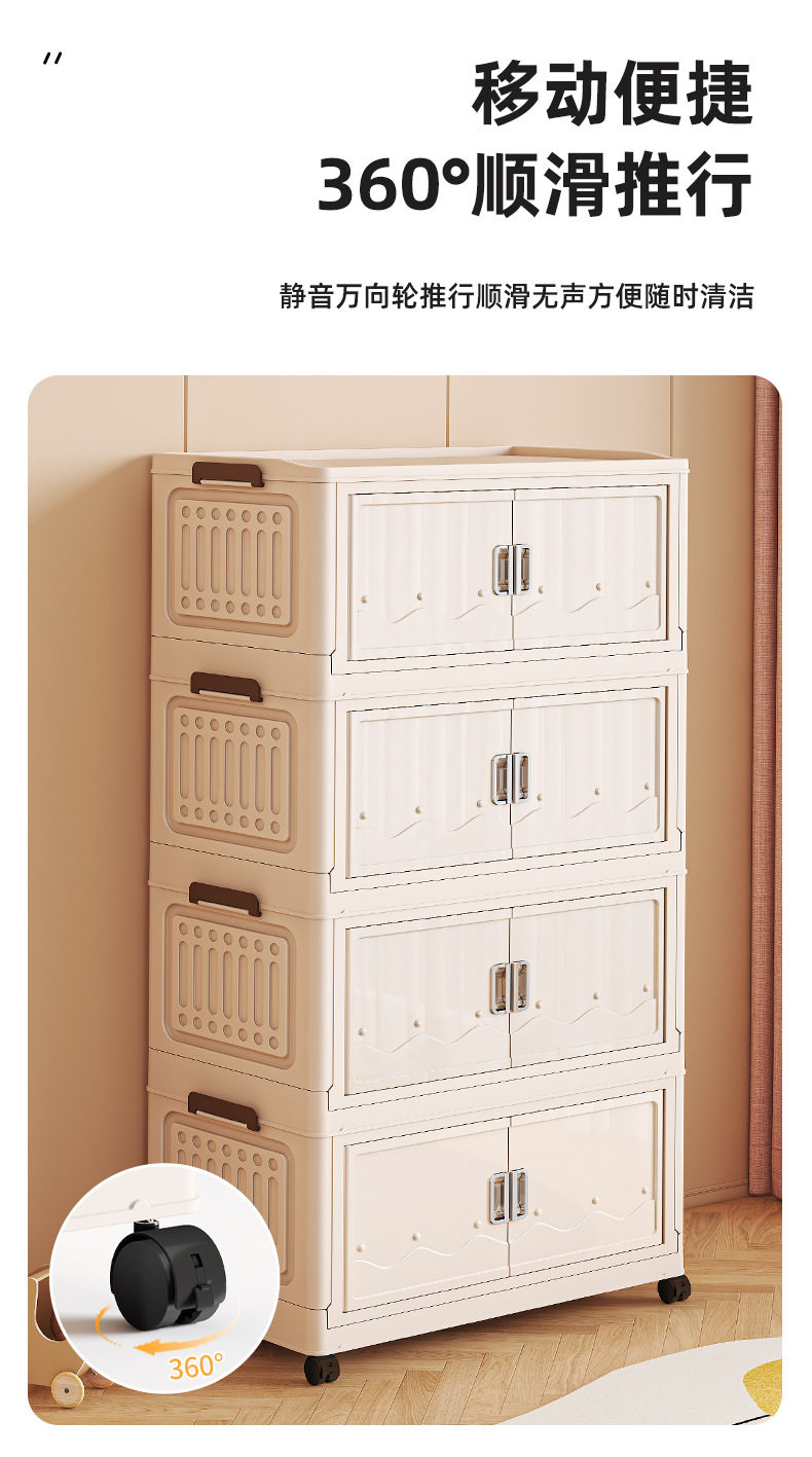 Cross-border Storage Cabinet Folding Storage Box Household Double Door Magnetic Suction Transparent Tidying Box Book Storage Box Pulley Car