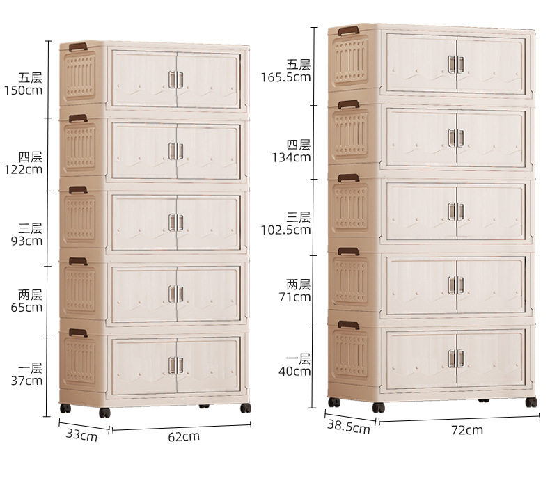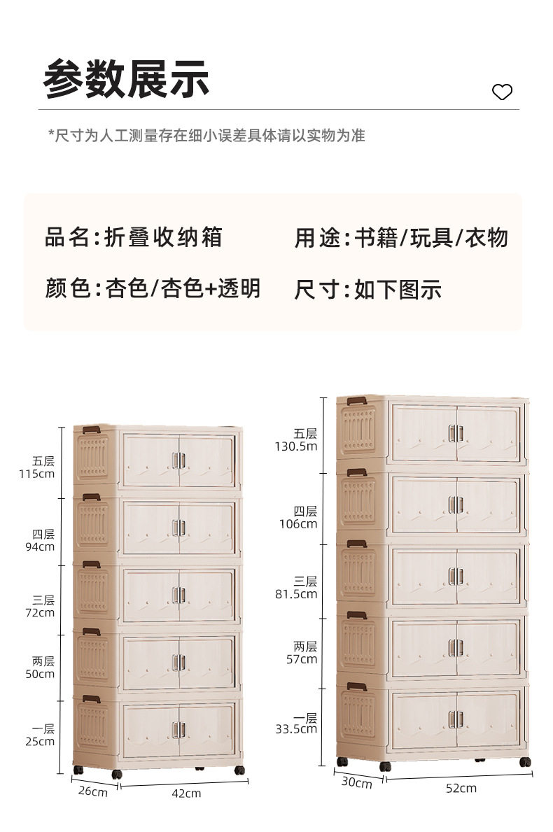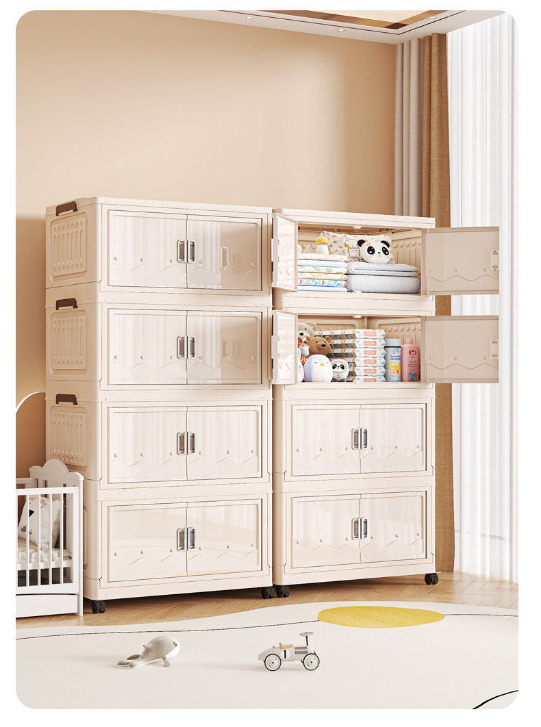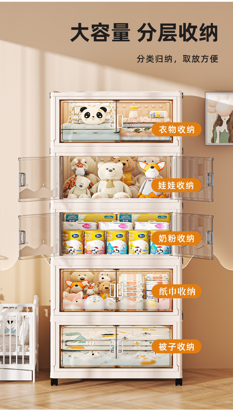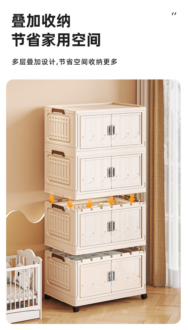 Cross-border Storage Cabinet Folding Storage Box Household Double Door Magnetic Suction Transparent Tidying Box Book Storage Box Pulley Car