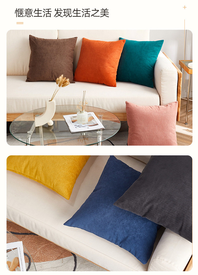 Modern Light Luxury Style Pillow Case Living Room Sofa Cushion Solid Color Pillow Chair Large Backrest Office Waist Pillow Case