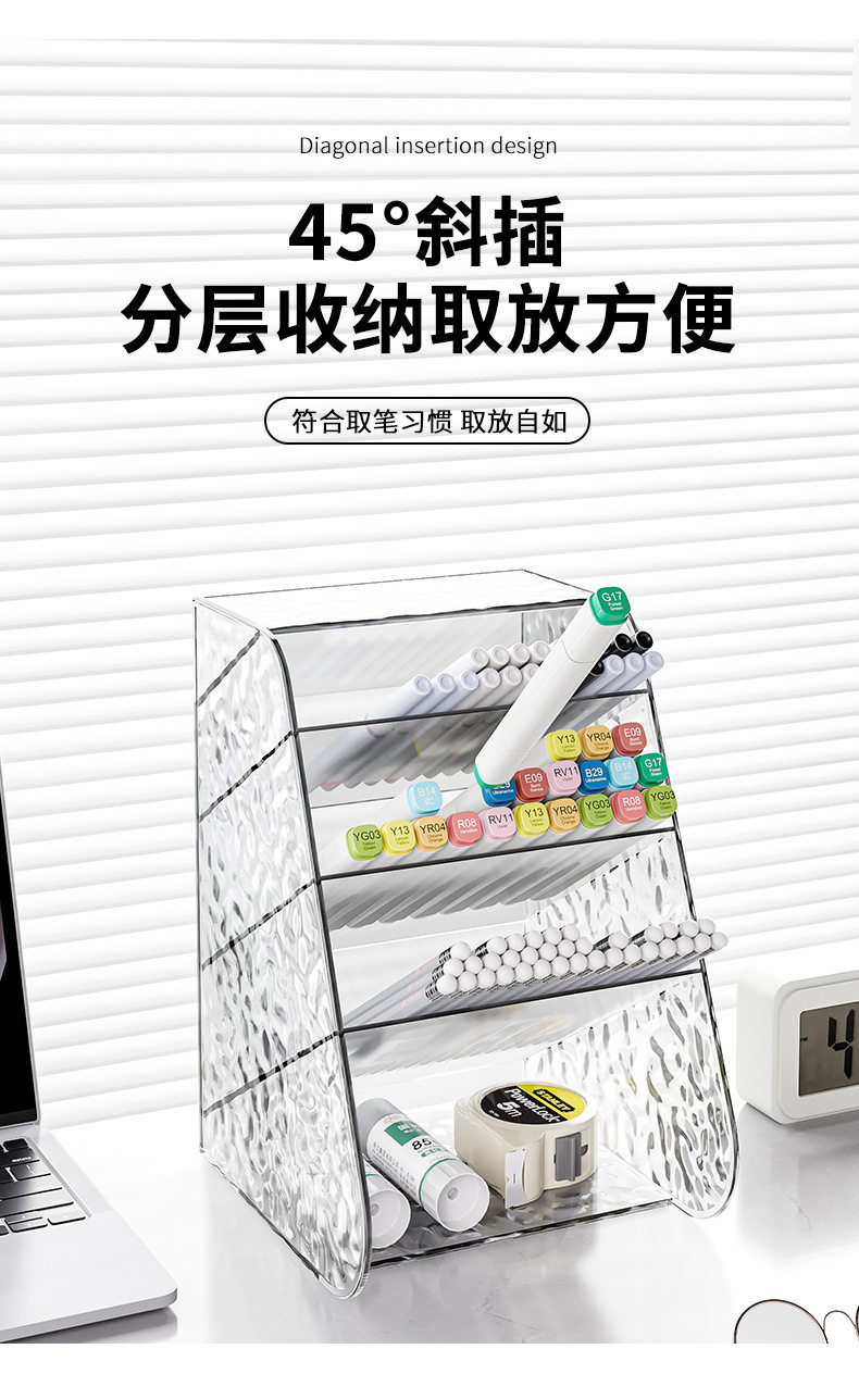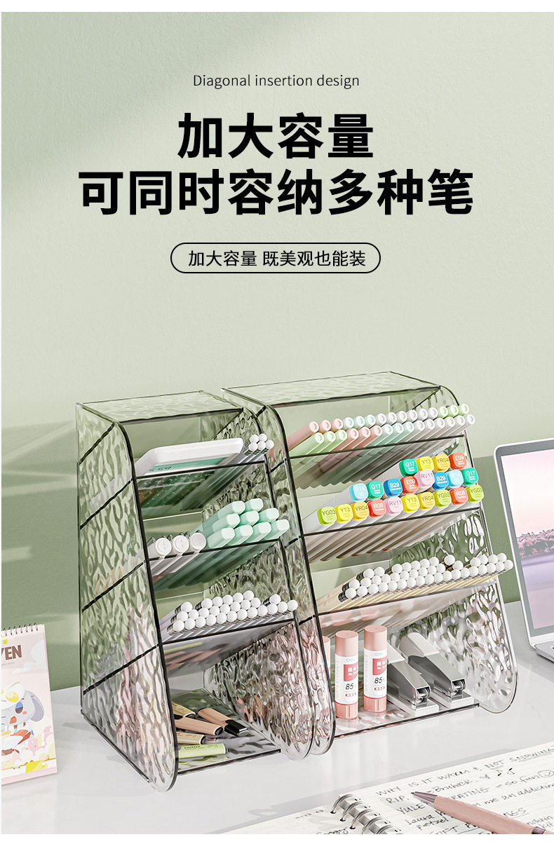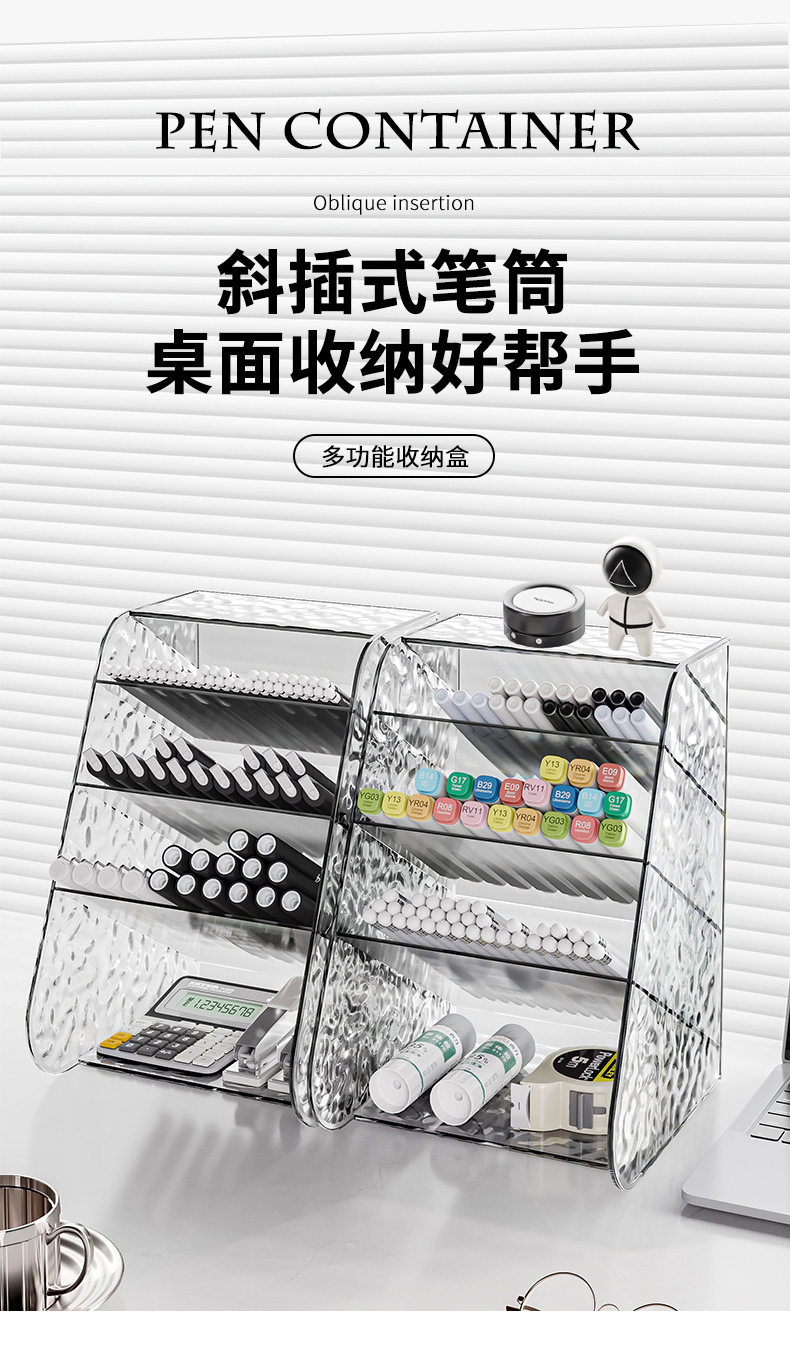 New desktop transparent pen holder oblique multi-functional stationery storage tube office student supplies storage box wholesale