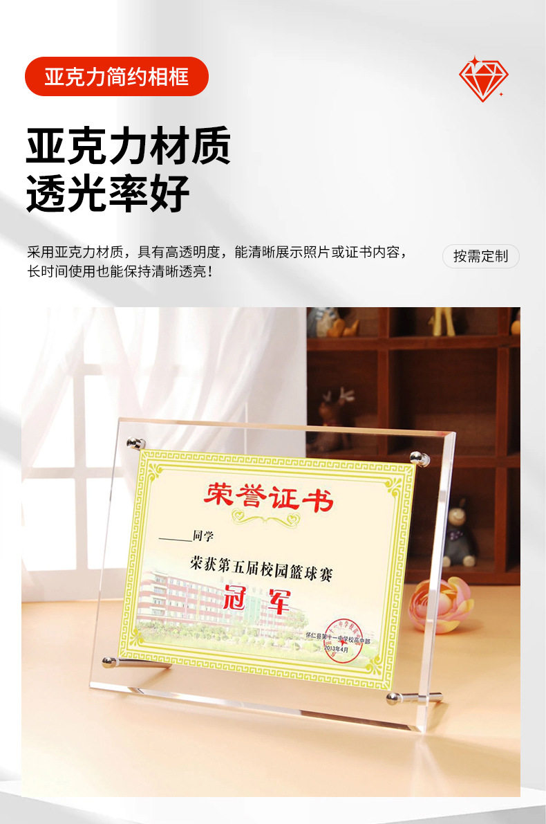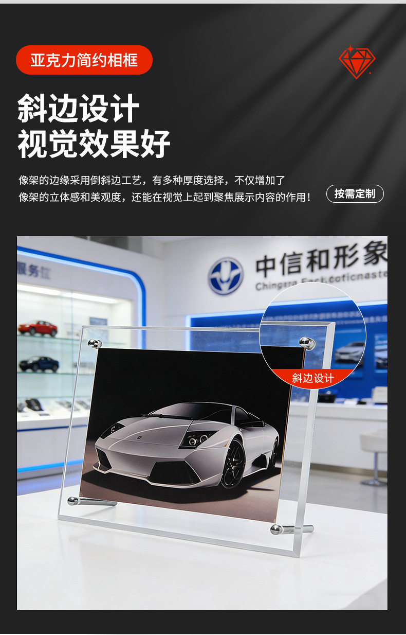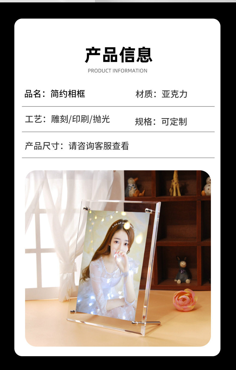 Acrylic Simple Creative Cross-Border Photo Frame 56781012inch A4 Certificate Holder Thickeneded Inverted Beveled Edge A3 Transparent Photo Holder